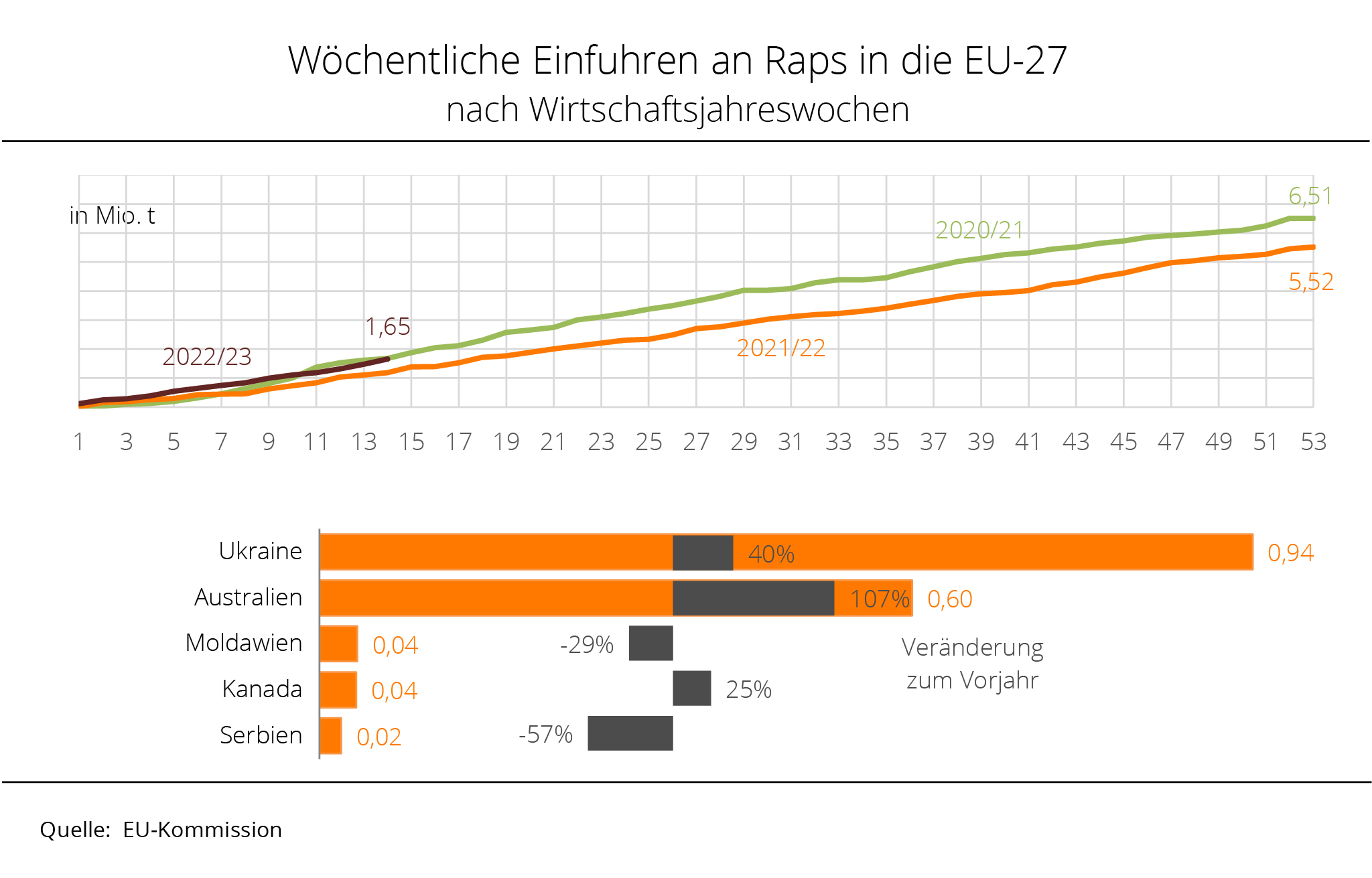EU-Rapsimporte 40 % über Vorjahresniveau