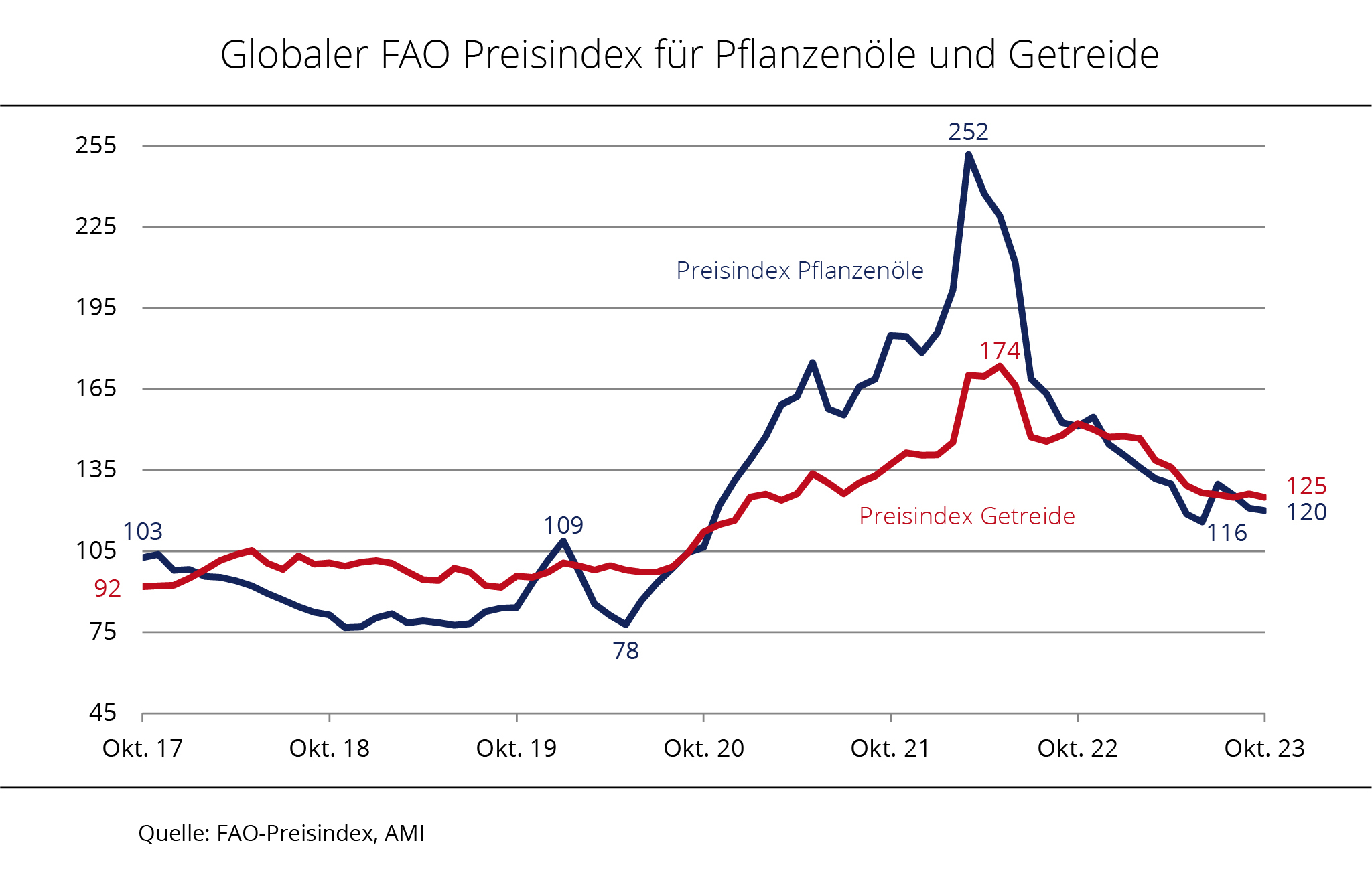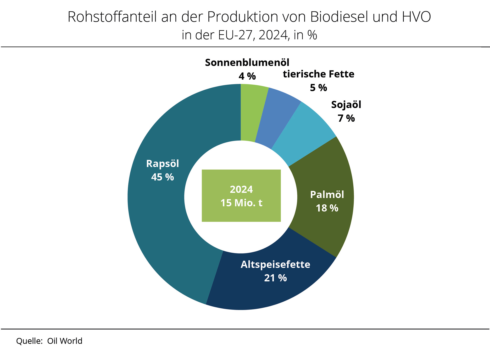 Die Union zur Förderung von Oel- und Proteinpflanzen e. V. (UFOP) schätzt für das Jahr 2022 den Gesamtabsatz von Biodiesel und HVO auf ca. 2,5 Mio. t. Dies entspricht etwa 55 % der bisher aus Russland importierten Menge Dieselkraftstoff von etwa 4,5 Mio. t. Die Förderunion erwartet, dass im 4. Quartal preisstabilisierend die Nachfrage nach Biodiesel/HVO aus Rapsöl zunehmen wird. Im Winterhalbjahr wird in den nördlichen EU-Ländern zur Sicherstellung der Winterqualität Rapsölmethylester beigemischt und zudem werden mit Beginn 2023 Biokraftstoffe (Biodiesel/HVO) aus Palmöl hierzulande nicht mehr auf die THG-Quotenverpflichtung angerechnet. Weitere Mitgliedstaaten wie z. B. Frankreich, Schweden, Portugal, Belgien und die Niederlande haben ebenfalls Palmöl ausgeschlossen. Diese Bedarfslücke muss unter anderem mit Rapsöl geschlossen werden.