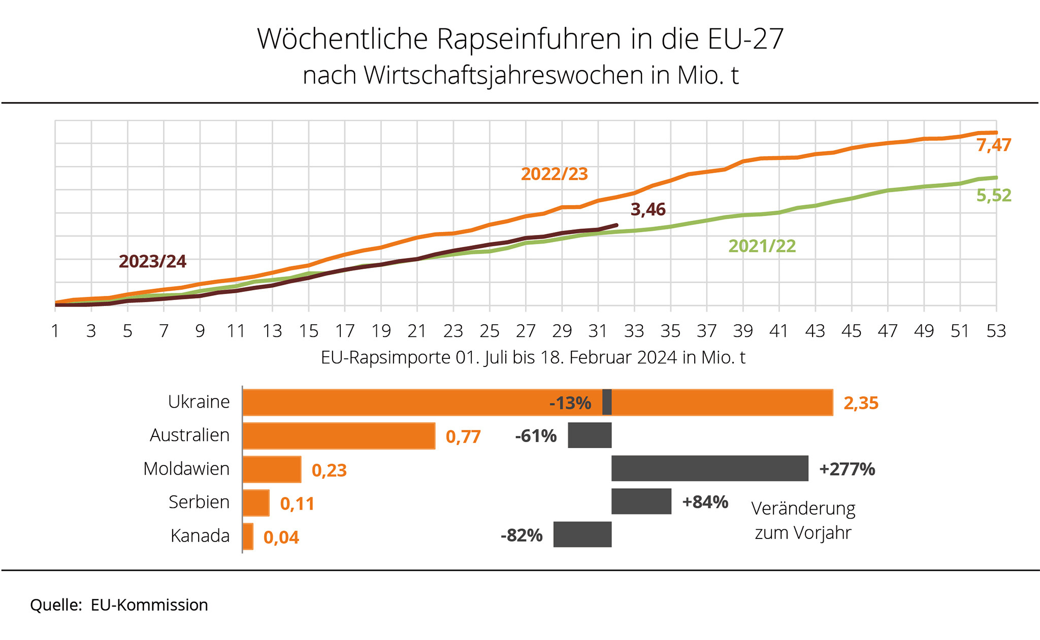 Geringerer Importbedarf bei Raps infolge besserer Angebotssituation in der EU