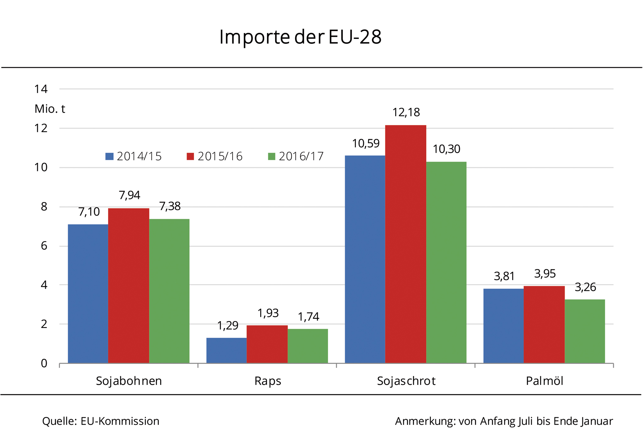EU-28 importiert bislang weniger