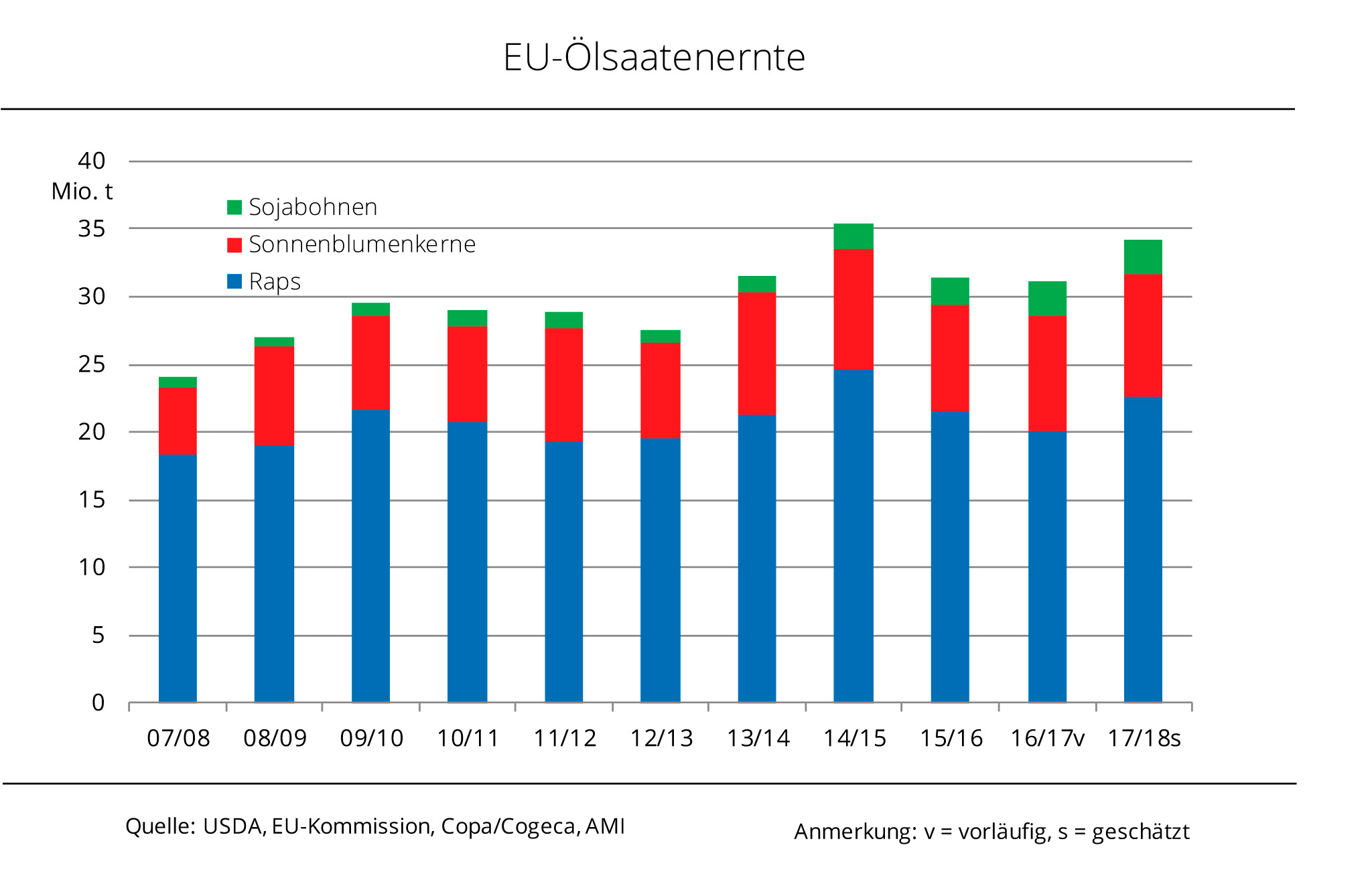 Ölsaatenernte EU-28 über Vorjahr erwartet
