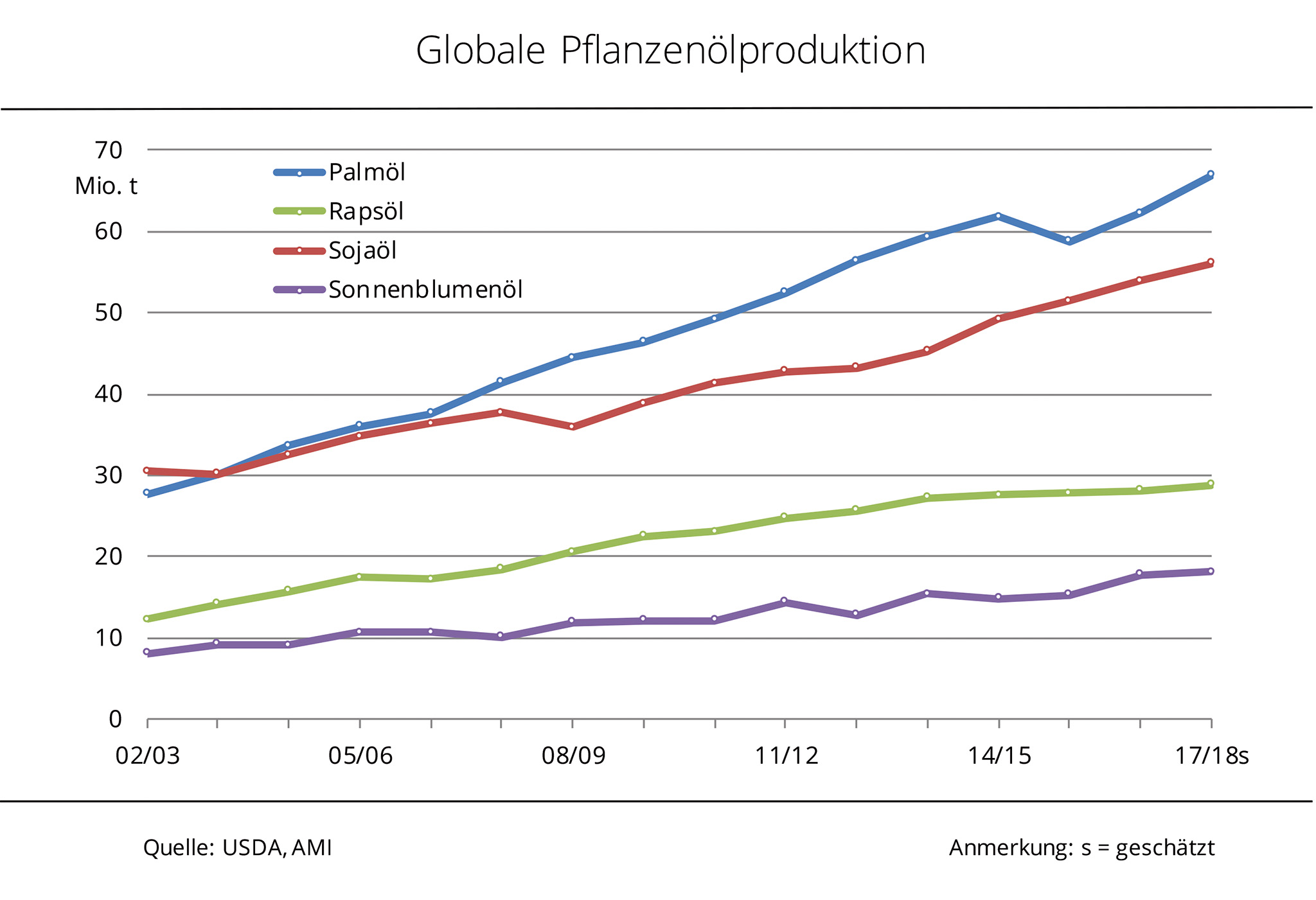 Pflanzenölproduktion steigt 2017/18 auf neuen Höchststand