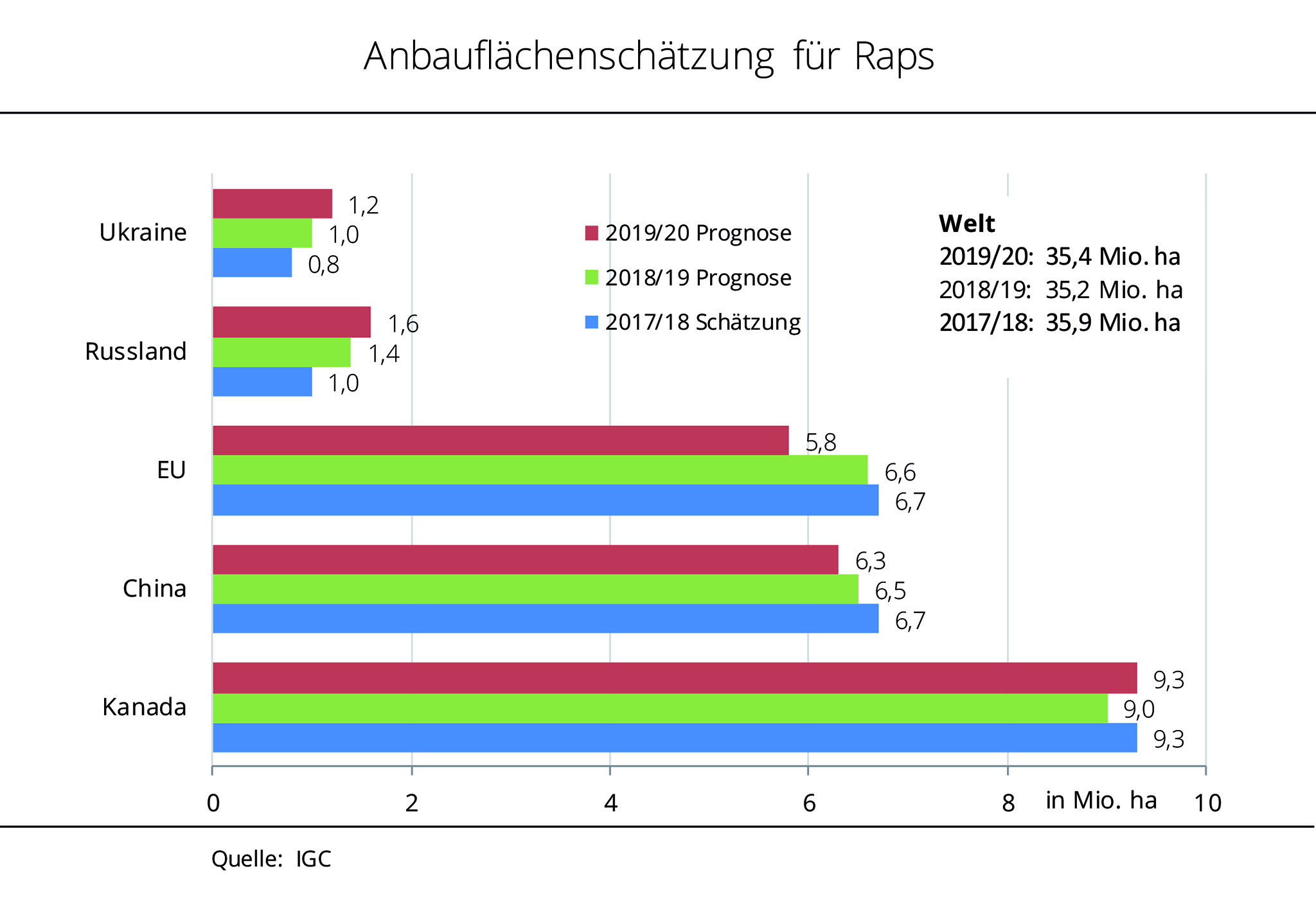 Daher geht der Internationale Getreiderat (IGC) nur von einer minimalen Ausweitung der globalen Rapsfläche um weniger als 1 % aus.