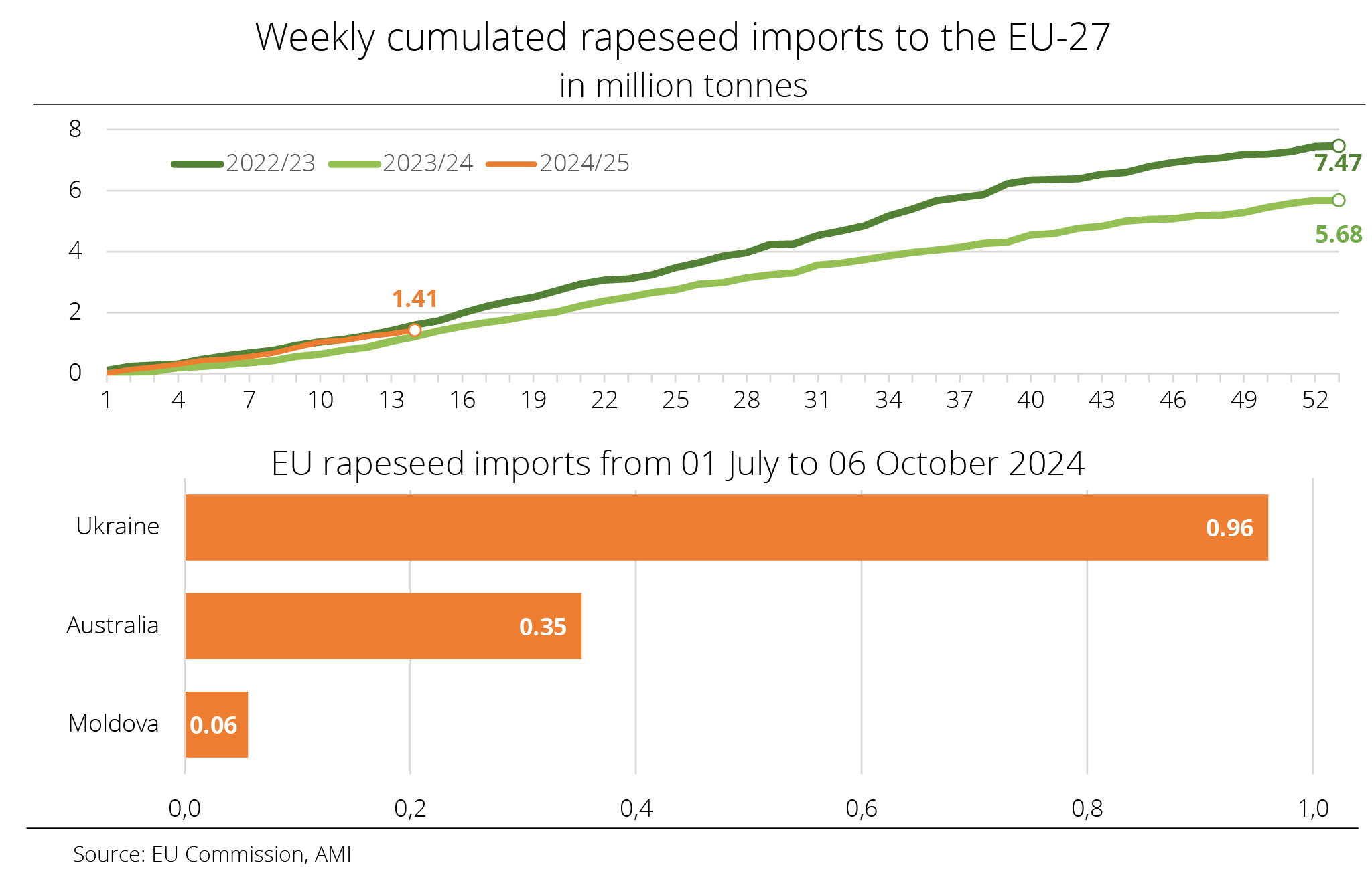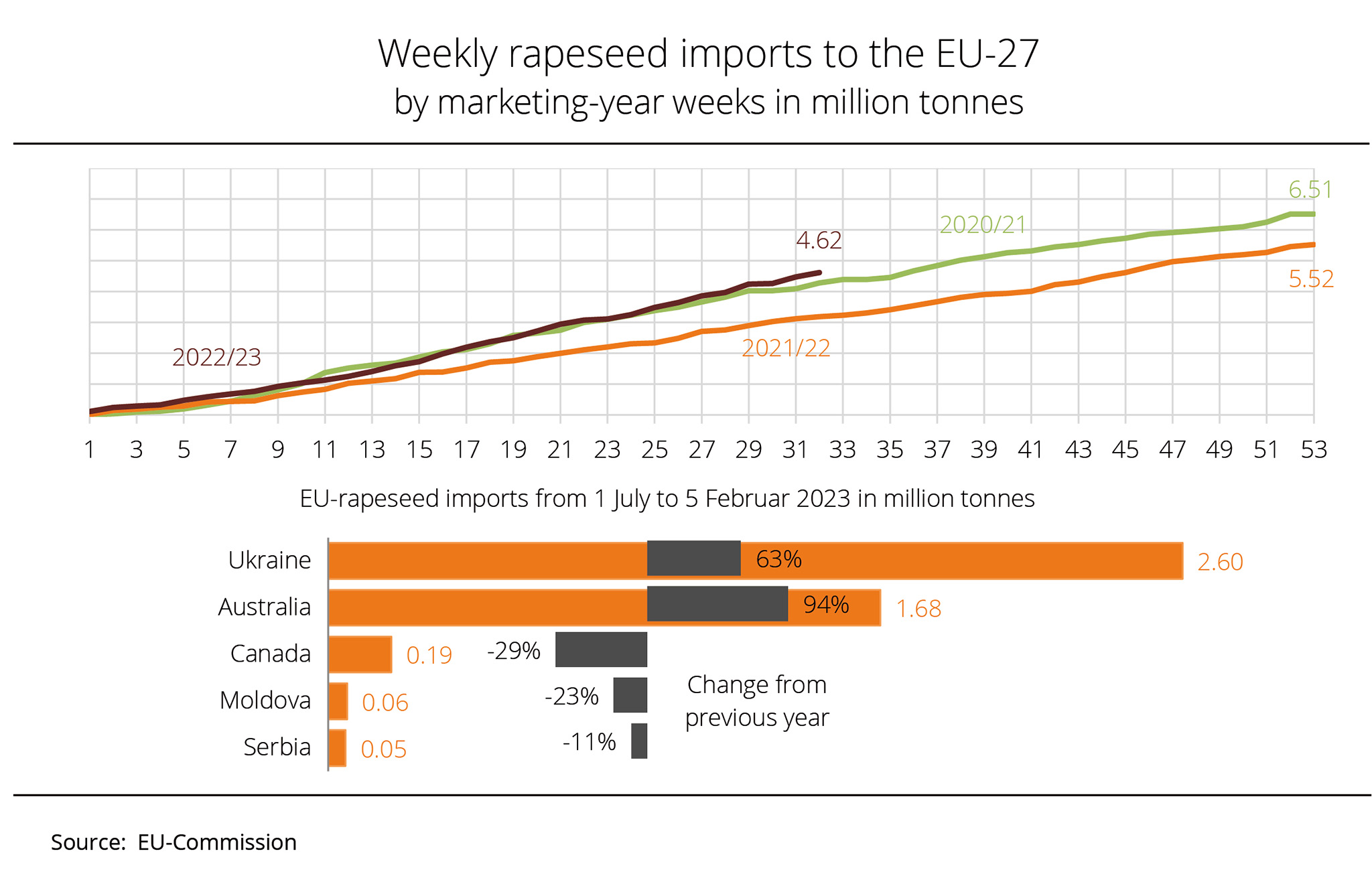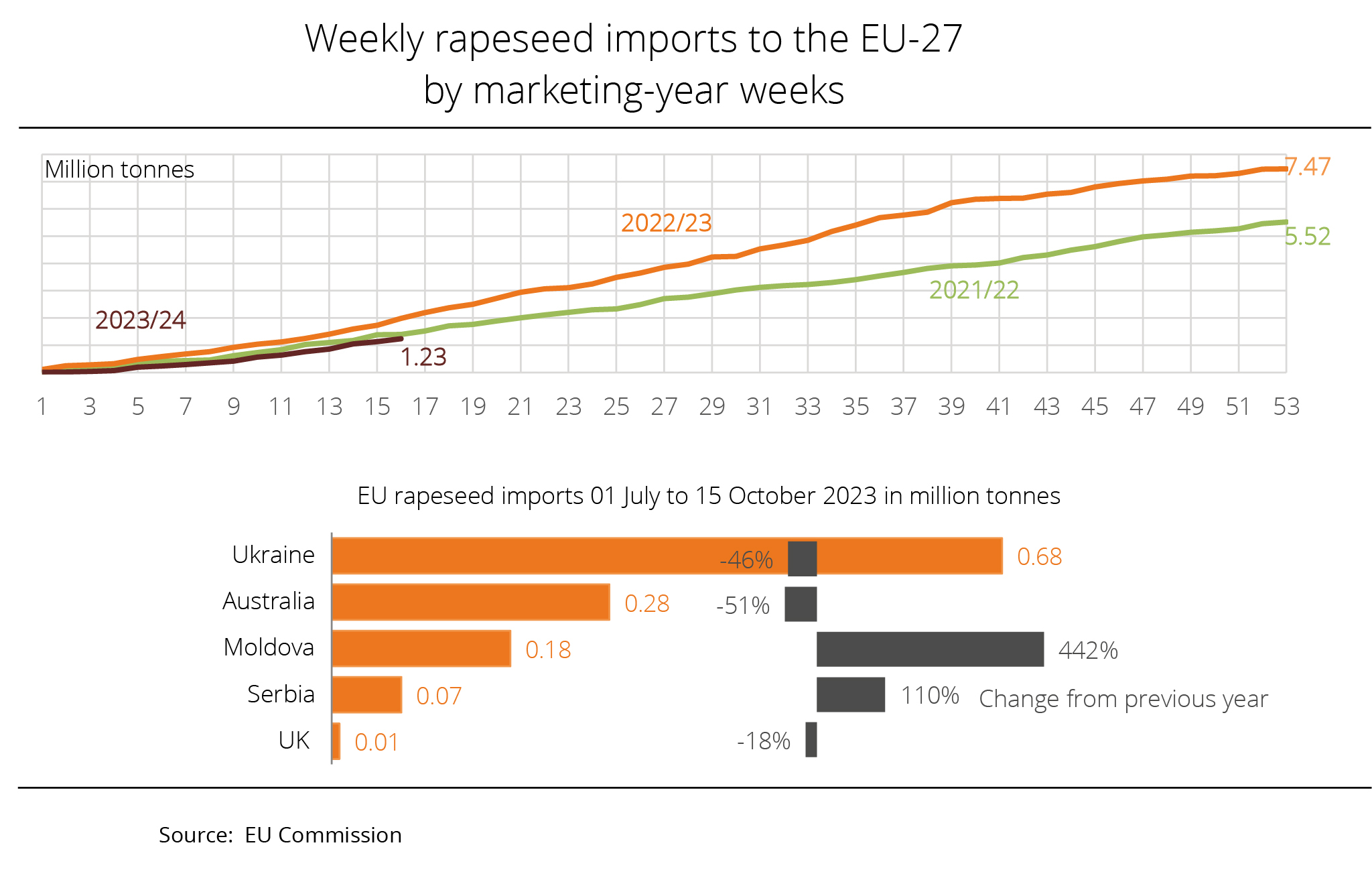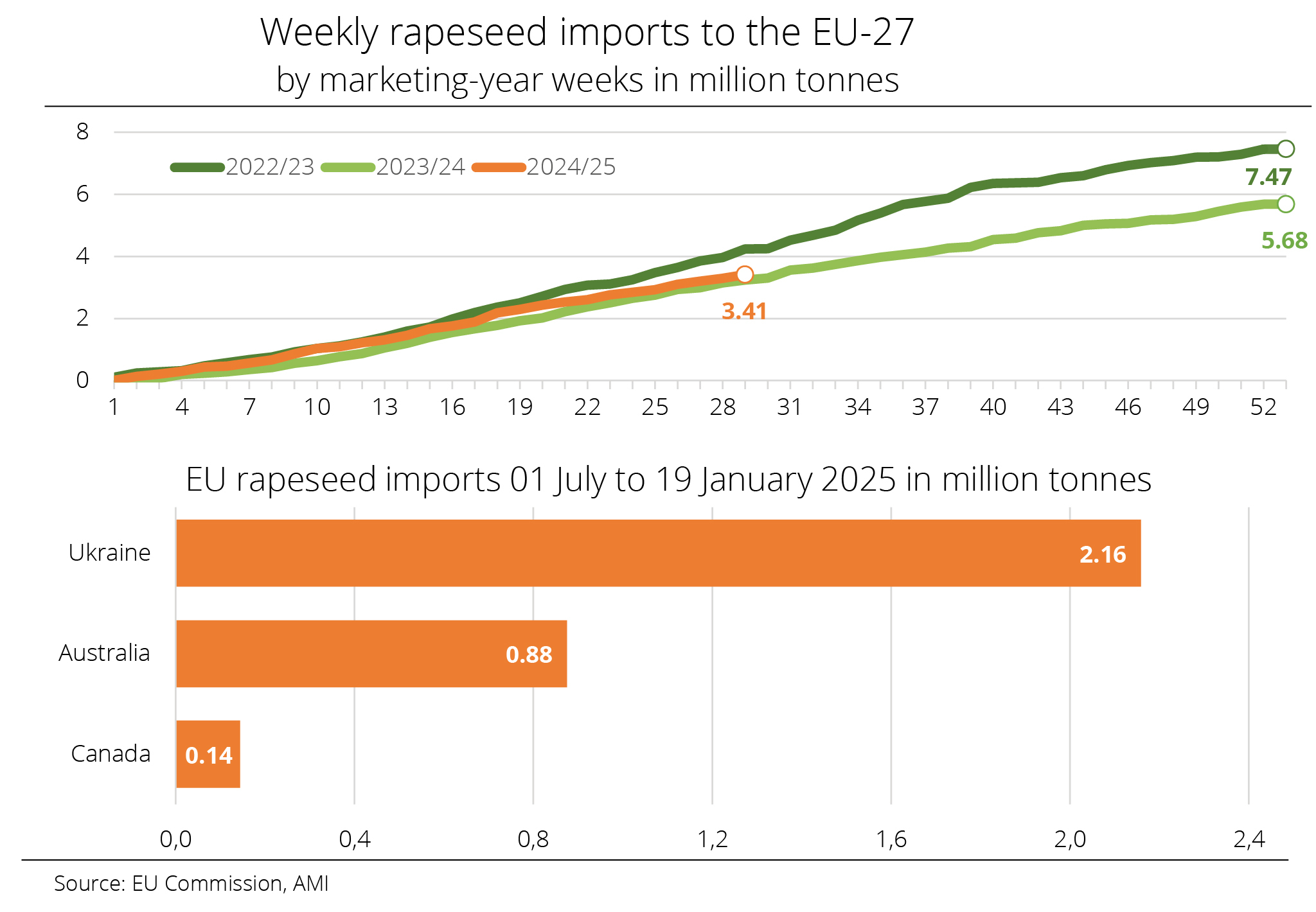 Year-to-date EU-27 rapeseed imports significantly exceed year-earlier levels – despite a considerably larger EU rapeseed harvest than the previous year.
