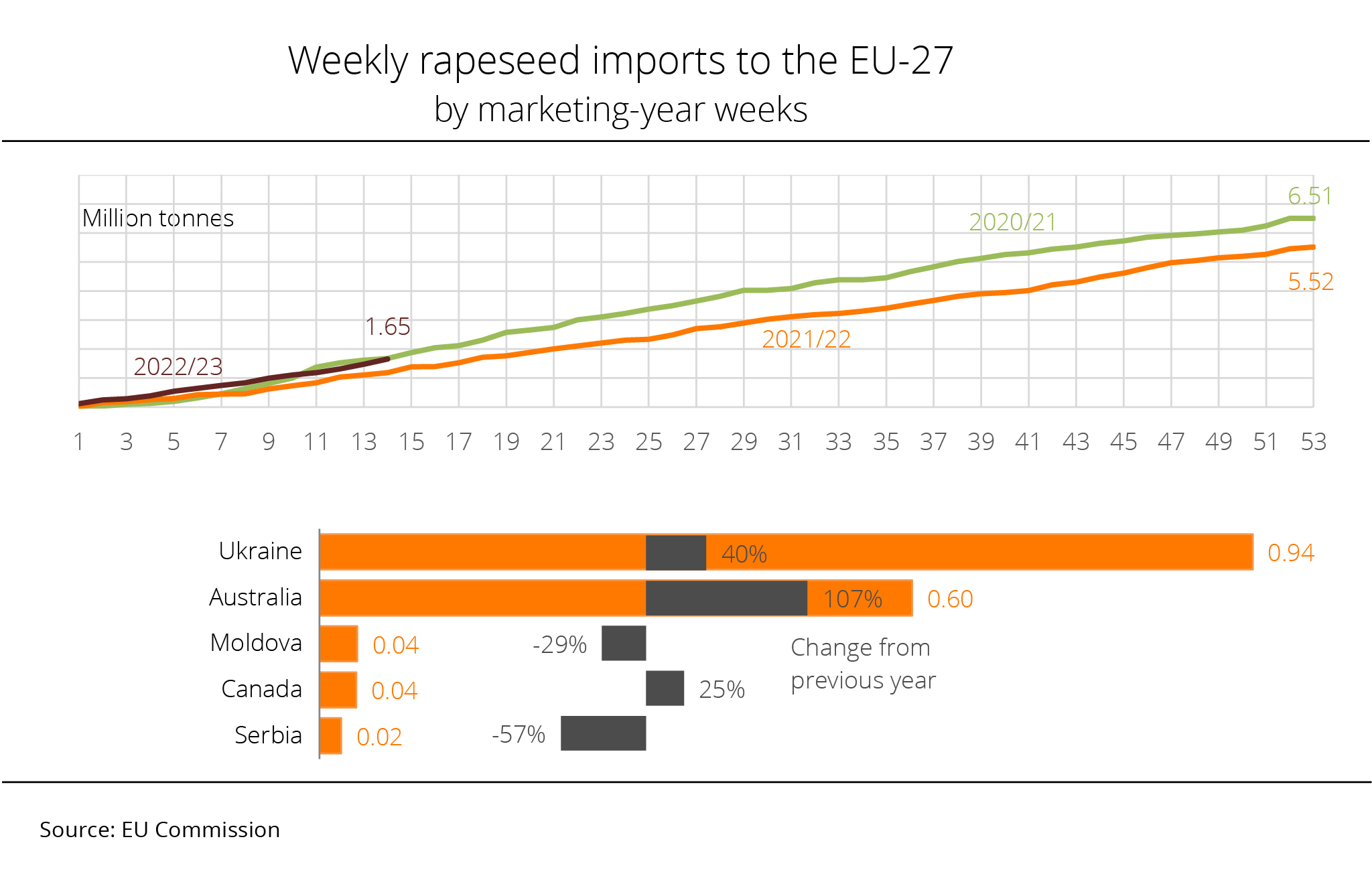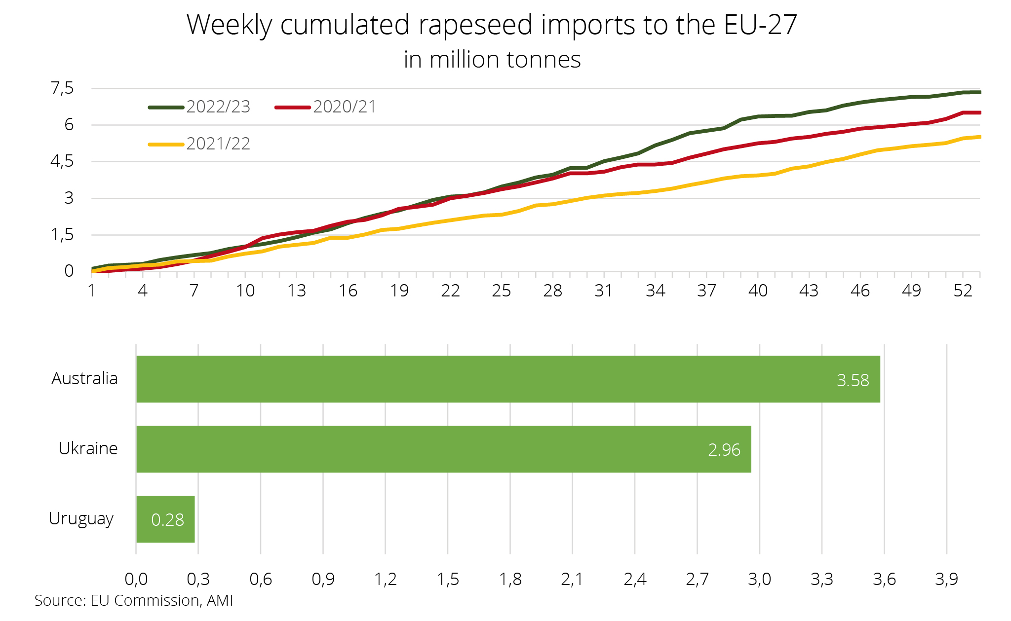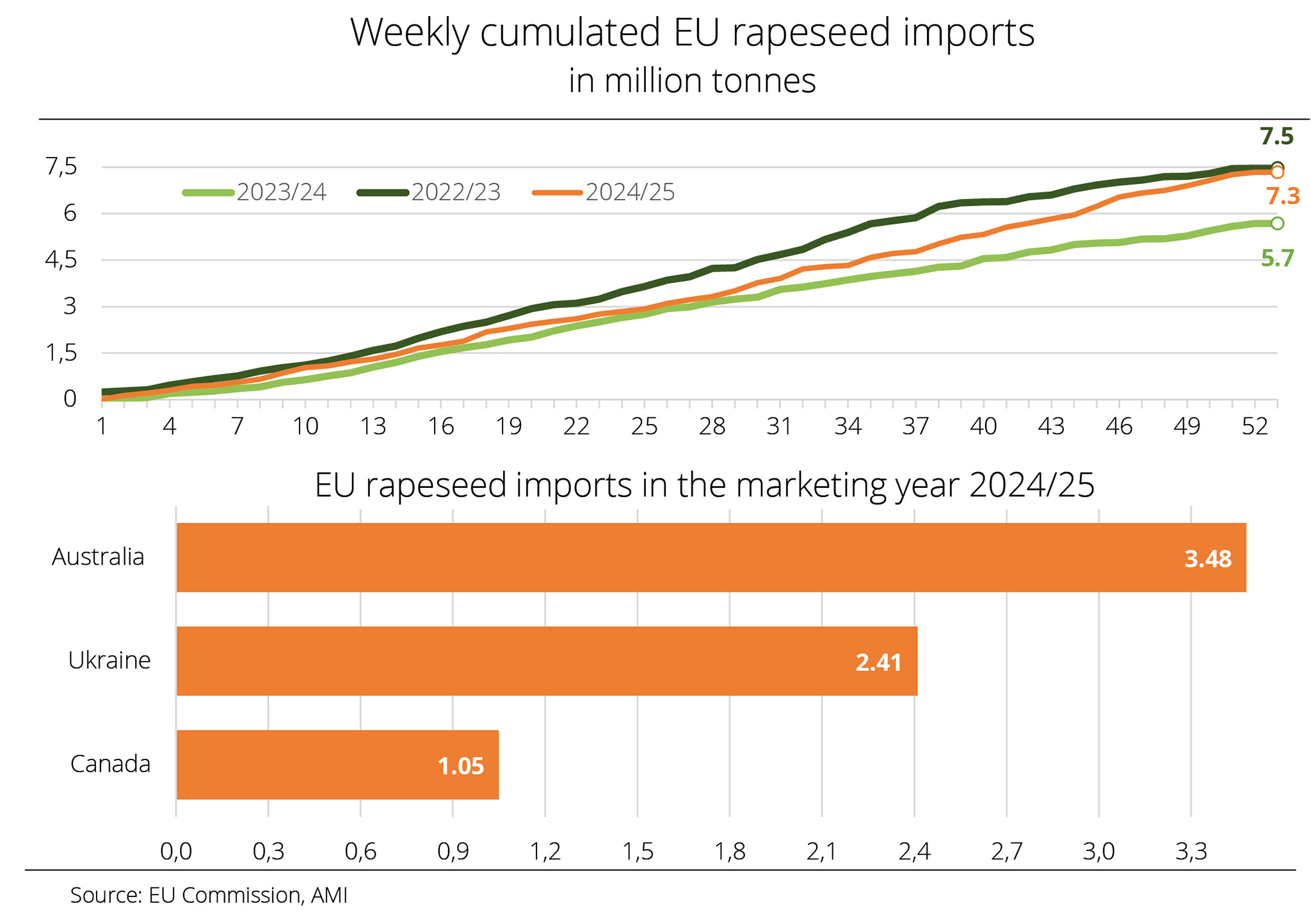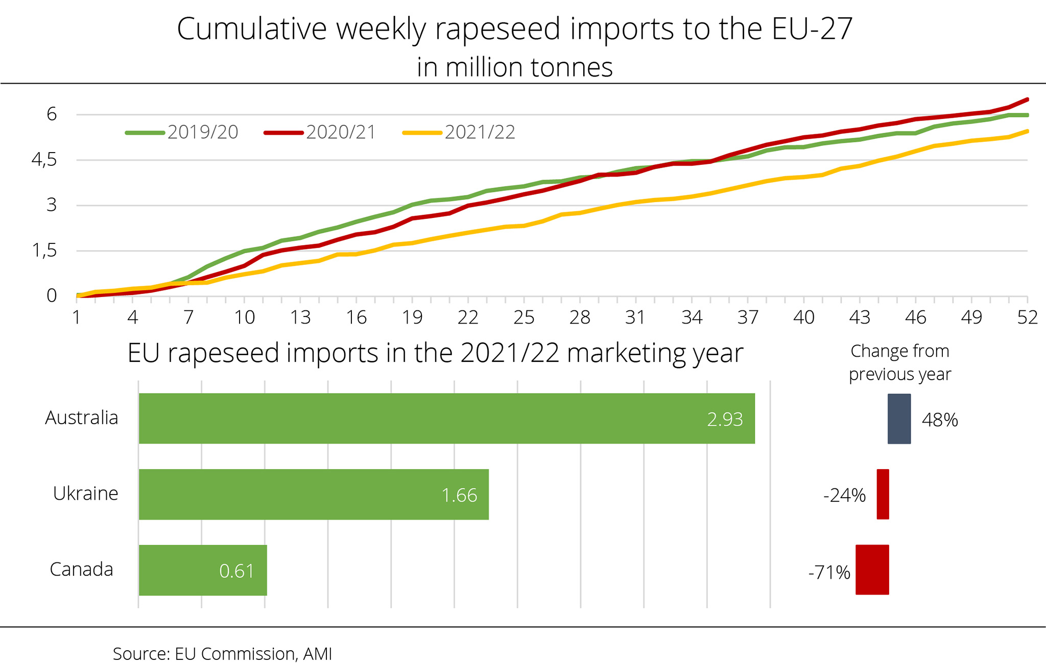 Year-to-date EU-27 rapeseed imports significantly exceed year-earlier levels – despite a considerably larger EU rapeseed harvest than the previous year.