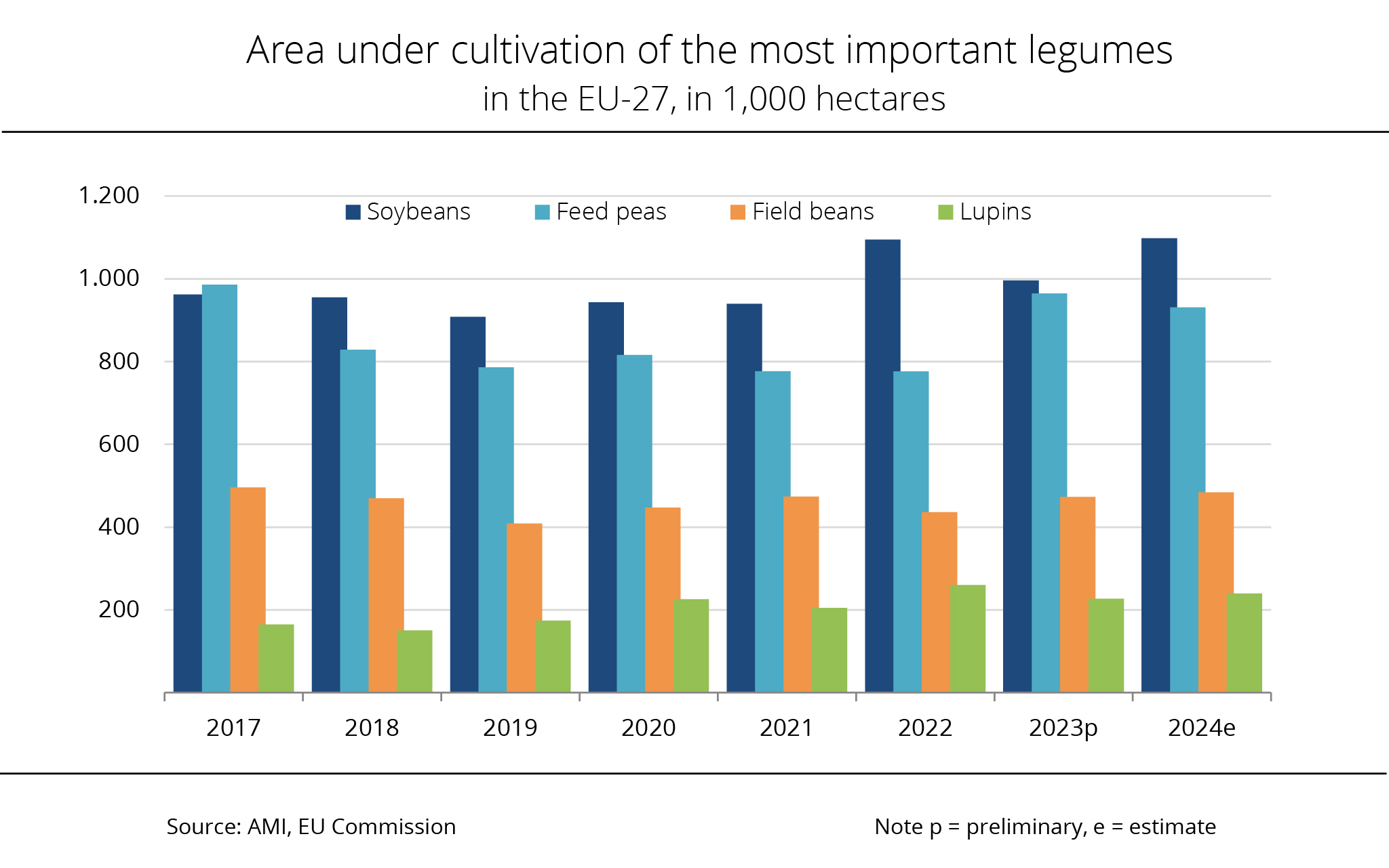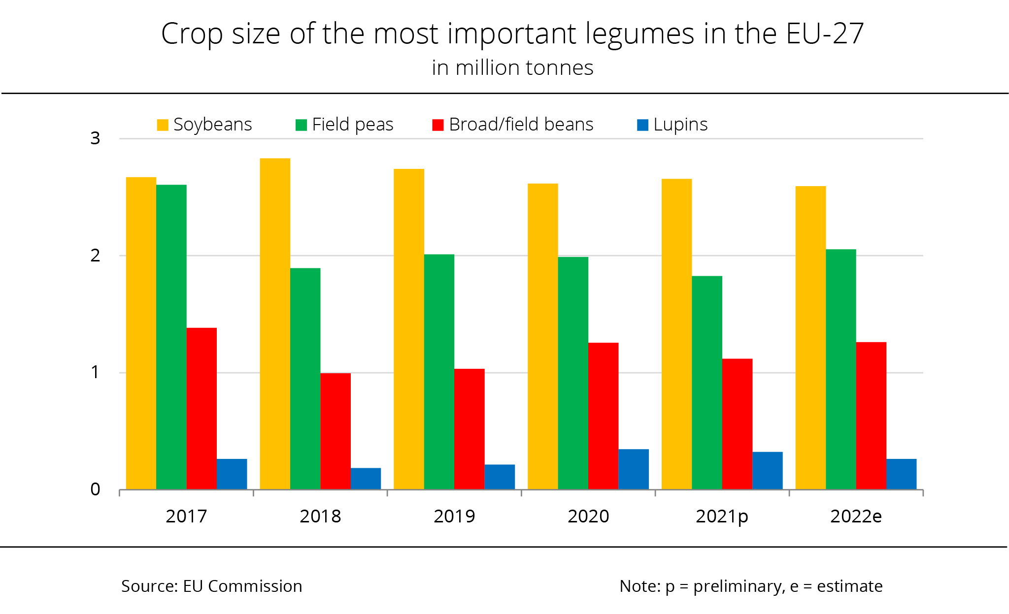 EU output of legumes from the 2022 crop is expected to exceed the previous year's figure by 4 per cent but remains in line with the average of recent years. Field peas and field beans are set to see the biggest increase.