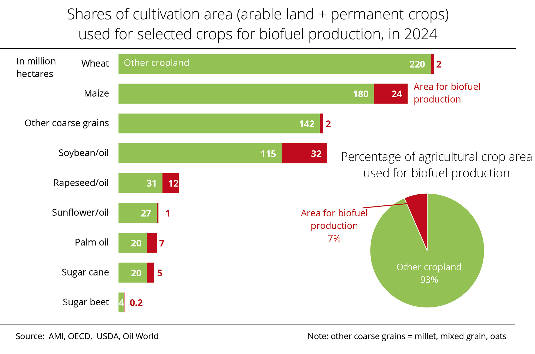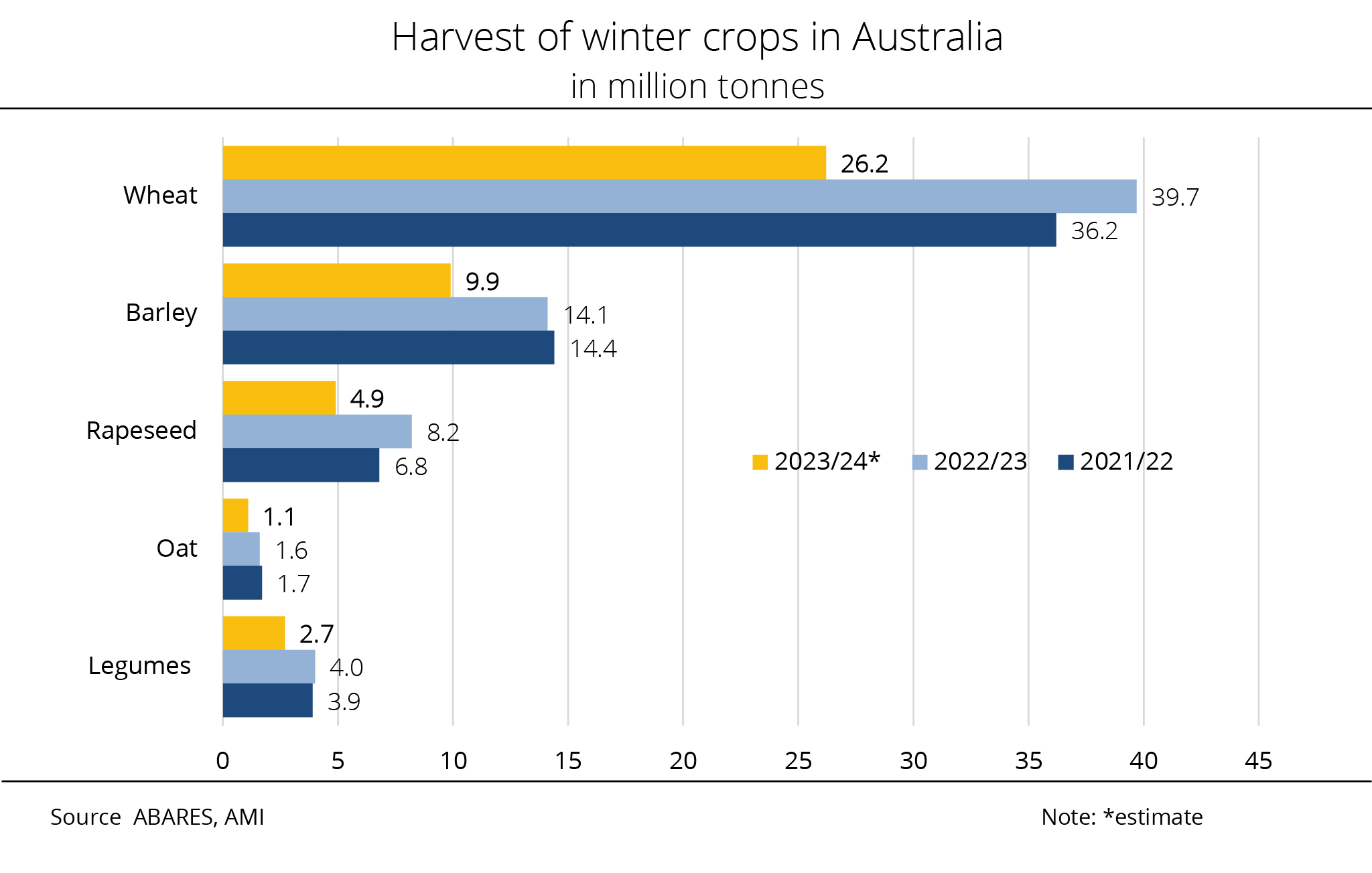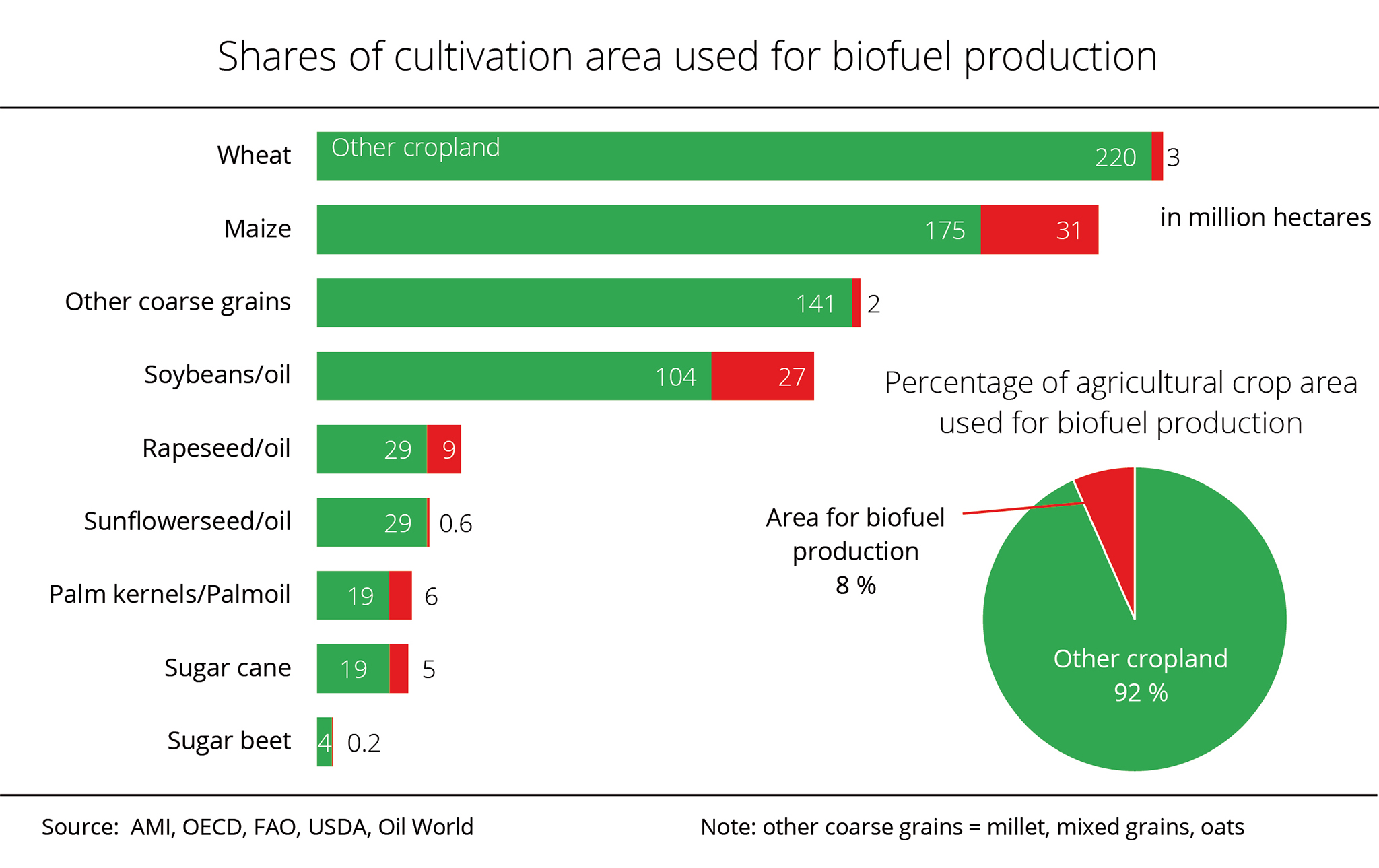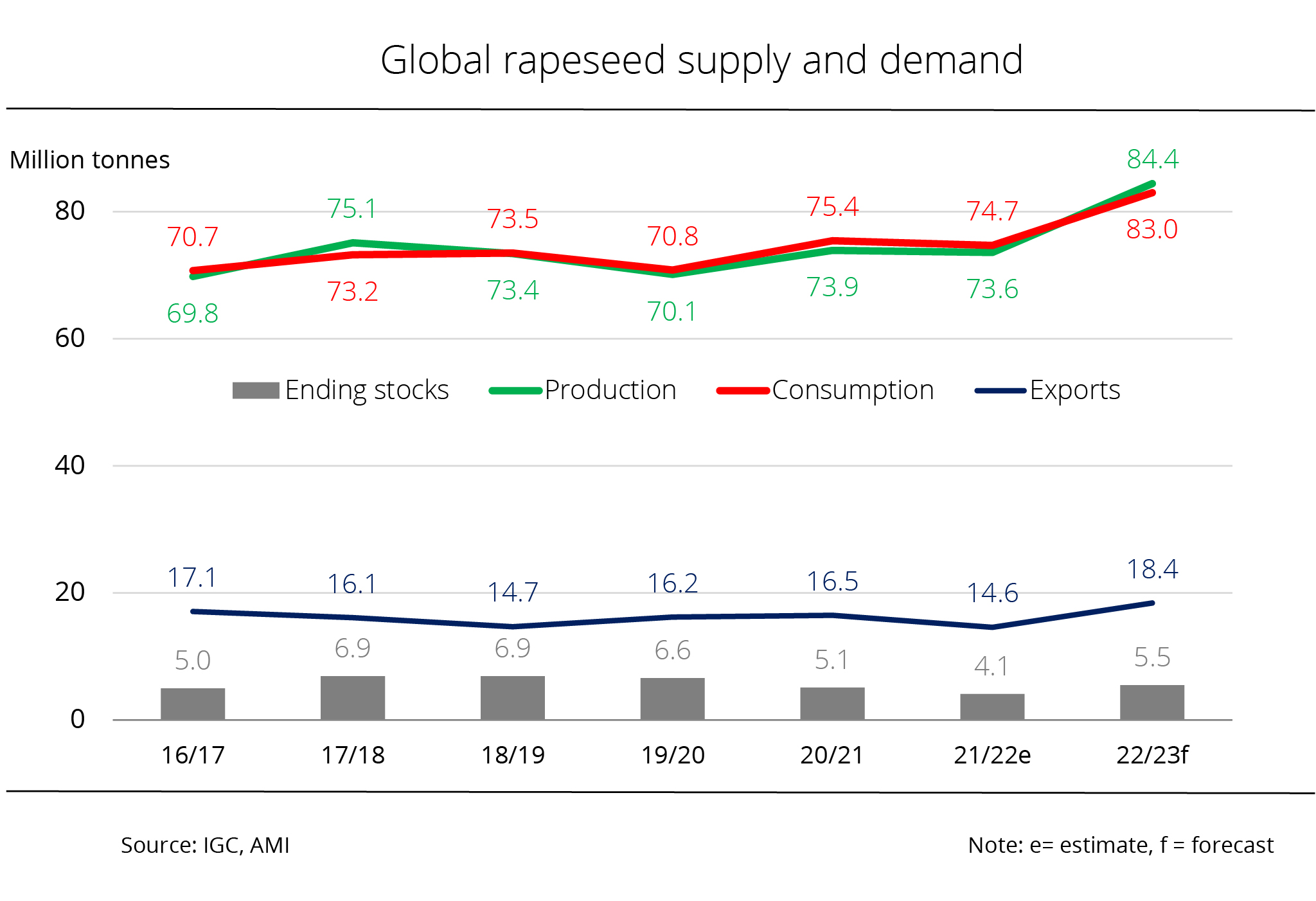 Based on a domestic rapeseed consumption of 10.5 million tonnes, around 1.1 million tonnes more than the past crop year, there will be a surplus of 8.6 million tonnes. Nevertheless, in view of low beginning stocks, supplies - at 900,000 tonnes - will likely fall short of the previous year's volume of 1.7 million tonnes. AMI believes that due to larger Canadian production, rapeseed exports will presumably rise significantly to around 8.5 million tonnes. This would translate to a 60.3 per cent rise year-on-year. Domestic consumption could also increase. Forecast at 10 million tonnes, it would exceed the previous year's volume by 16.3 per cent.