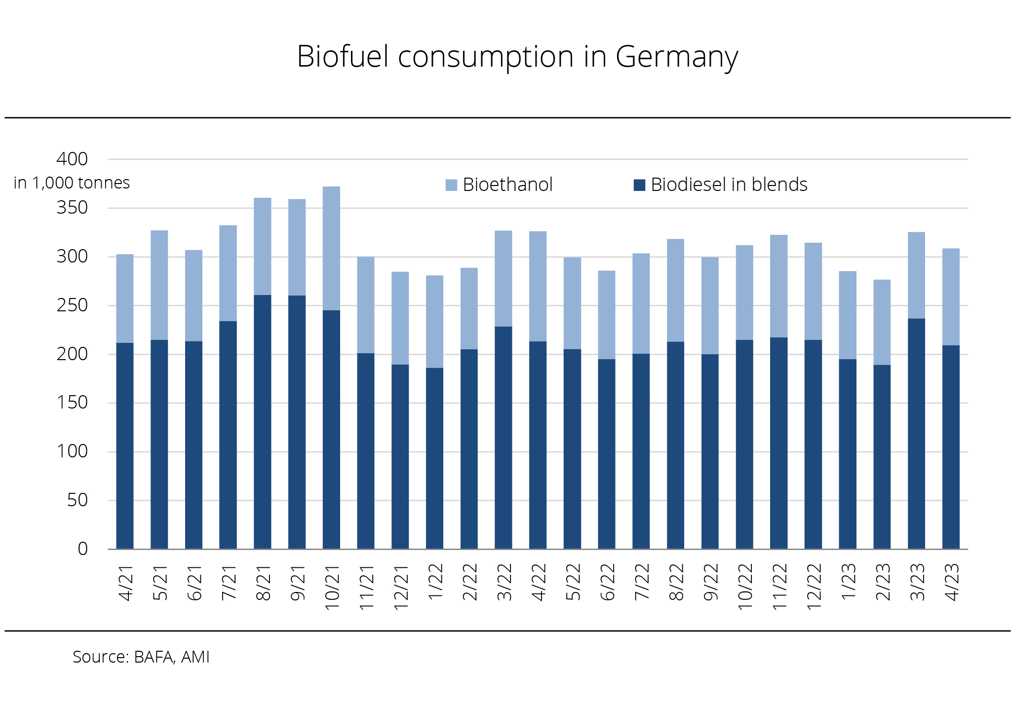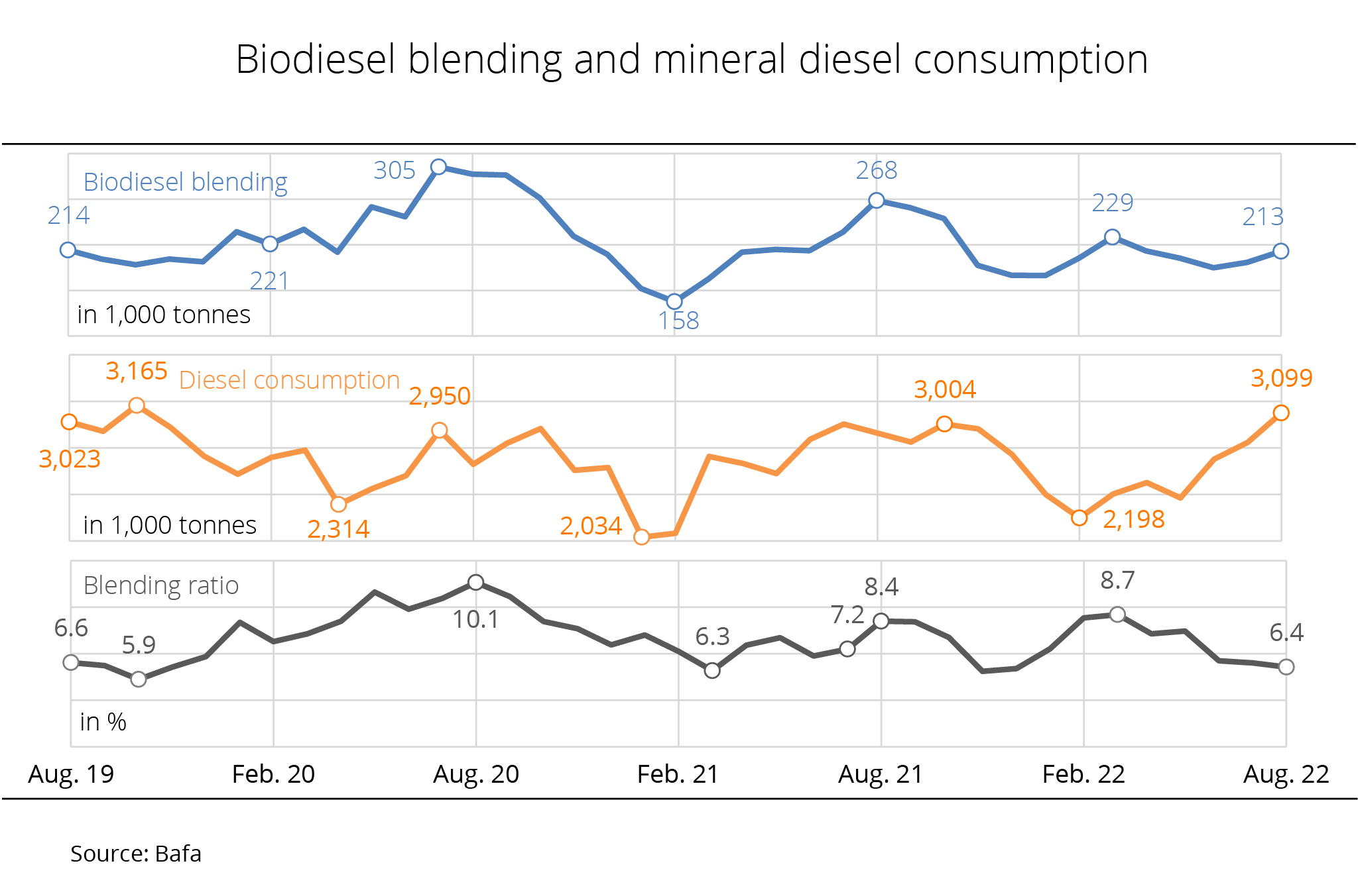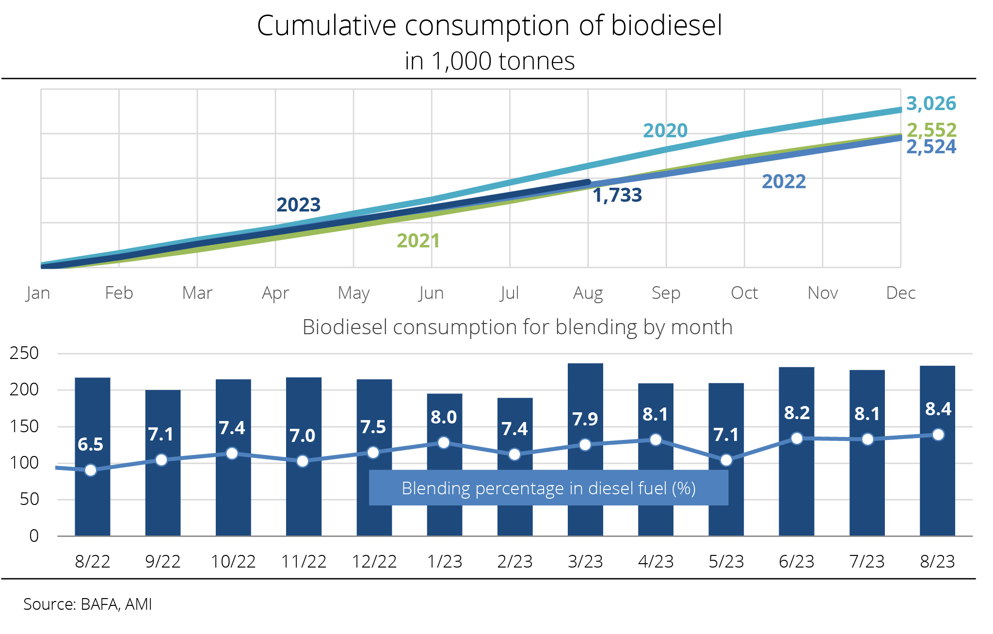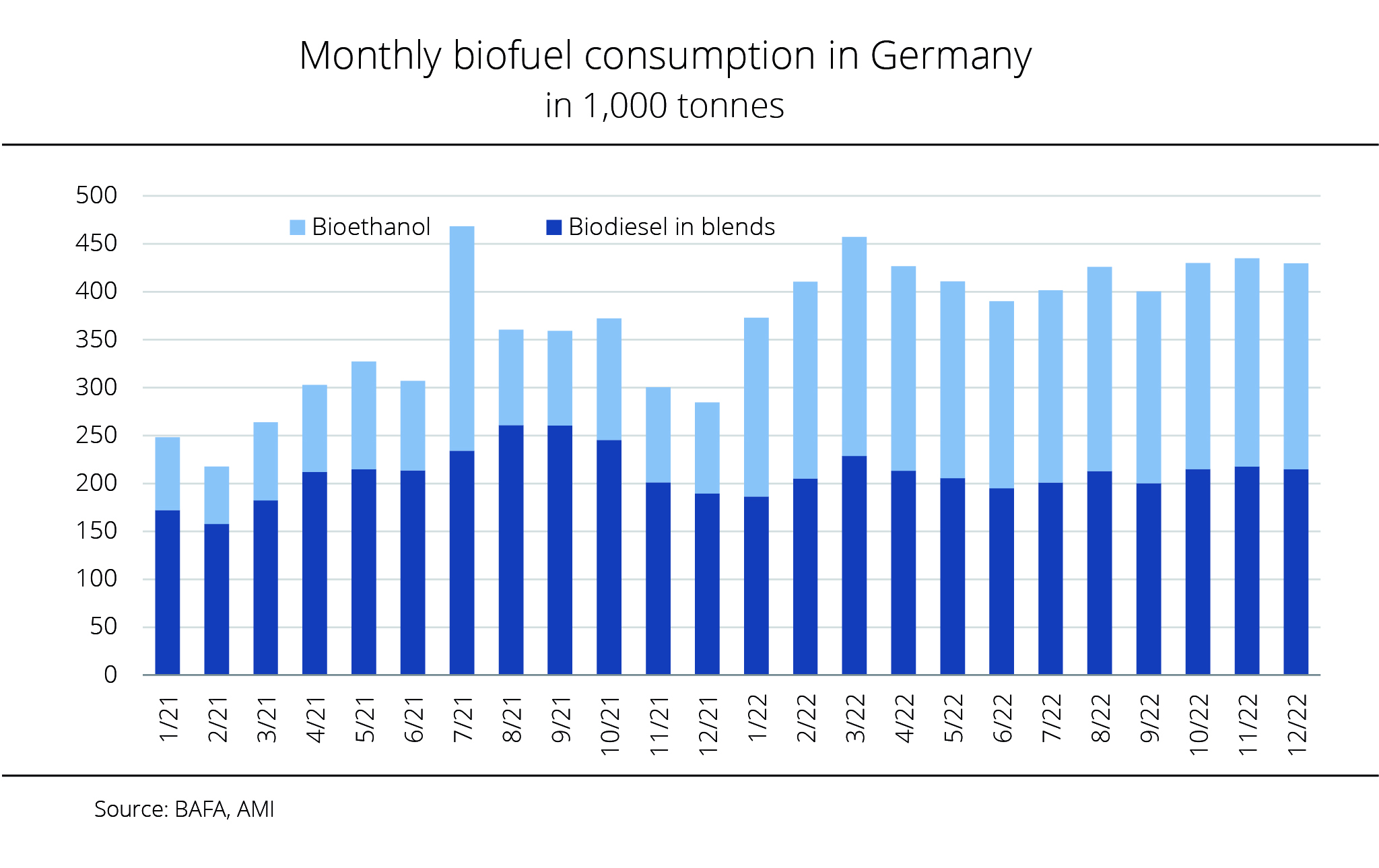 In the first half of 2022, the use of biodiesel and hydrotreated vegetable oil for blending amounted to around 1.23 million tonnes. This translates to a 6.3 per cent rise on the same period 2021.