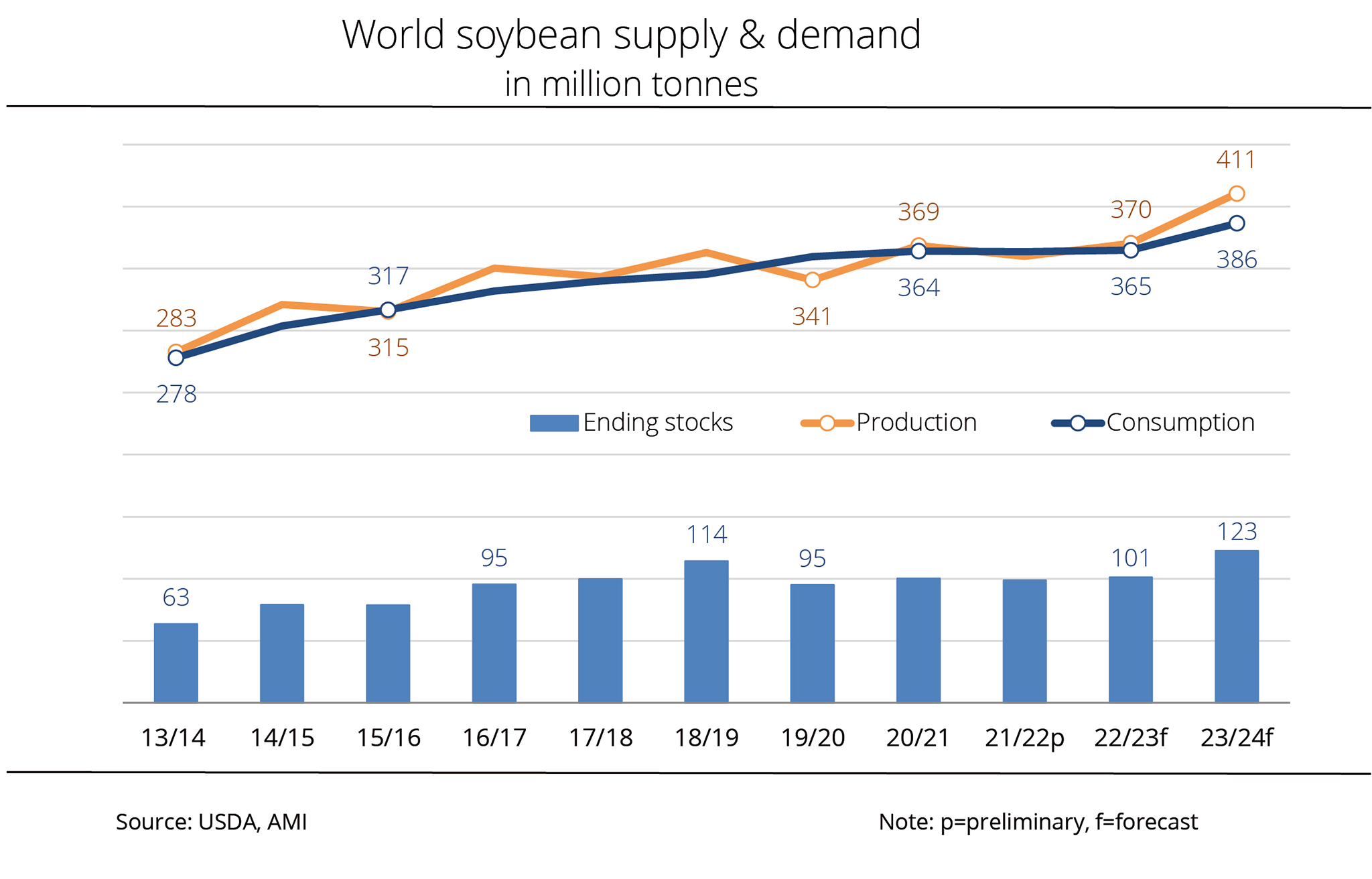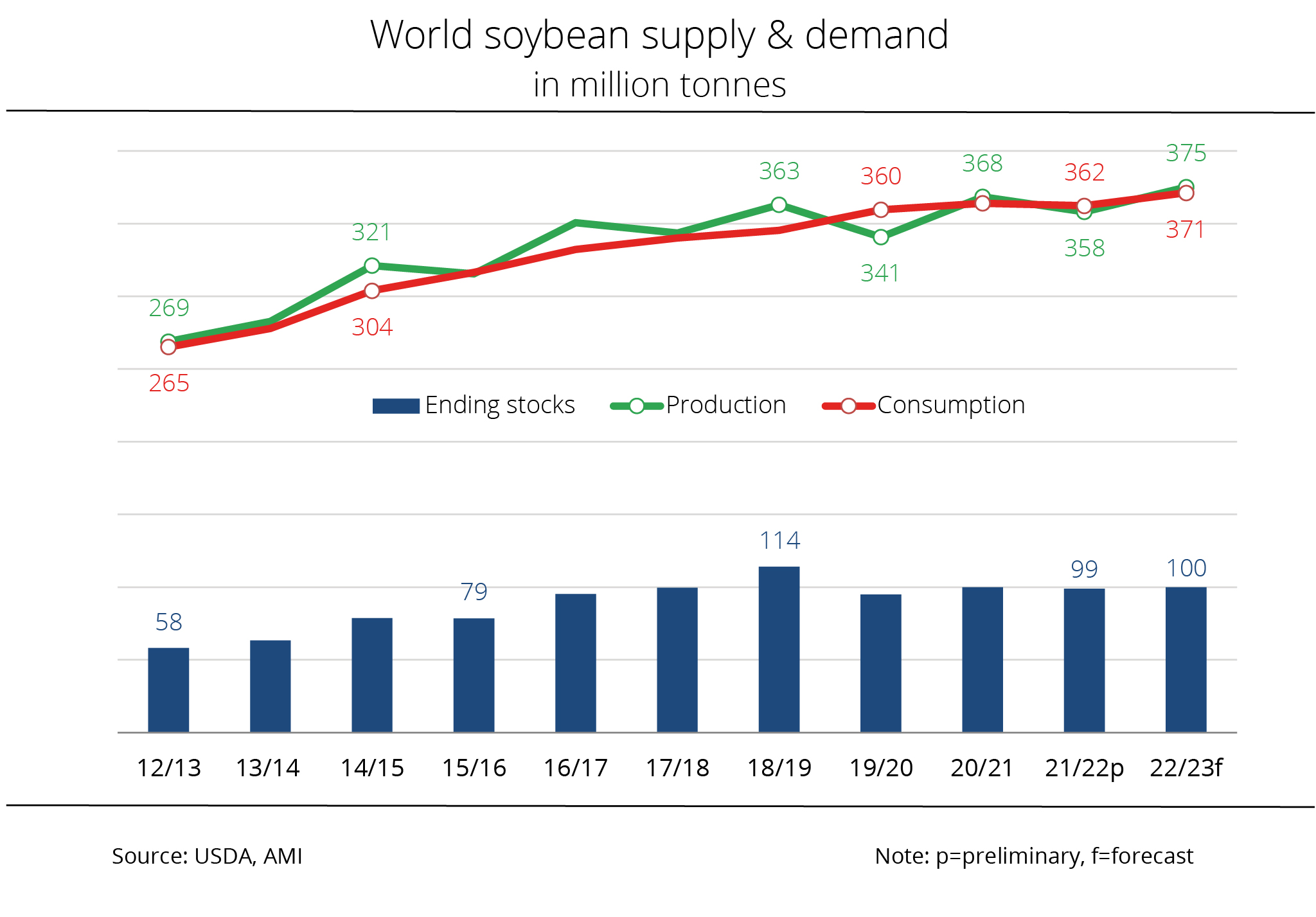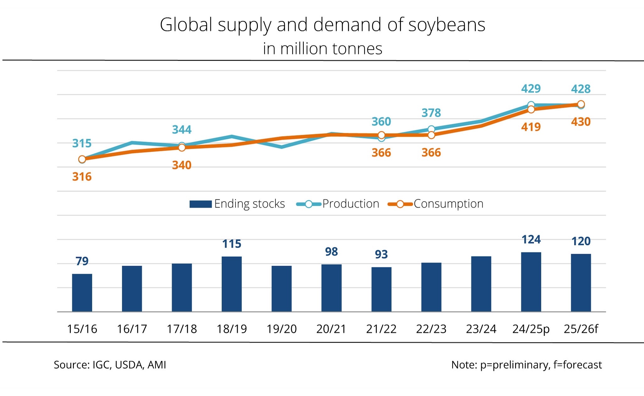 The International Grains Council (IGC) has estimated global supply of soybeans to be lower, but still at a record level. Although demand for soybeans continues to grow all round the world compared to the previous year, supplies are seen to grow even stronger than previously expected.