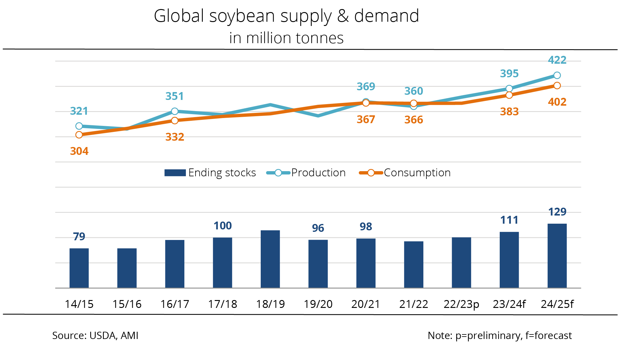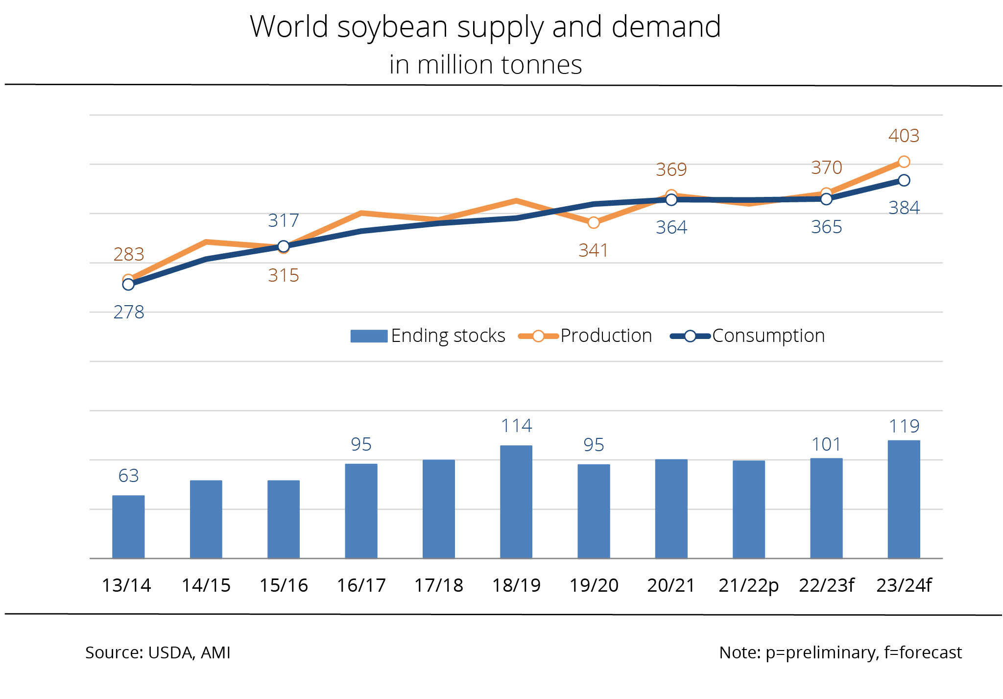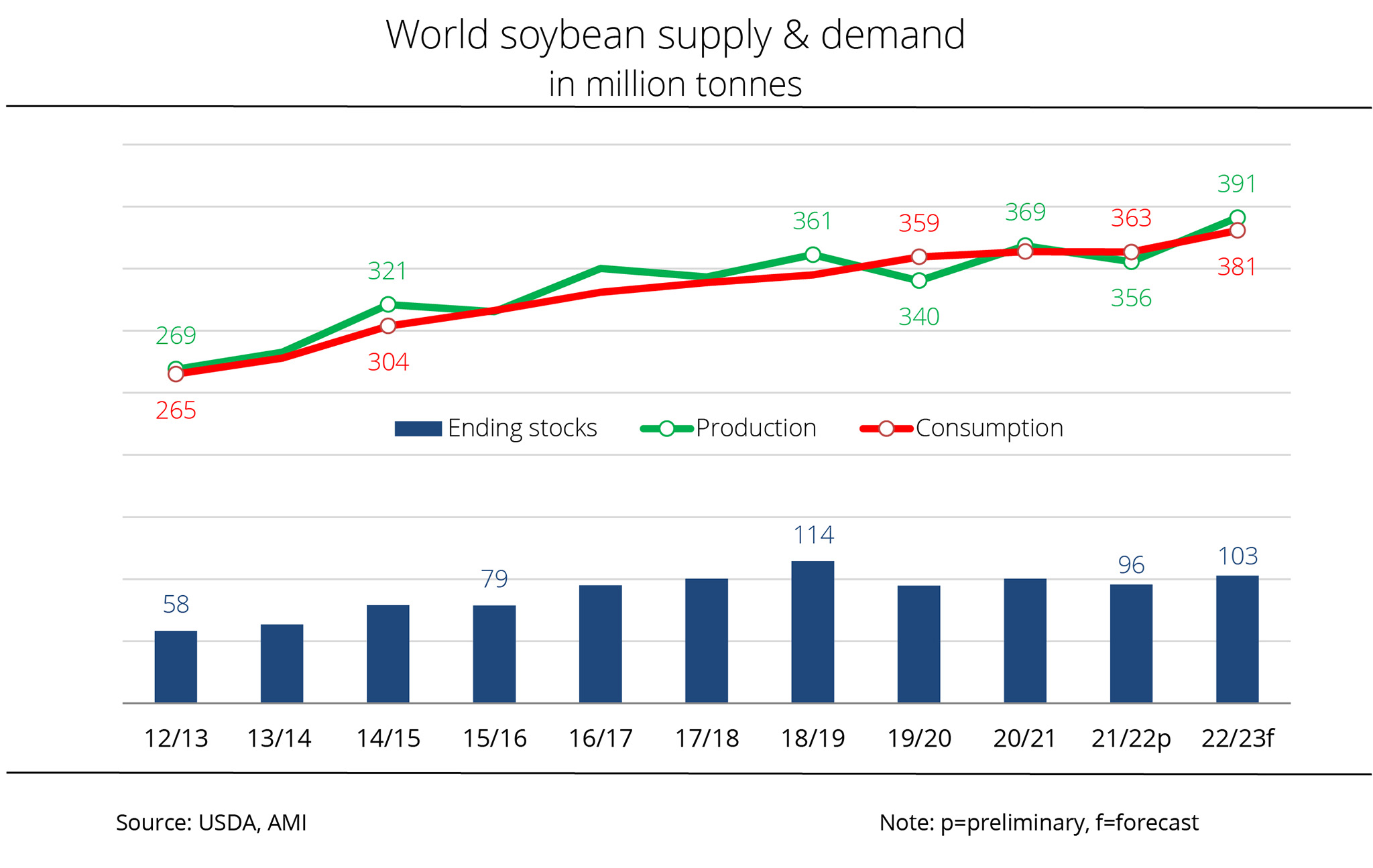 The International Grains Council (IGC) has estimated global supply of soybeans to be lower, but still at a record level. Although demand for soybeans continues to grow all round the world compared to the previous year, supplies are seen to grow even stronger than previously expected.