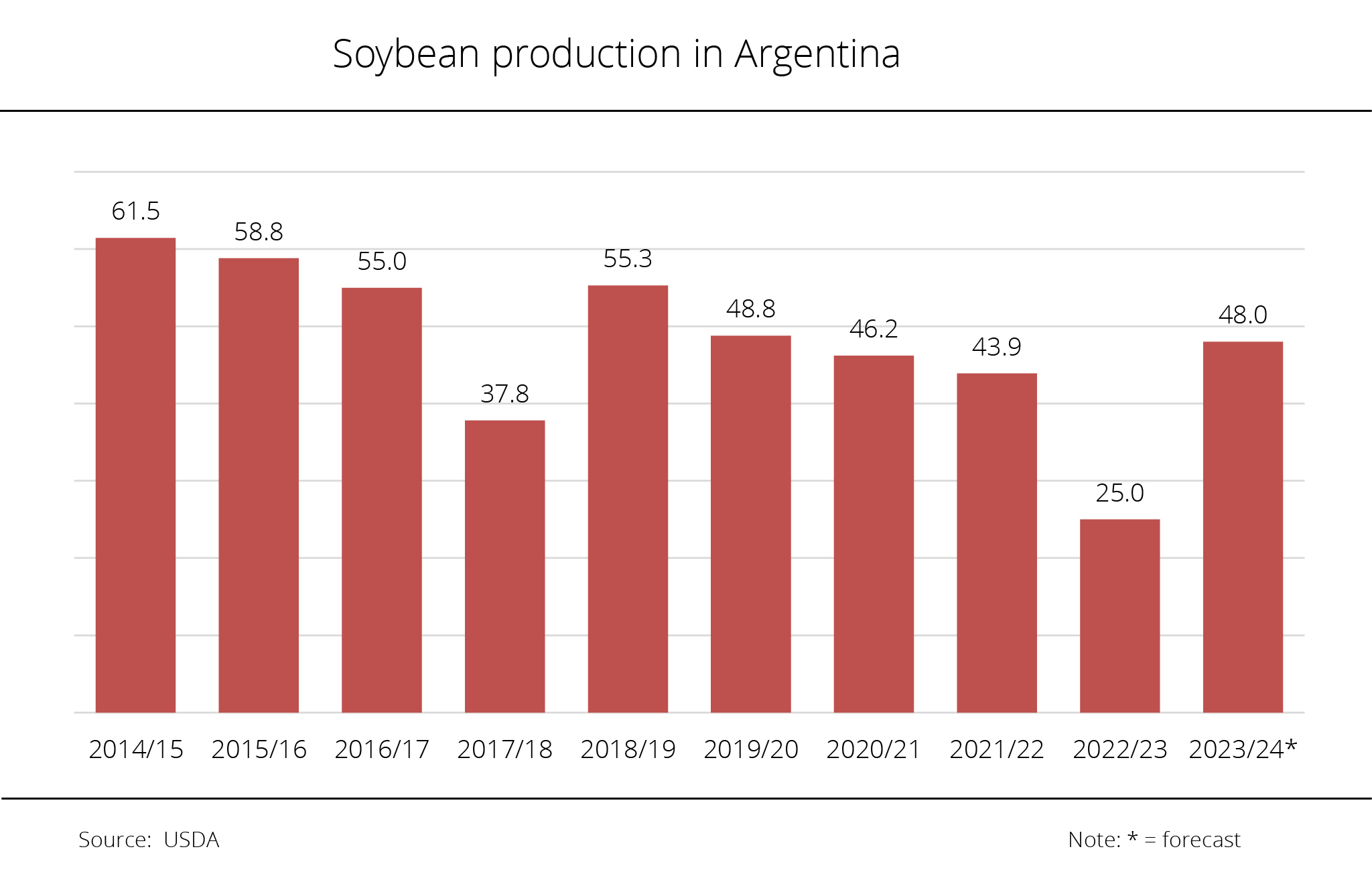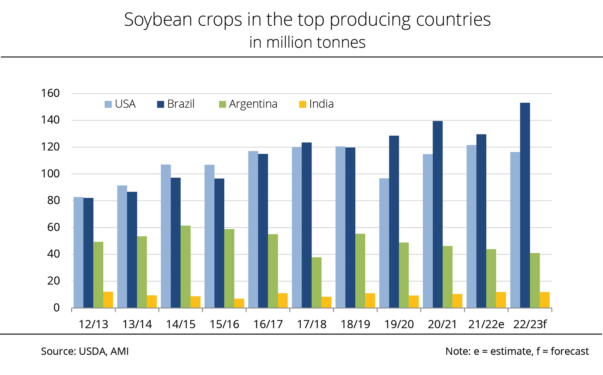 South America is further consolidating its share of the global soybean market in this crop year. Brazil is expected to record another bumper crop, whereas the Argentine crop is projected to fall short of the previous year's output.