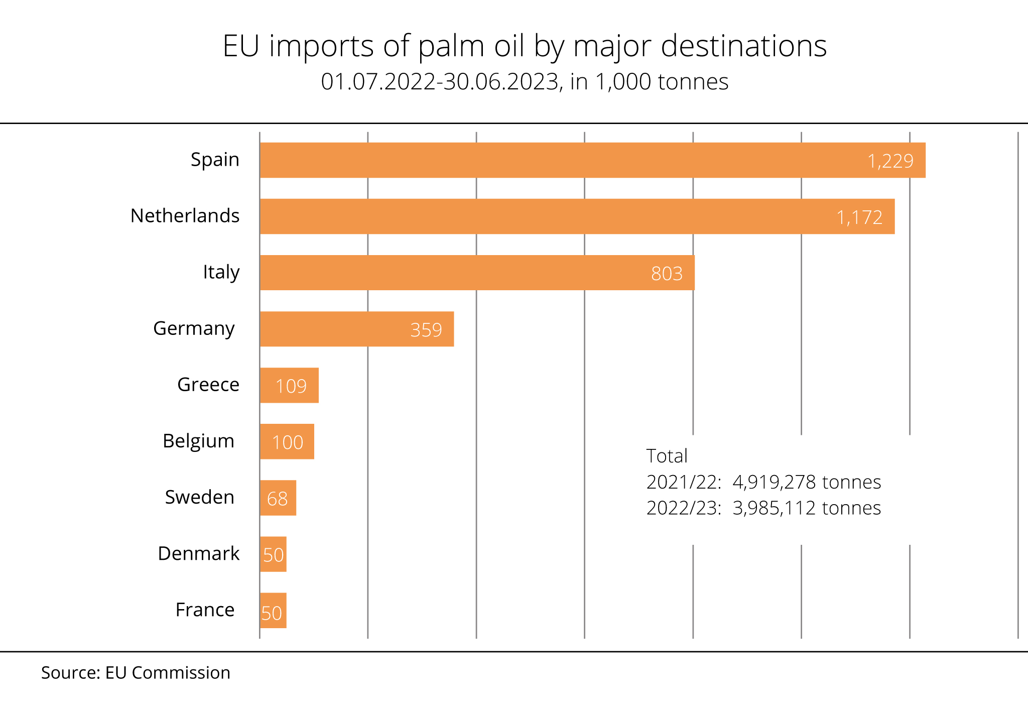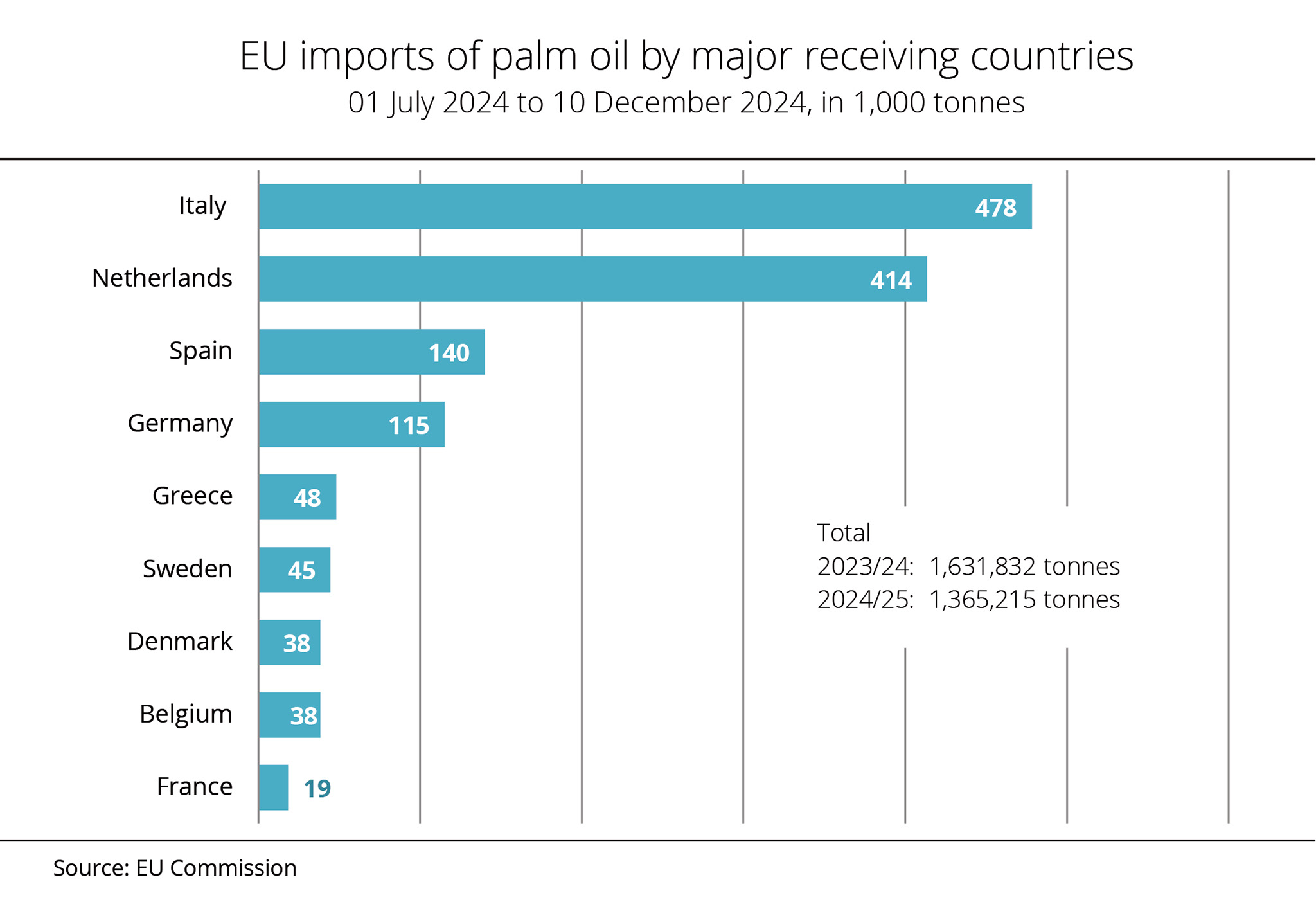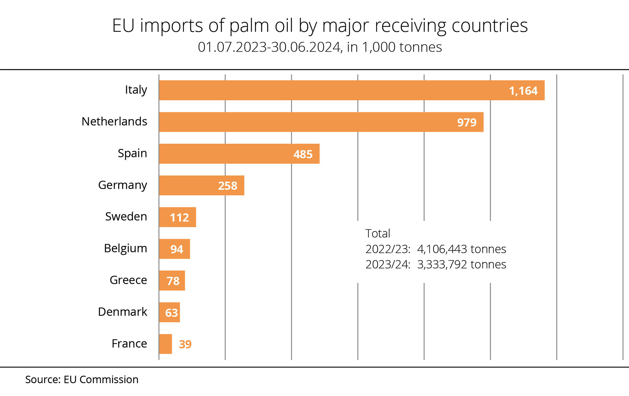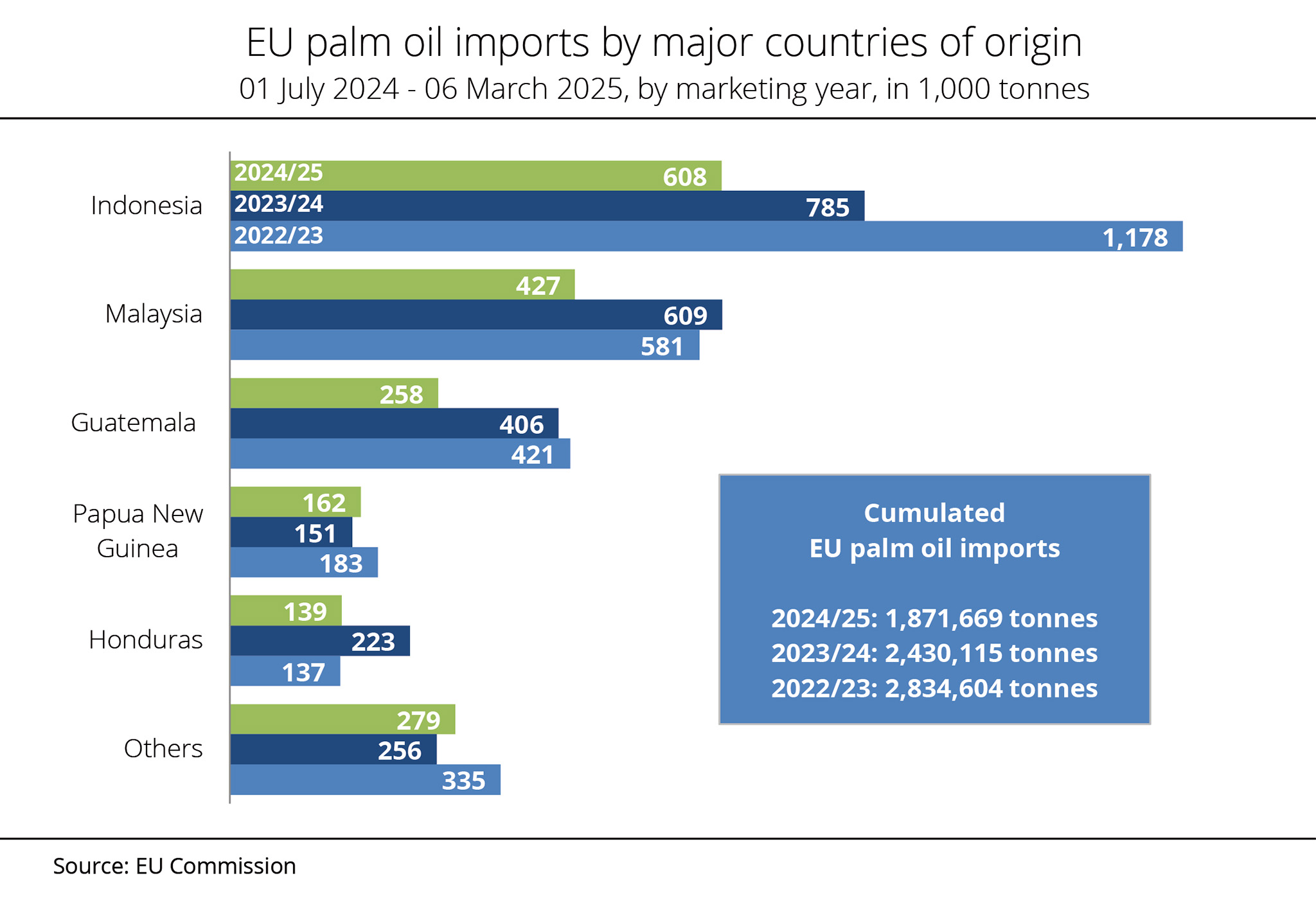 Between July 2023 and March 2024, EU palm oil imports had still totalled around 2.4 million tonnes.
