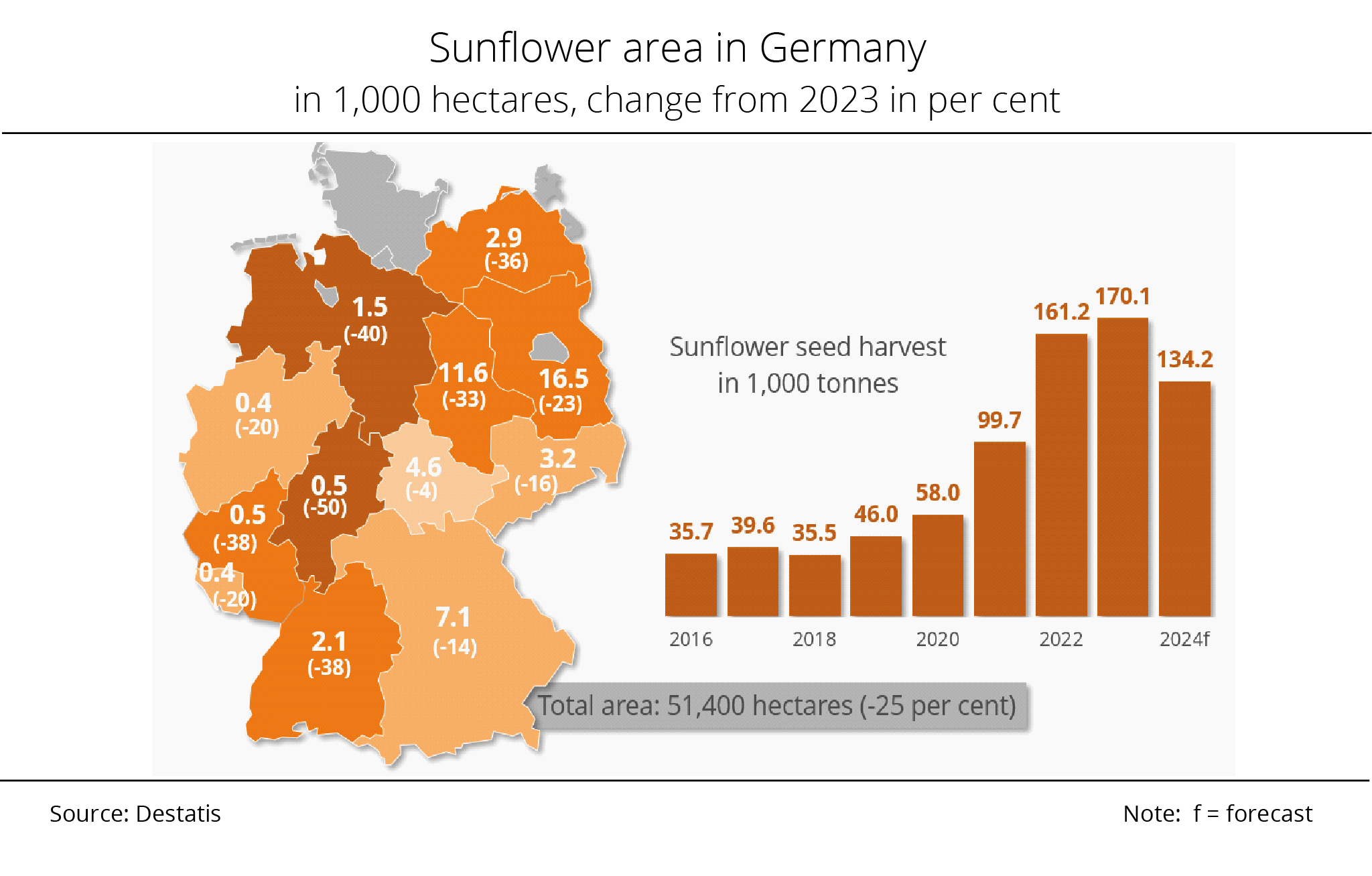 Compared with the major producers of sunflower seed, Germany continues to play a relatively minor role in the EU. However, the upward revision of the crop forecast reflects farmers' growing interest in diversifying crop rotation, especially by including an additional summer crop.