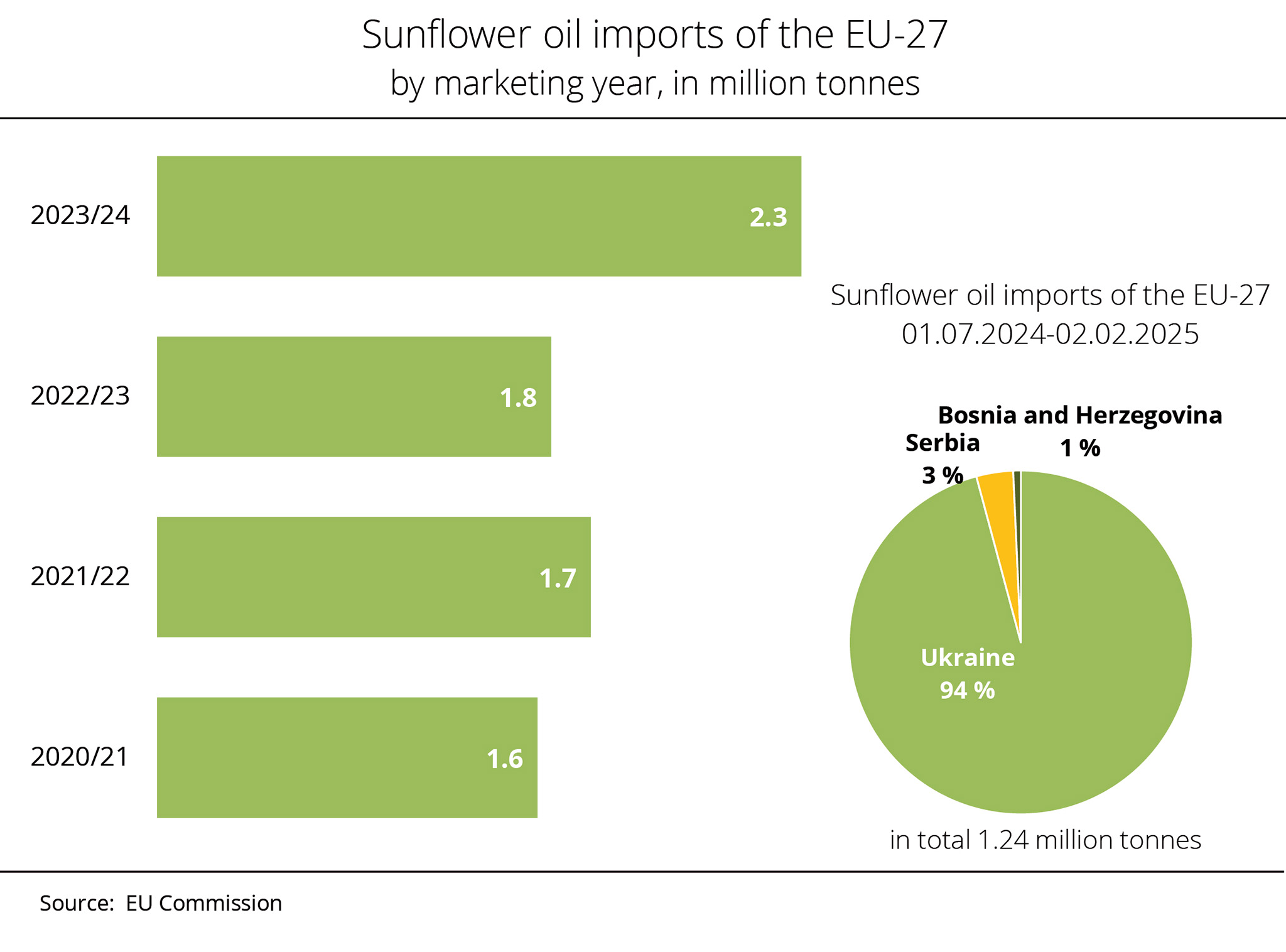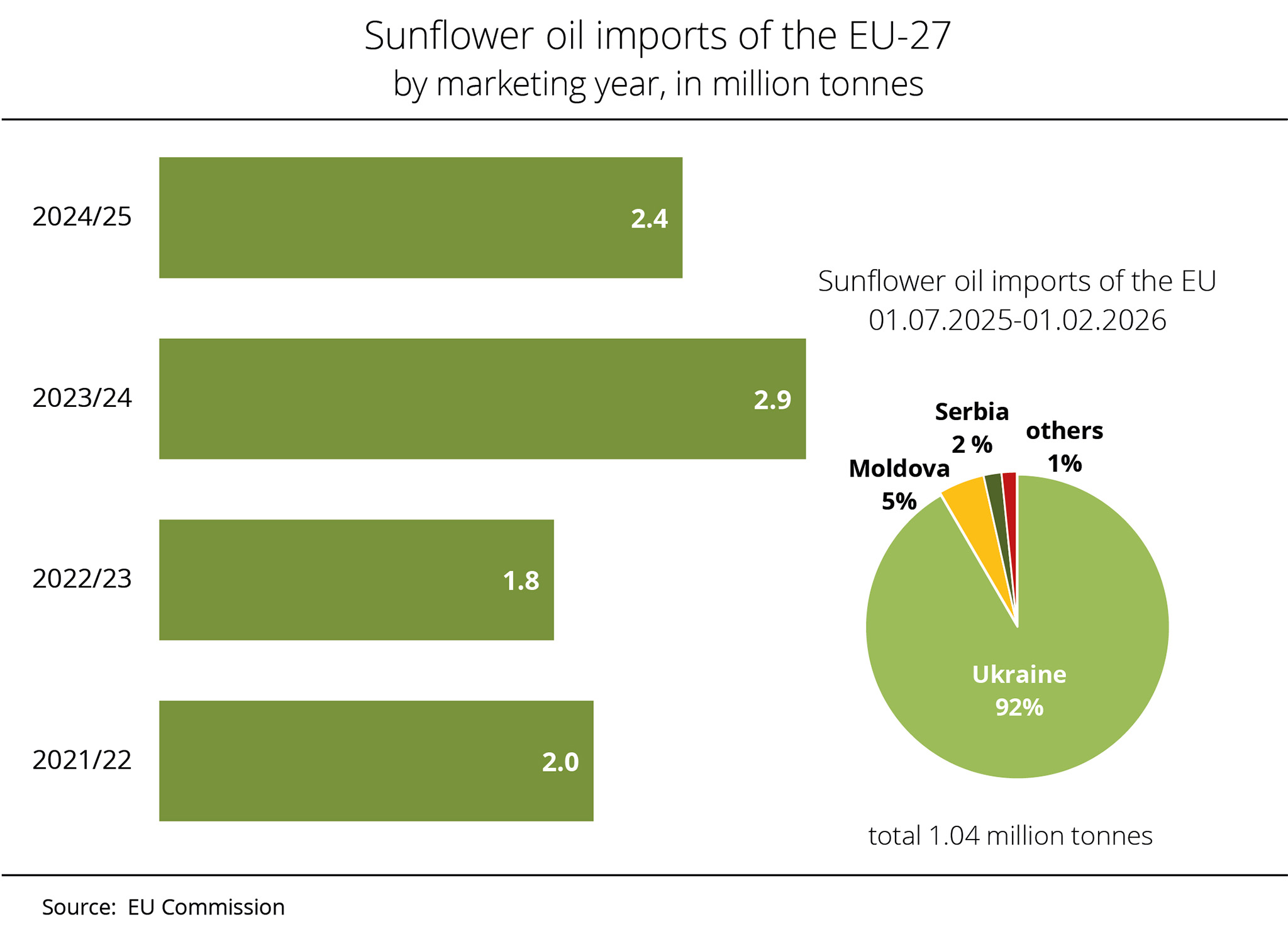 According to the European Commission, Ukraine remains by far the most important supplier of sunflower oil to the EU-27. At the same time, feedstock supply in Ukraine is below last year's level.