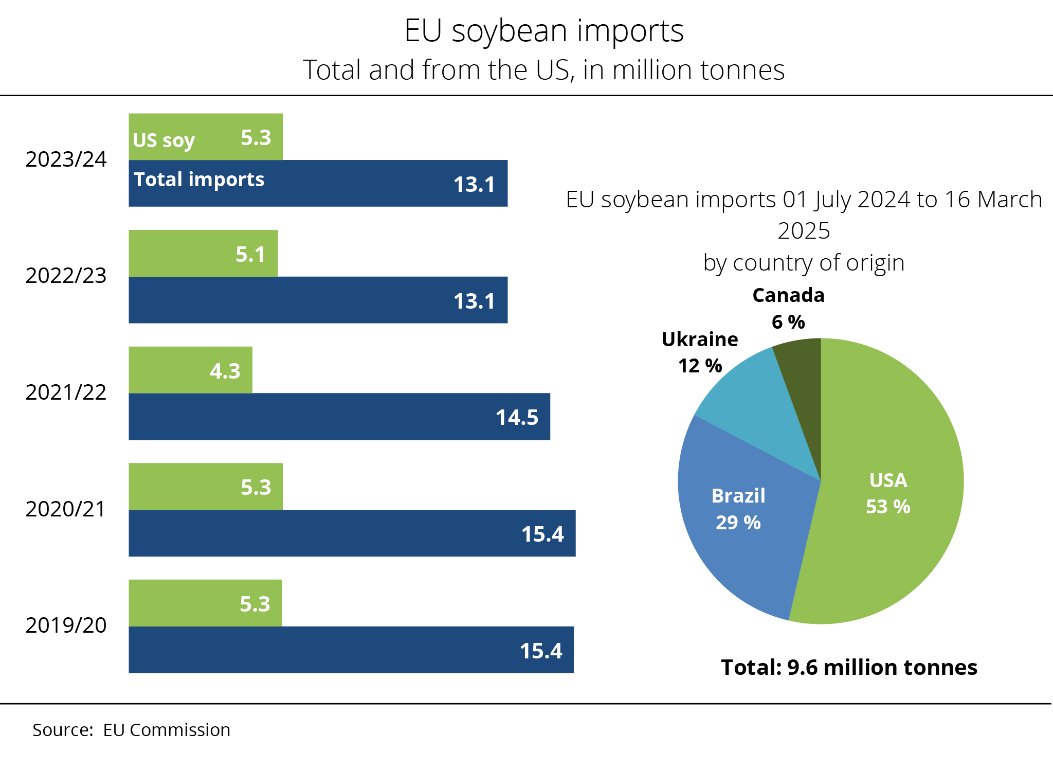 Soybeans are the most important oilseed crop imported into the European Union, ahead of rapeseed. Between July 2025 and mid-March 2026, the EU imported the lowest soybean volume in three years.