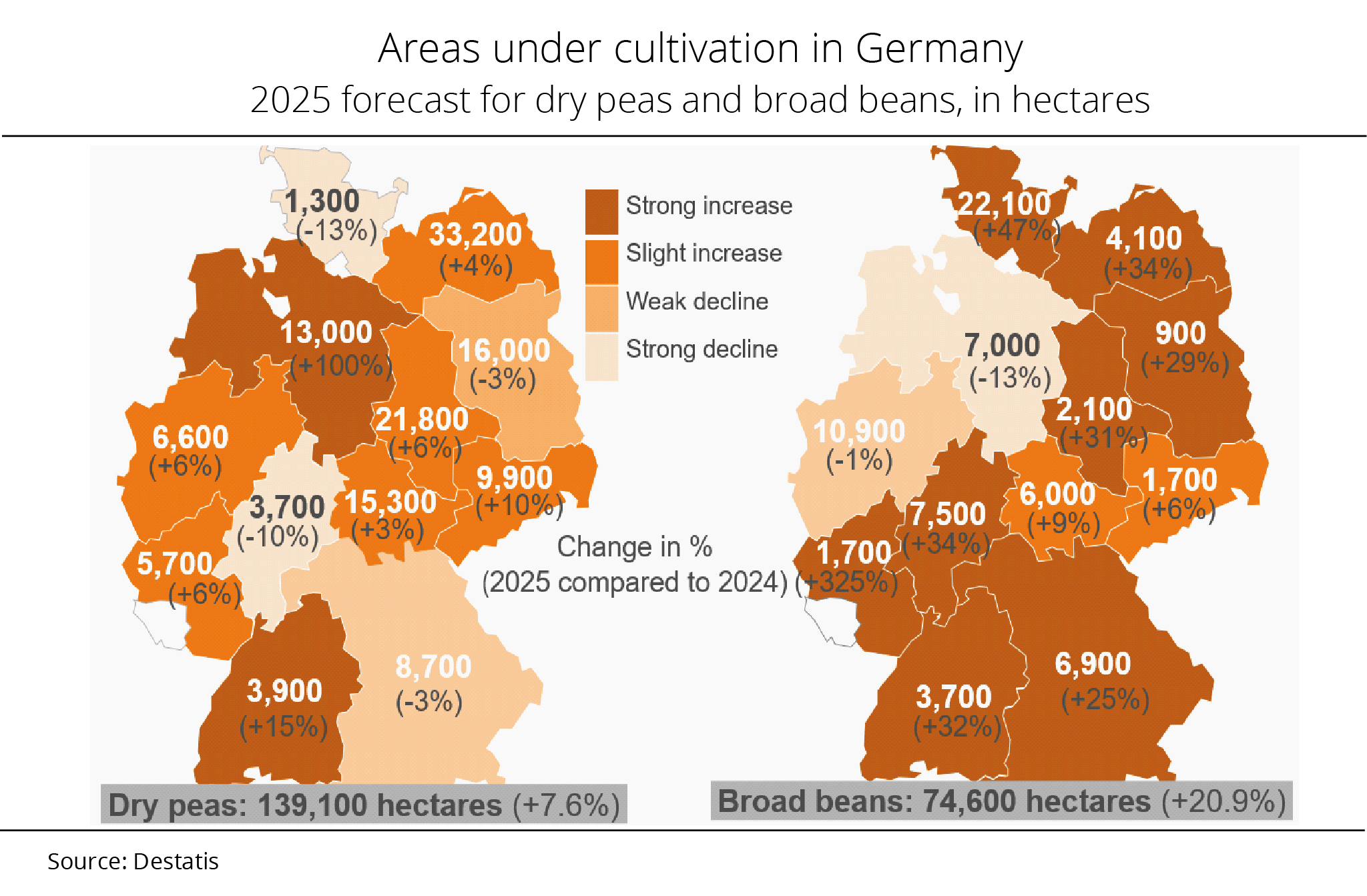 The 2025 harvest in the EU, the third most important global dry pea producer, is estimated at 2.4 million tonnes, with yield increases offsetting the decline in production area. In Germany, France and Lithuania in particular, farms recorded more than satisfactory results.