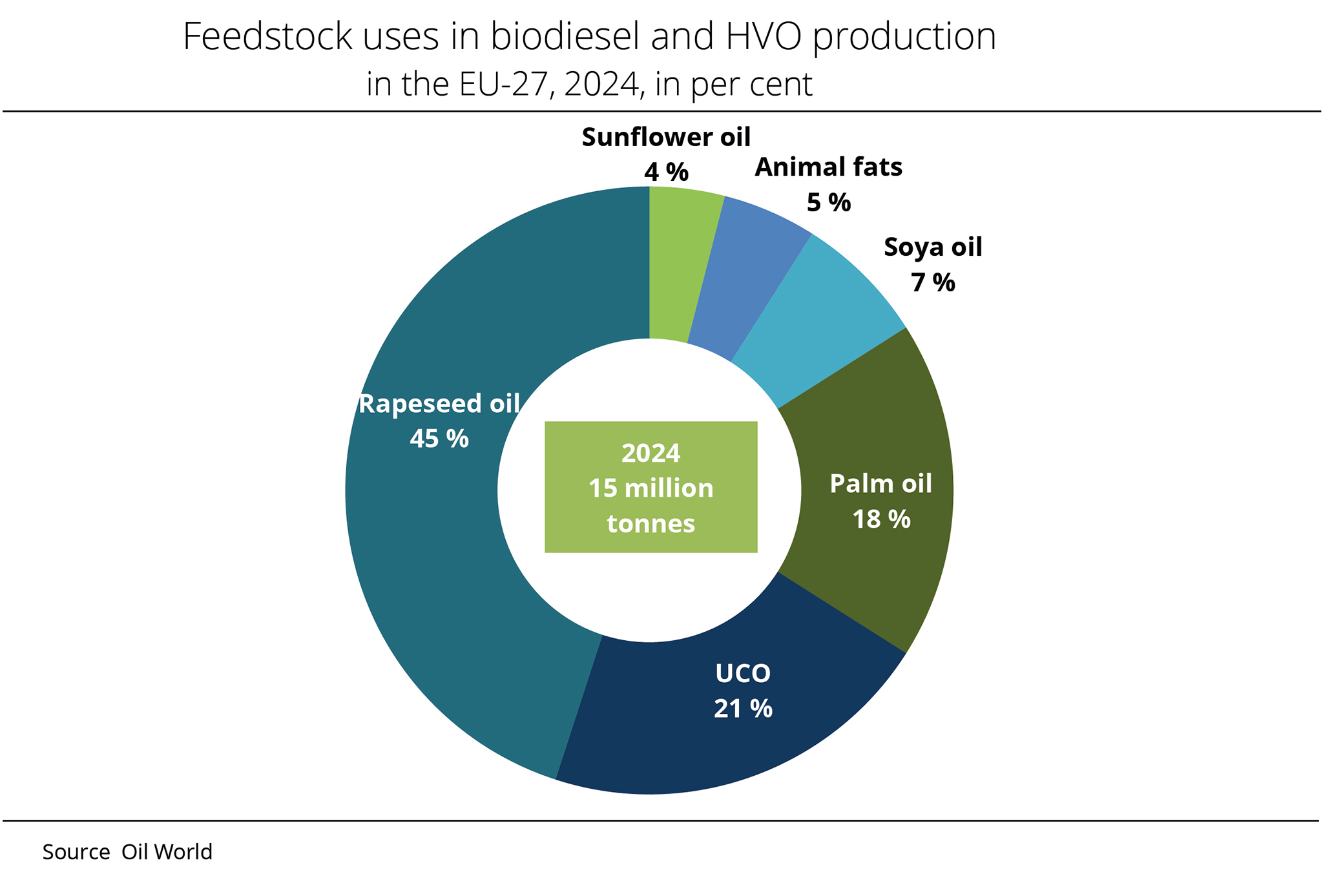 Since February 2025, the EU-27 has imposed duties on biodiesel imports from China, ranging from 10 to 35.6 per cent, depending on the feedstock base. Nevertheless, pressure from Chinese imports remains strong.