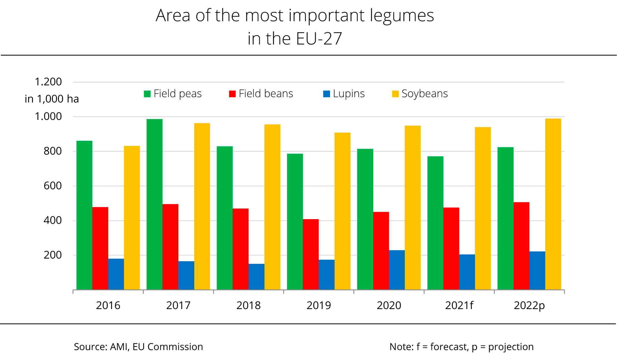 Based on a 6 per cent expansion of legume production area to 2.5 million hectares, the EU Commission expects the 2022 legume harvest in the EU-27 to reach around 6.9 million tonnes. This would translate to a 16 per cent rise year-on-year. The extent of production area would hit a 5-year high.