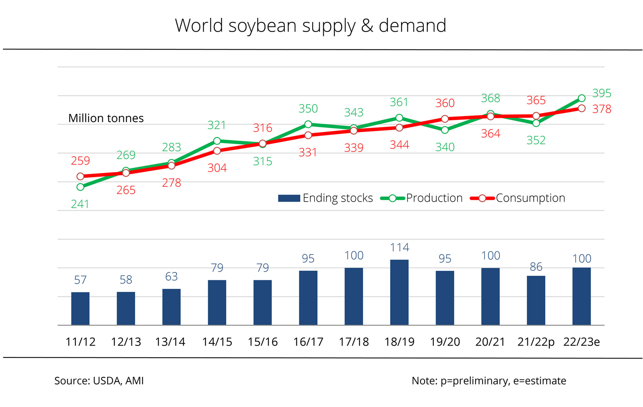 In Argentina, the world's third largest producer, the harvest is expected to rise slightly to 46.5 million tonnes (from 46.2 million tonnes the previous year), following two years of decline. According to the latest USDA estimate, India also anticipates an increase in harvest of around 1.5 million tonnes year-on-year to 11.9 million tonnes.