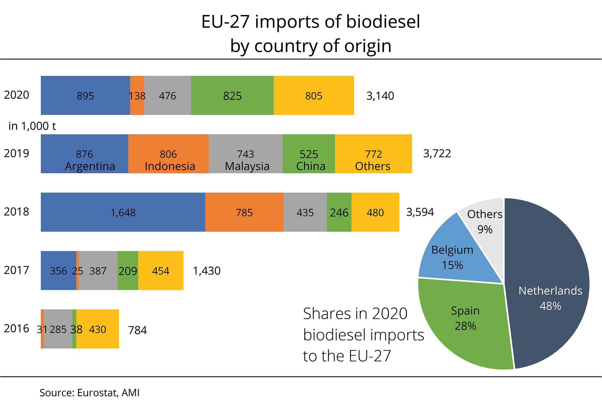 Nearly half the biodiesel imports were made through the Netherlands as the trading hub. Around one third of biodiesel imports went directly to Spain and15 per cent to Belgium.