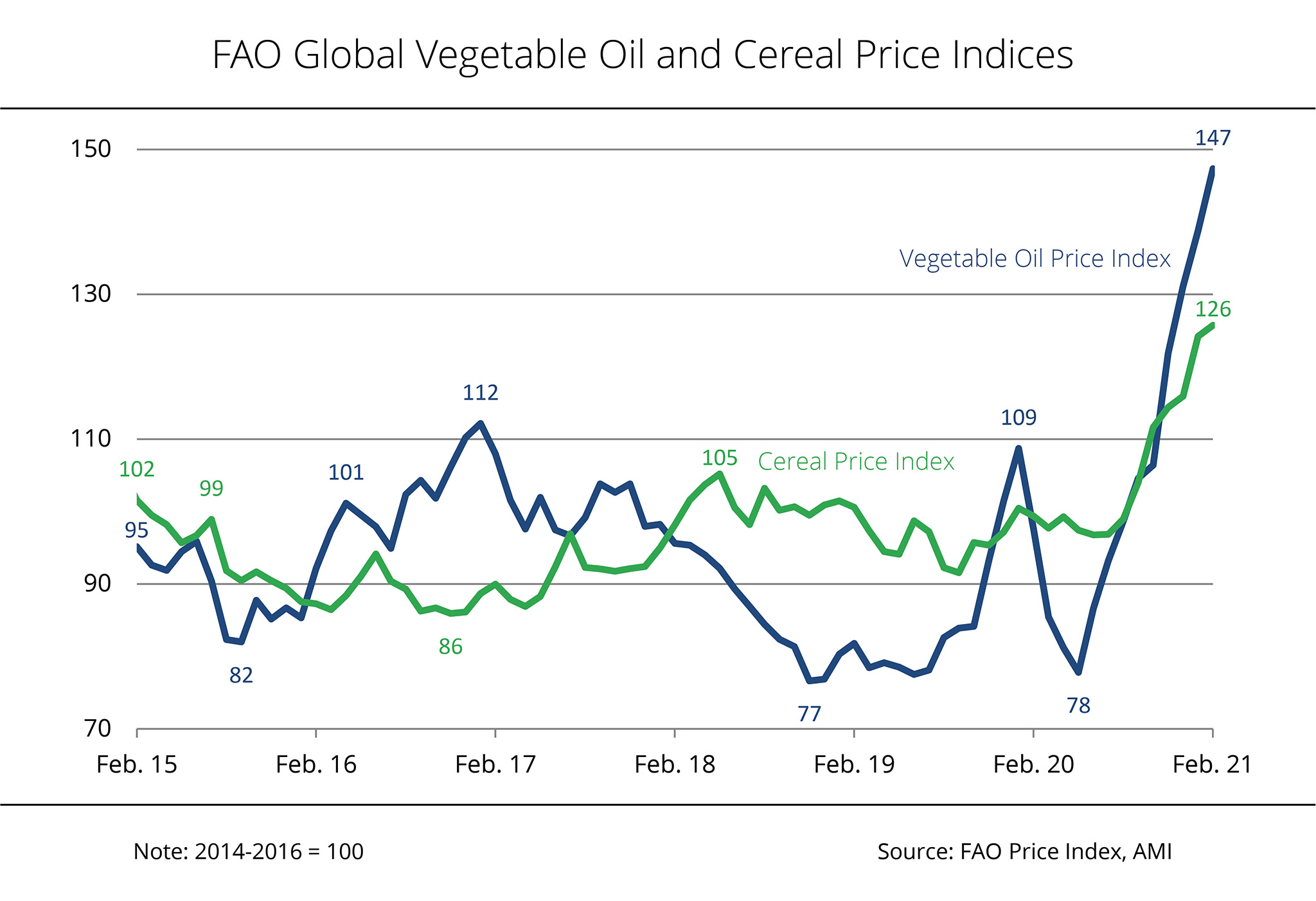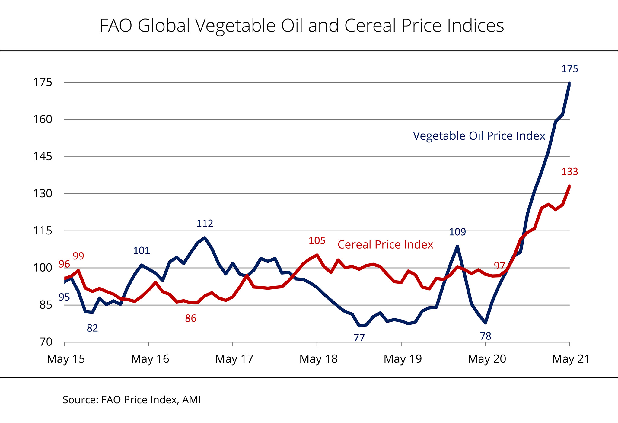 FAO global vegetable oil and cereal price indices rose sharply
