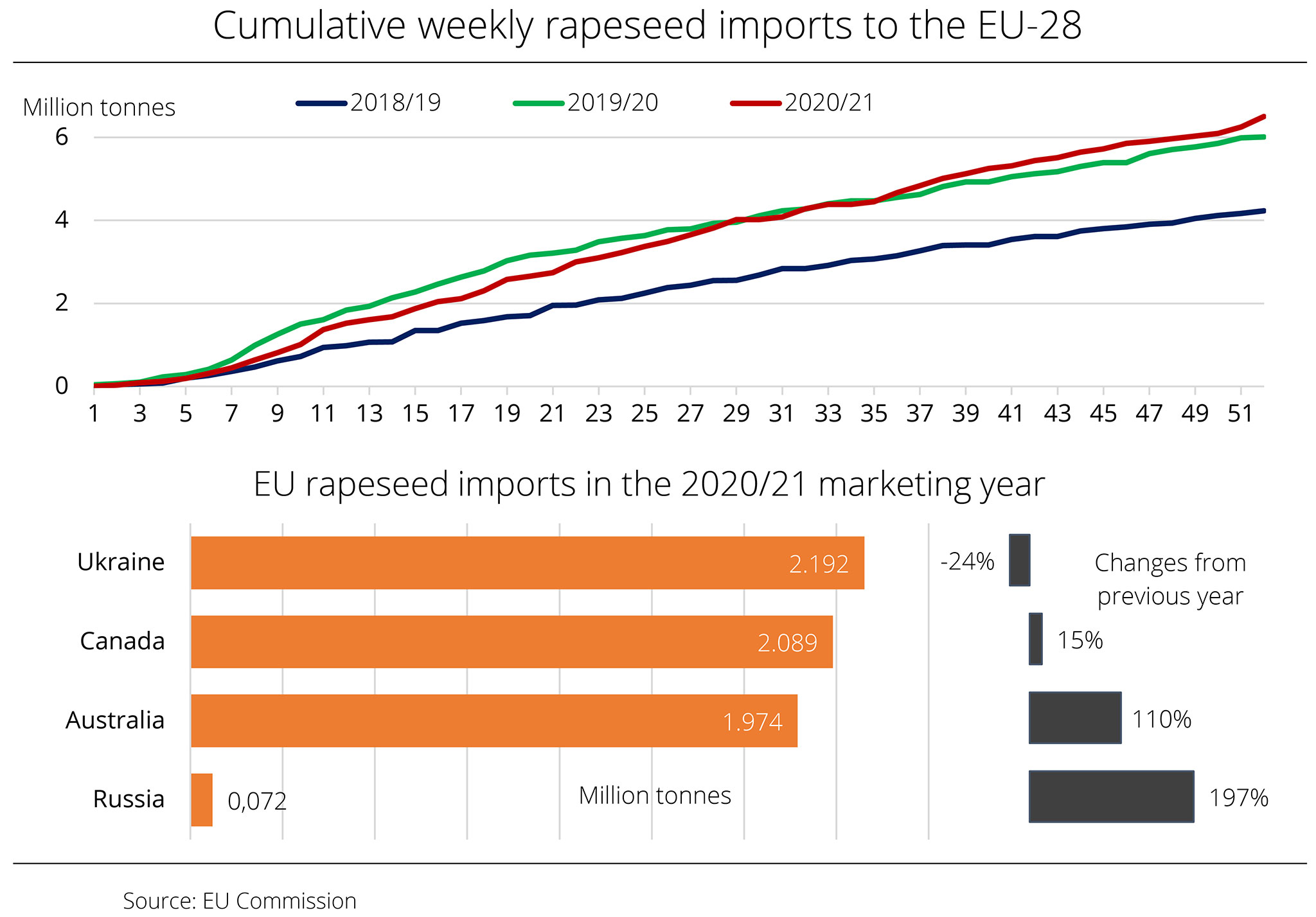 This year's rapeseed harvest was larger than that of 2020. For this reason, the EU-27 has needed fewer imports from third countries to date.