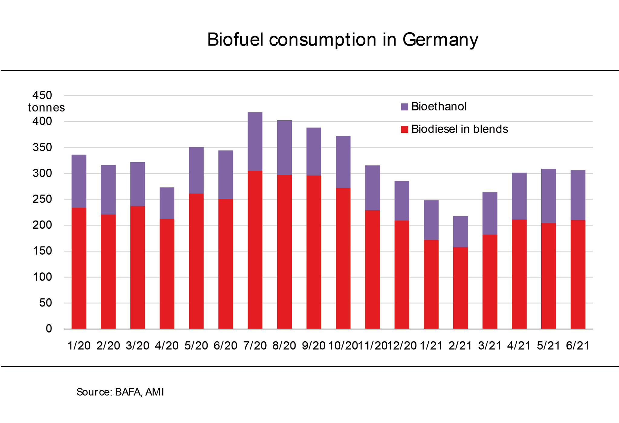 According to investigations conducted by Agrarmarkt Informations-Gesellschaft (mbH), larger import volumes also came from Belgium, Malaysia and Poland. The growth in imports from France is especially noticeable. At 74,000 tonnes, the country more than tripled its biodiesel shipments to the German market year-on-year. Whereas imports from the Netherlands declined approximately 2 per cent to 700,000 tonnes, those from Malaysia dropped around 9 per cent to 139,000 tonnes. Germany supplied a record quantity of 955,000 tonnes to the Netherlands in 2020. This translates to a 12 per cent rise on the year. German shipments to Belgium accounted for 15 percent of total exports in 2020. The country imported around 356,000 tonnes. This was up around 35 per cent year-on-year.