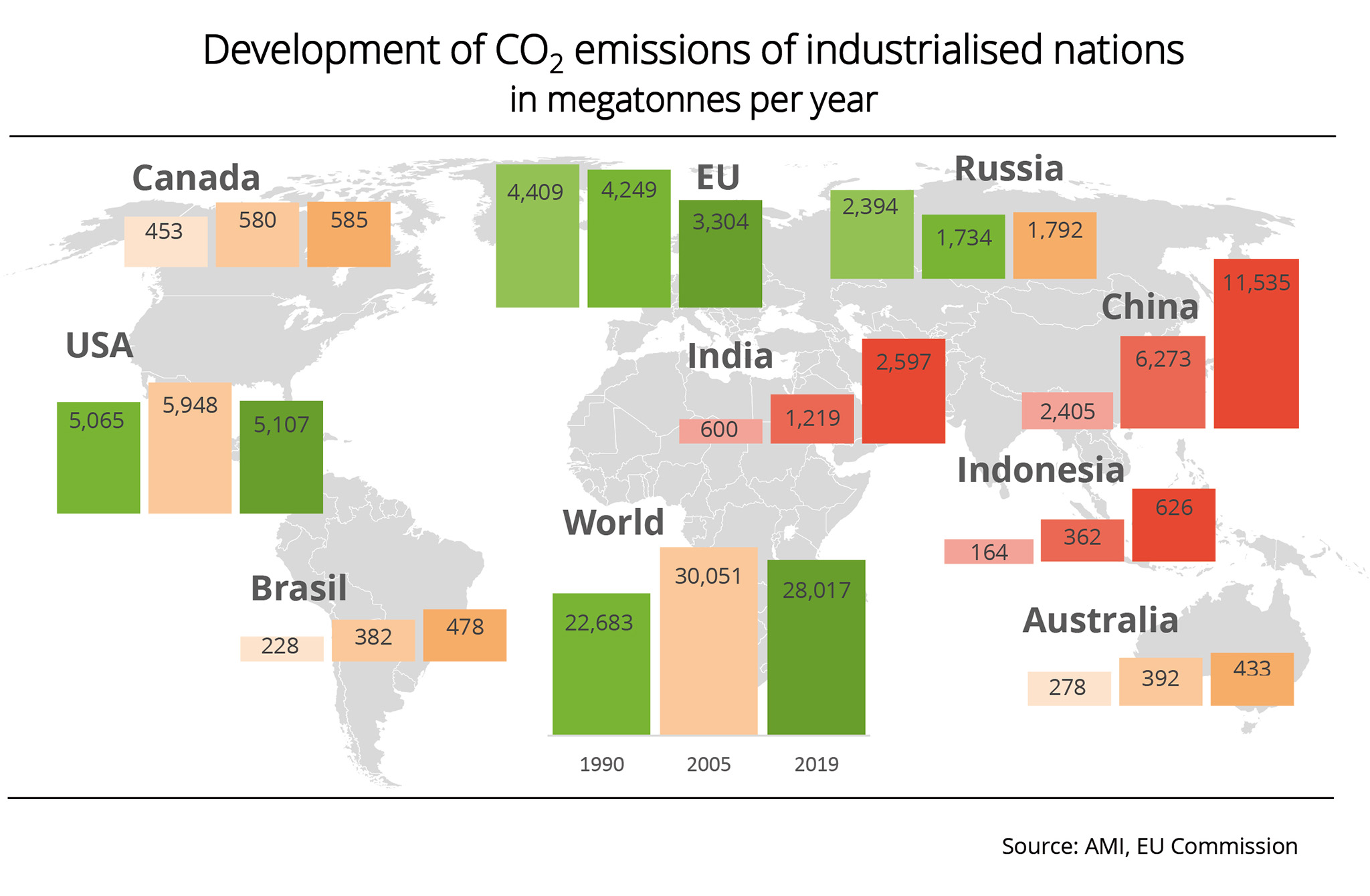 CO2 emissions declined only in a few countries