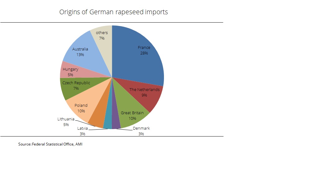 According to information published by the Bundesanstalt für Landwirtschaft (the German Federal Office for Agriculture and Food), German oil mills processed around 8.4 million tonnes of rapeseed in the 2012 calendar year. Of this rapeseed quantity, 5.2 million tonnes were produced in Germany. This was a slight increase over 2011, following extensive imports because of a meagre domestic crop. France alone accounted for more than one third of the 2.4 million tonnes of rapeseed from EU countries. Large quantities of rapeseed also came from Great Britain, Hungary, the Czech Republic and Poland. However, imports from the Netherlands (425,000 tonnes) were probably from third-country production. The rapeseed was imported via the Dutch North Sea harbours and shipped on to Germany. The proportion of third-country rapeseed processed rose to 9%, the majority of which came from Australia. (AMI)