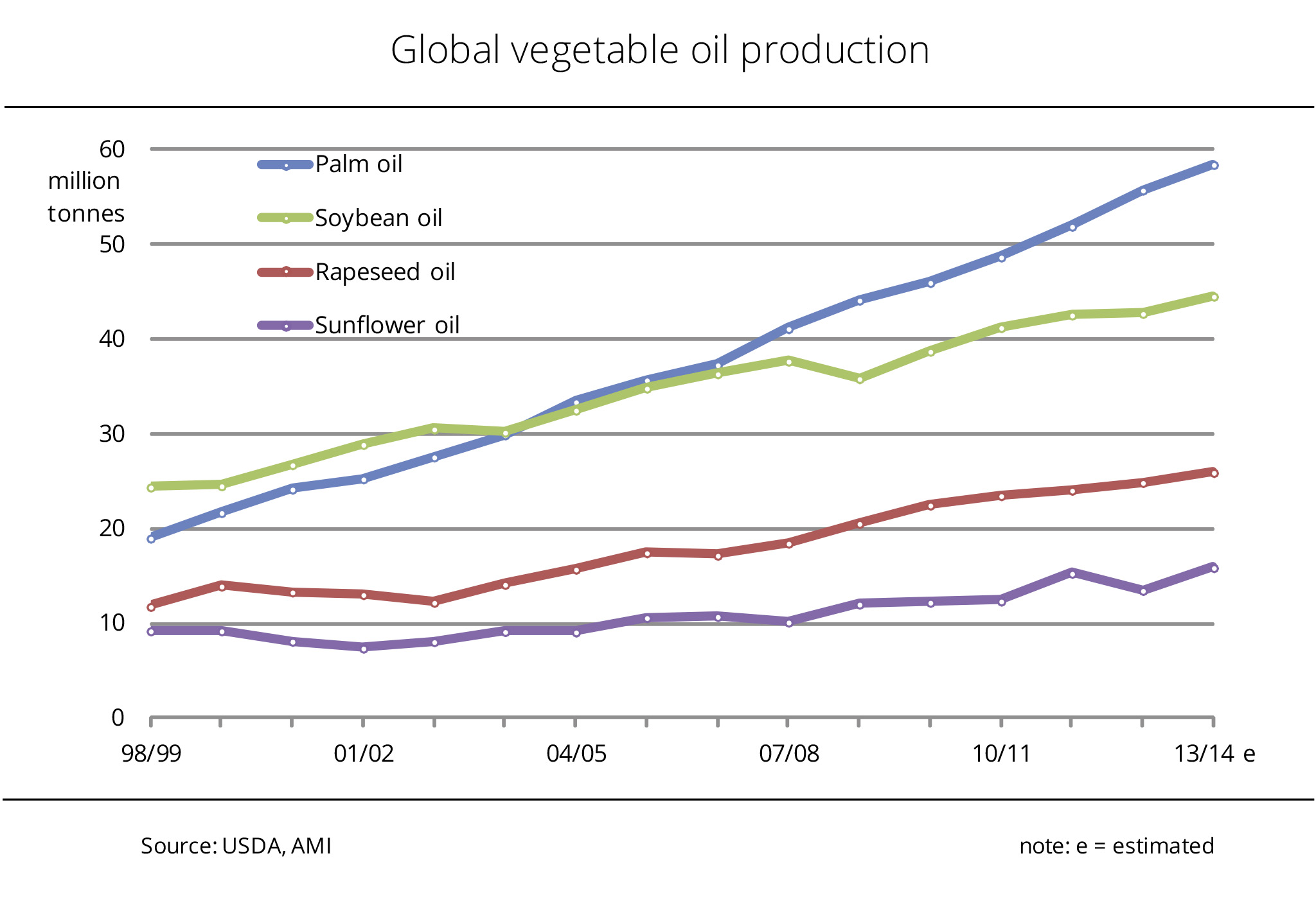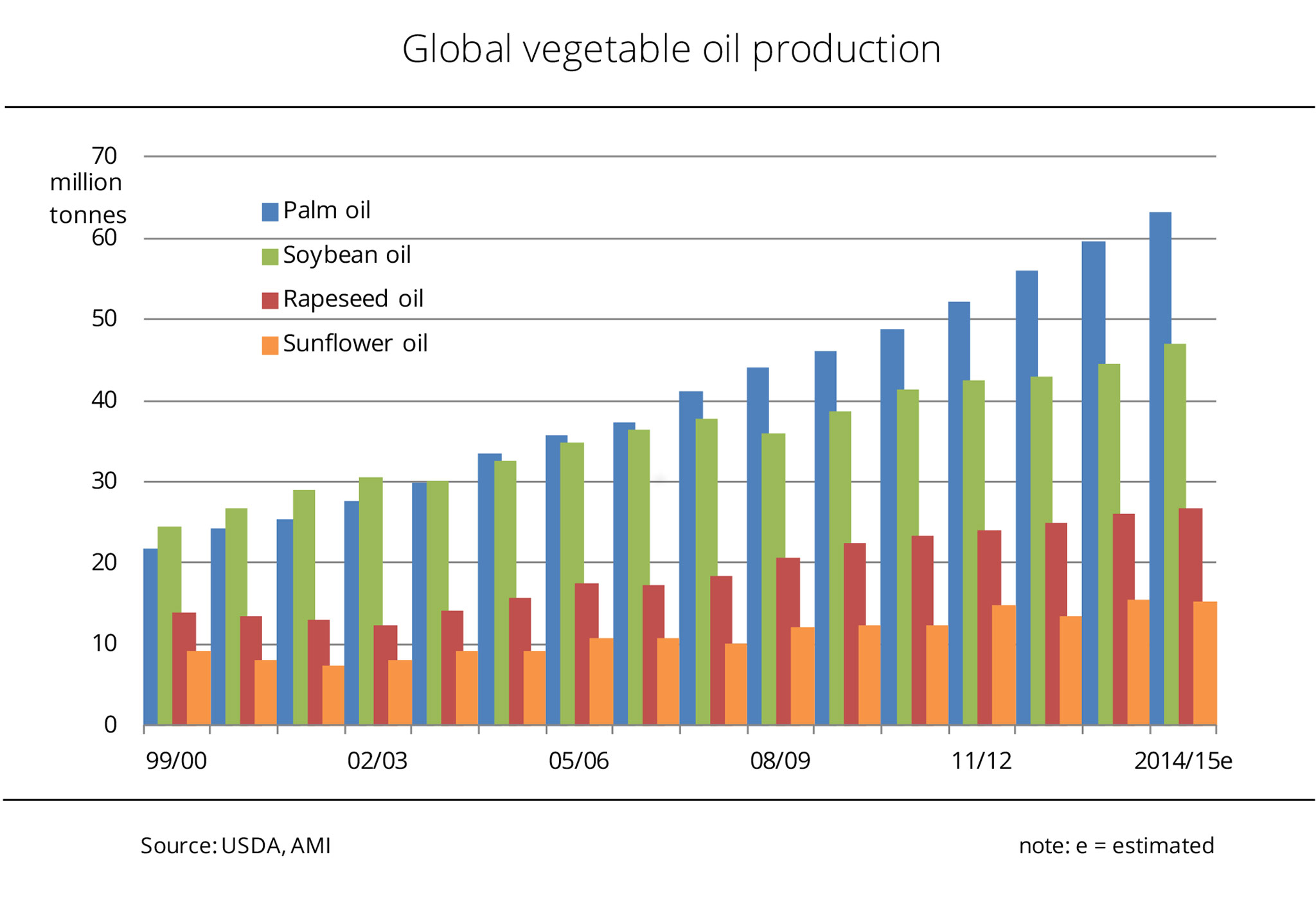 World production of vegetable oils increases – palm oil outpaces soybean oil