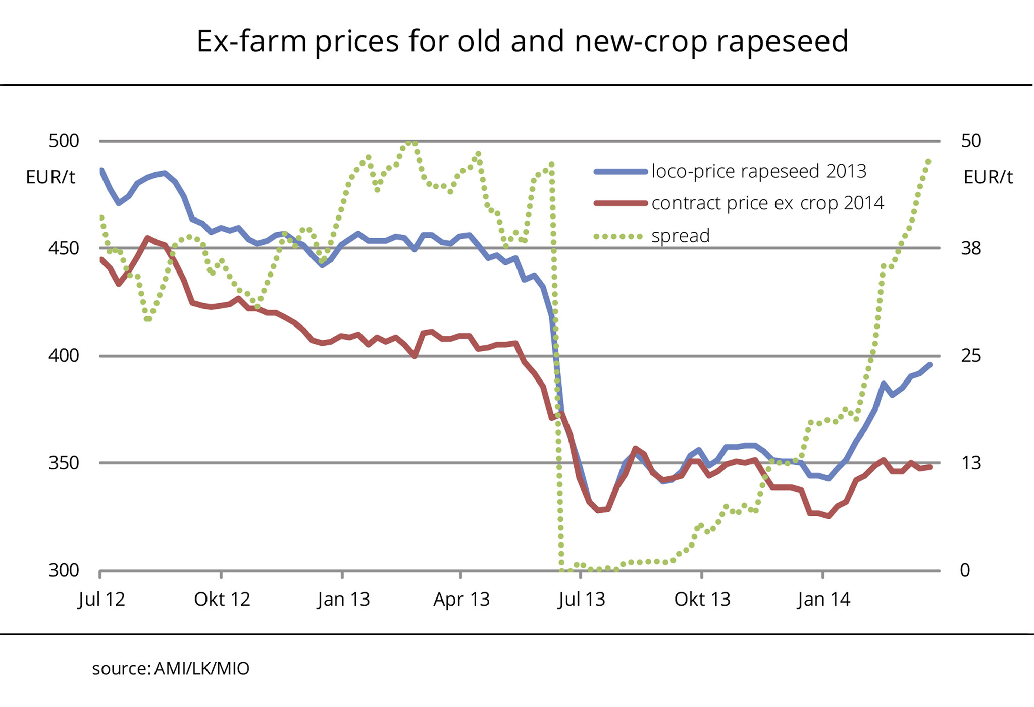 Rapeseed: Different price level, but same spread