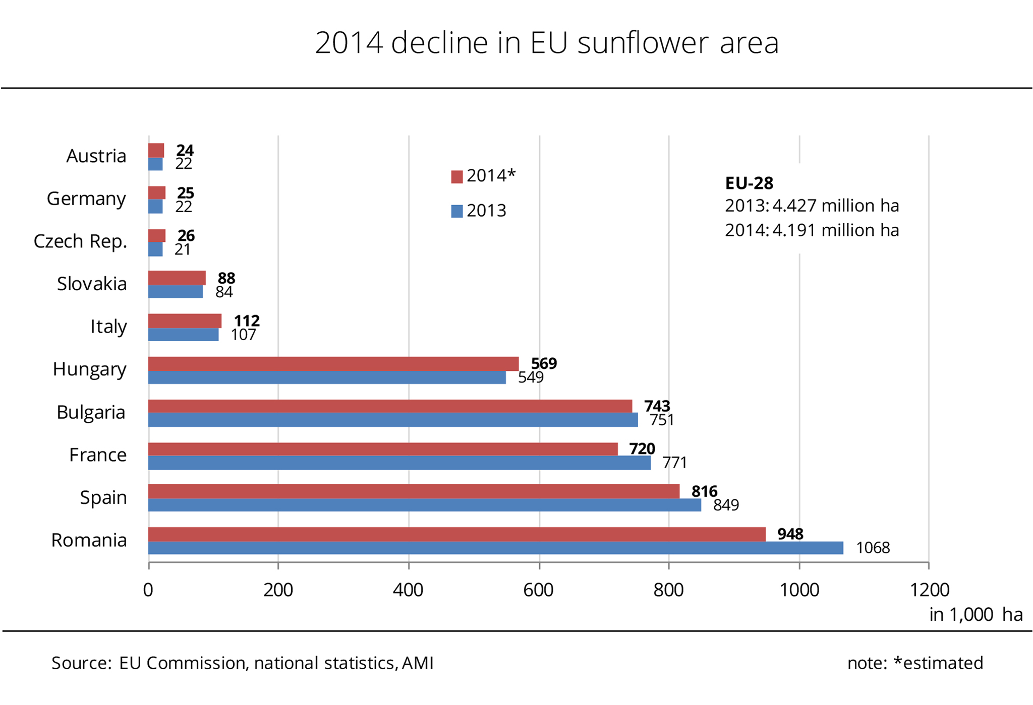 Fewer sunflowers in the EU-28