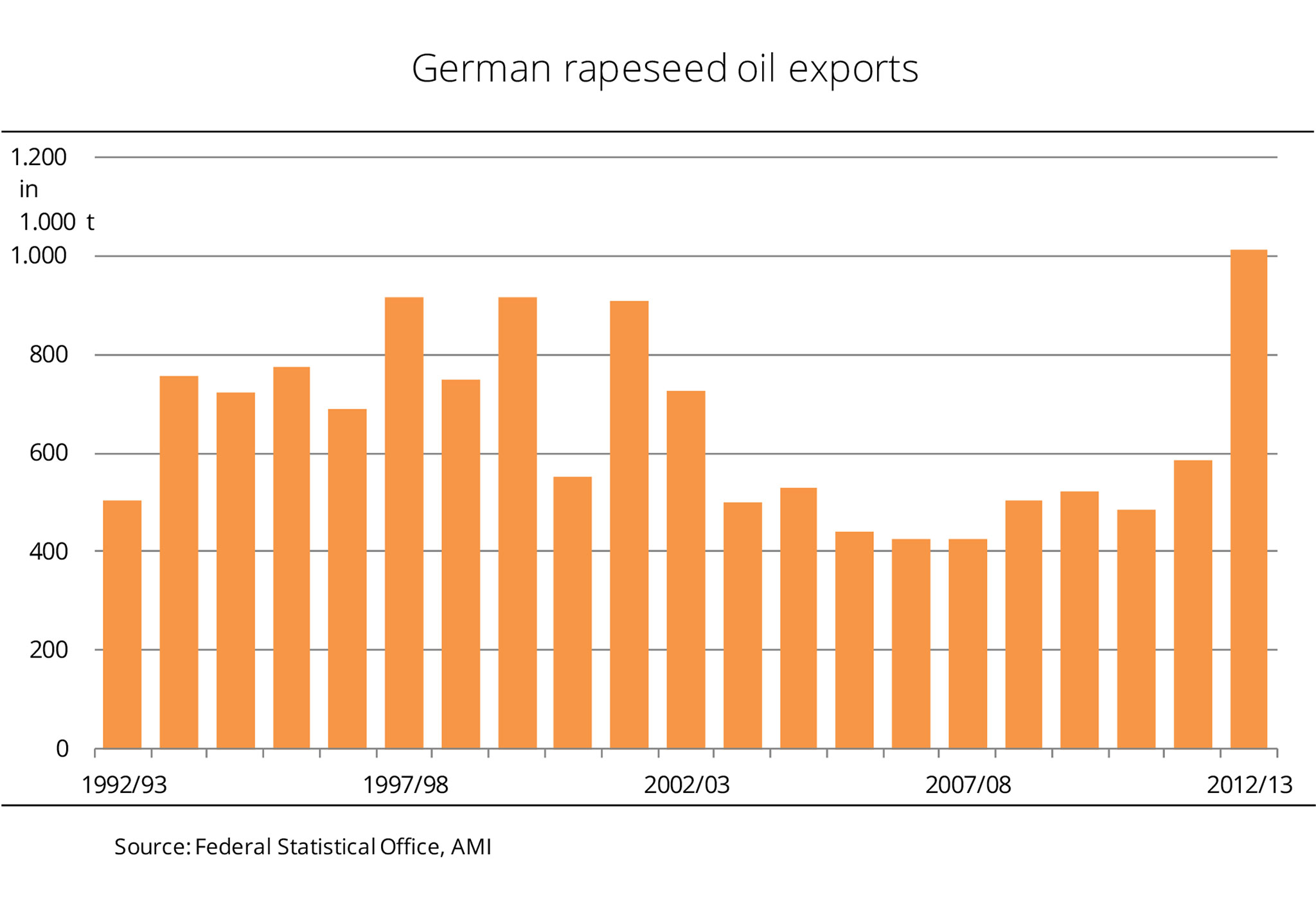 Germany had a record-breaking 2012/13 in rapeseed oil exports. Never before had the