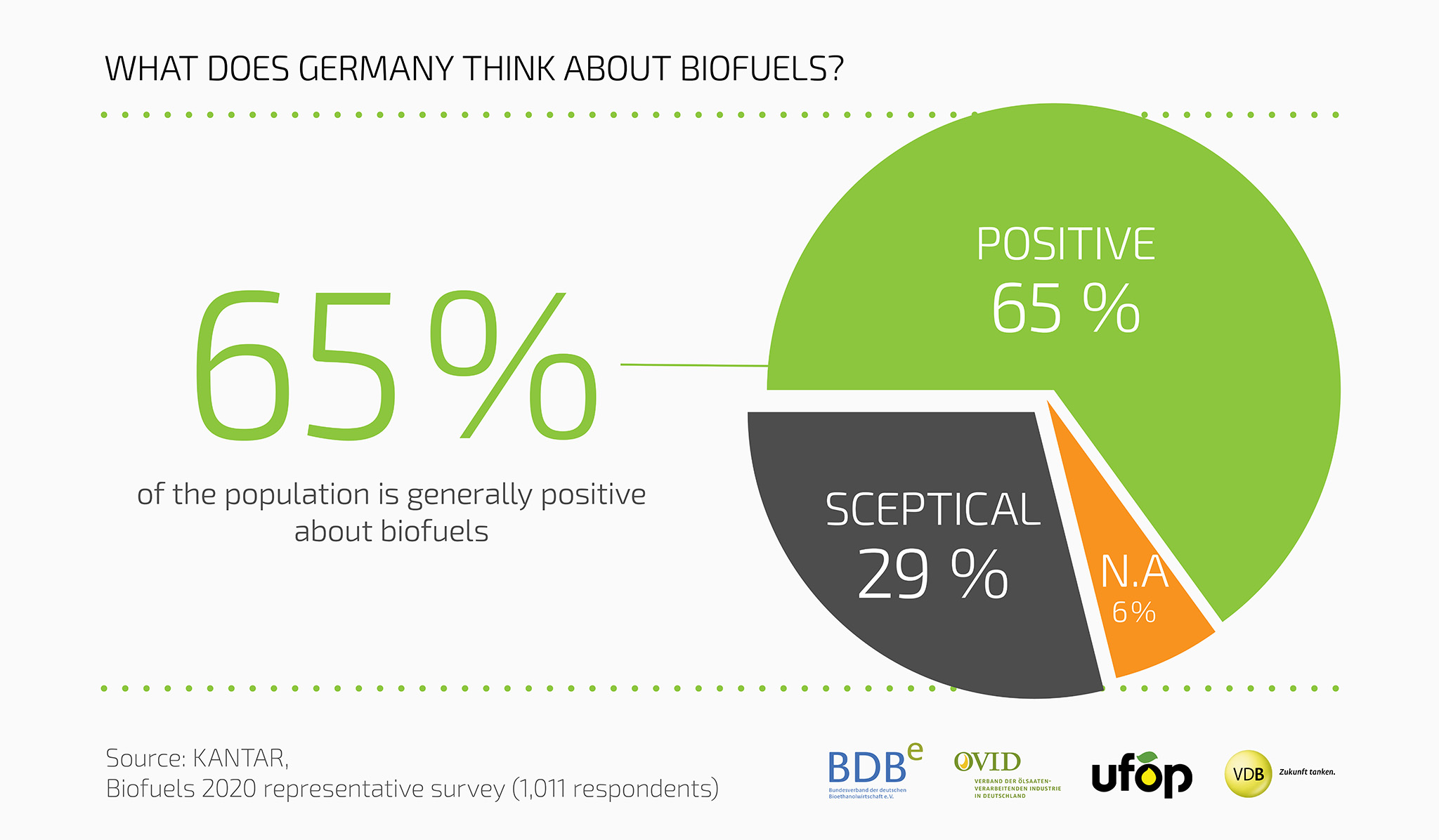 The representative survey was conducted by Kantar in August 2020 on behalf of the following four associations from the German biofuels industry: German Bioethanol Industry Association (BDBe), Association of the German Biofuels Industry (VDB), Association of the Oilseed Crushing and Oil Refining Industry in Germany (OVID) and Union for the Promotion of Oil and Protein Plants (UFOP).
