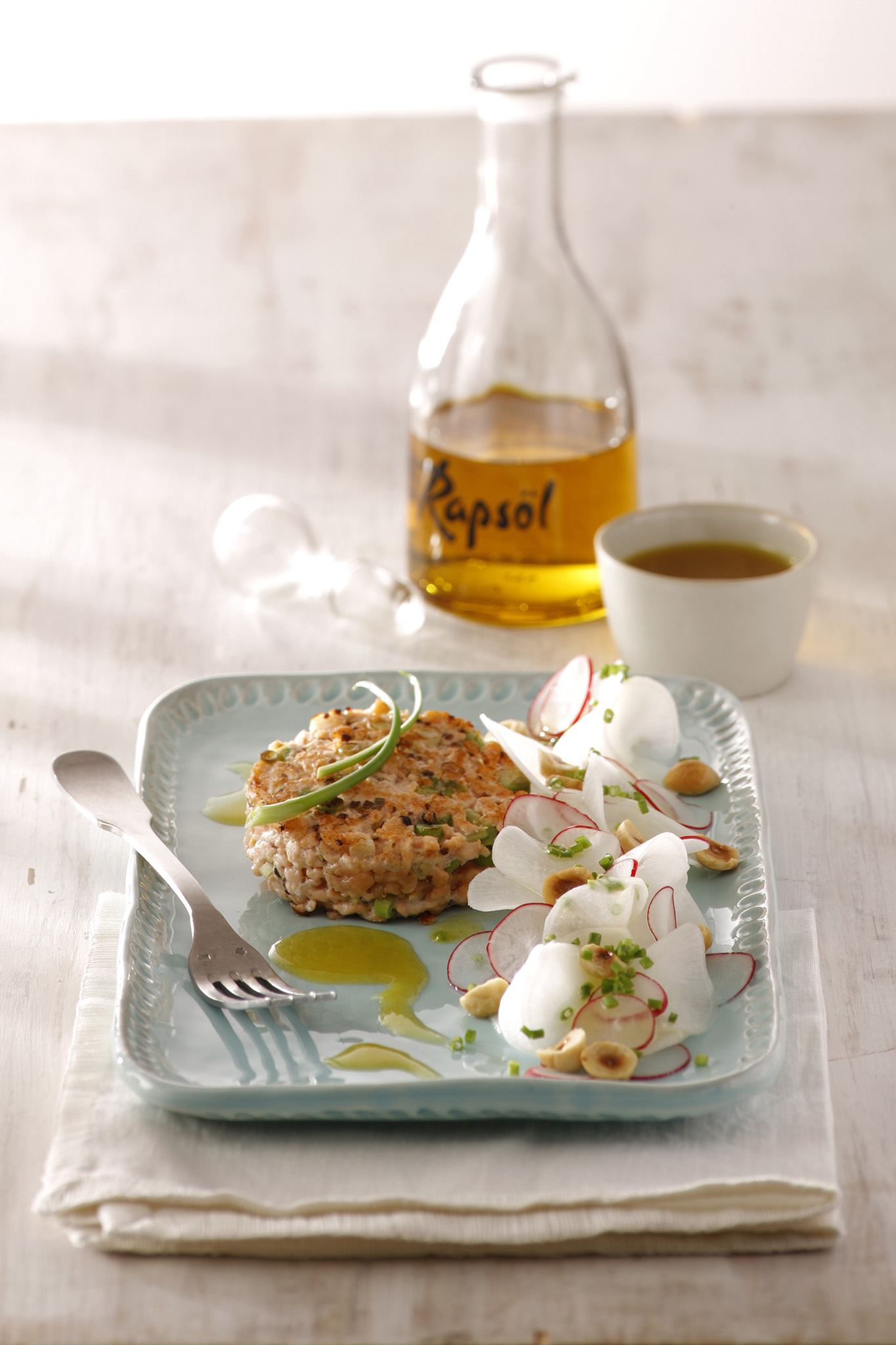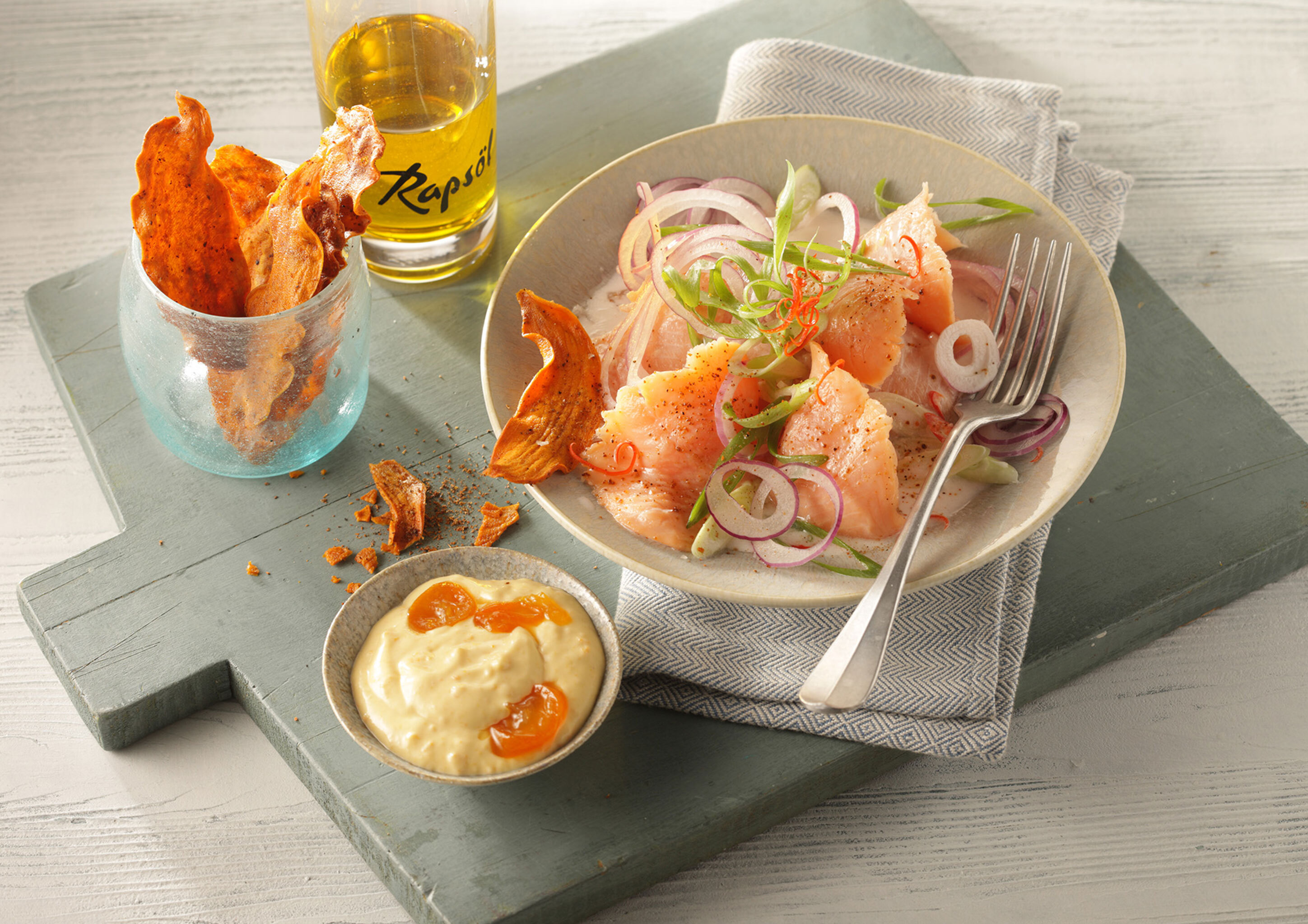 Rezeptidee April 2015: Angebratenes Lachsforellen-Tatar mit Senföl und Rettichsalat