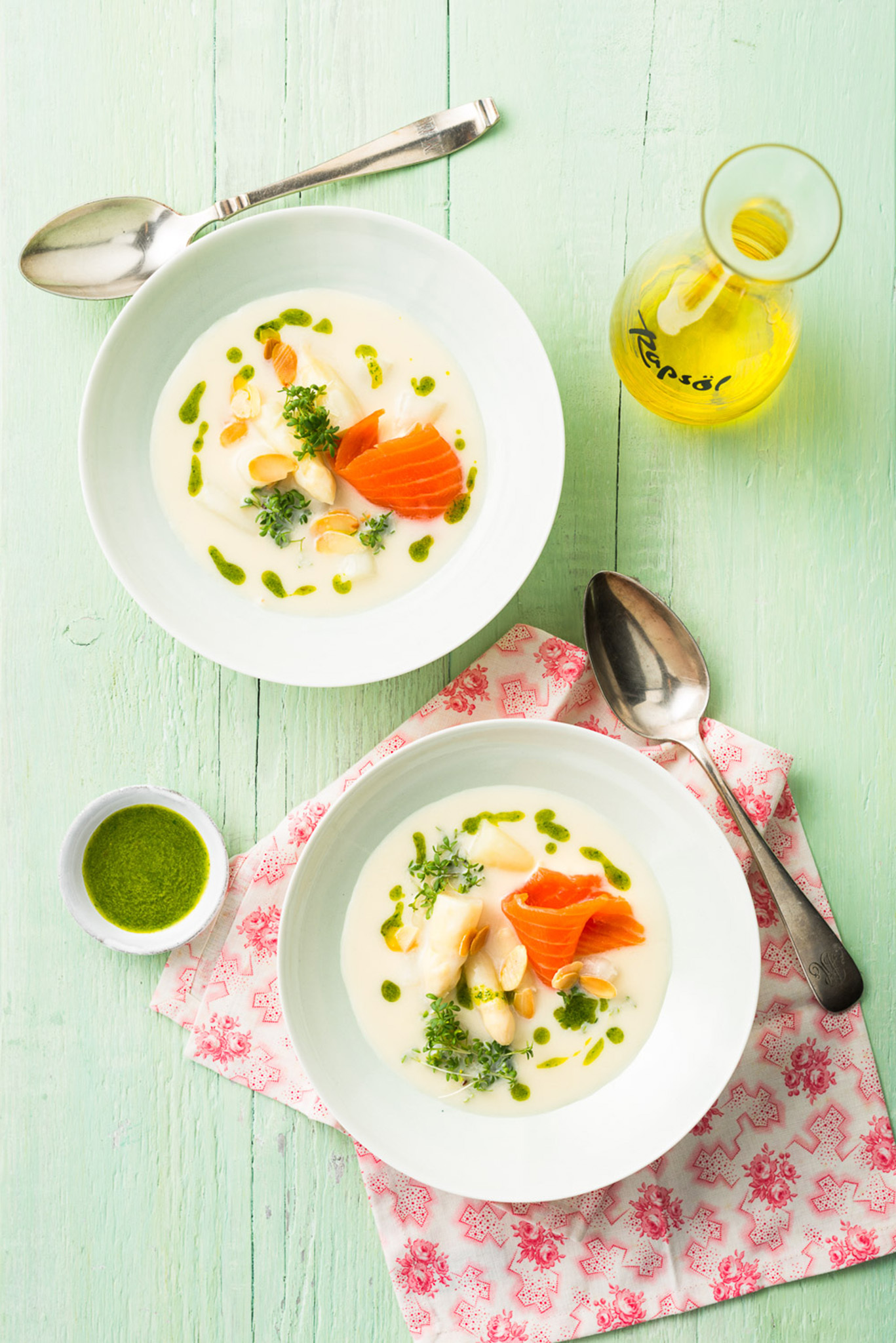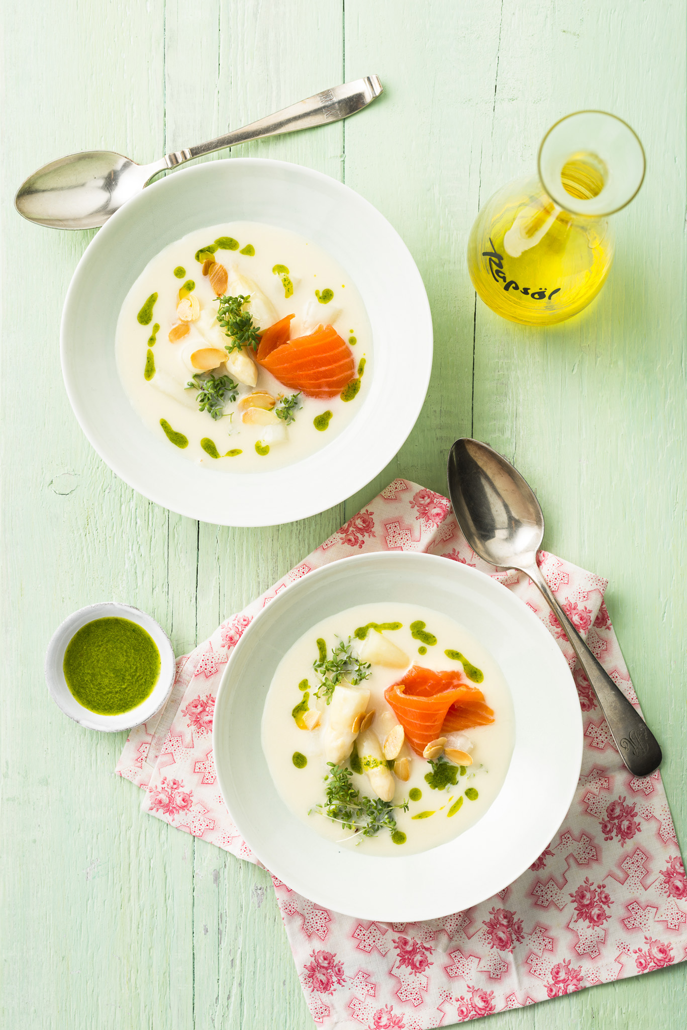 Rezeptidee Mai 2017: Spargelcremesuppe mit Kresseöl