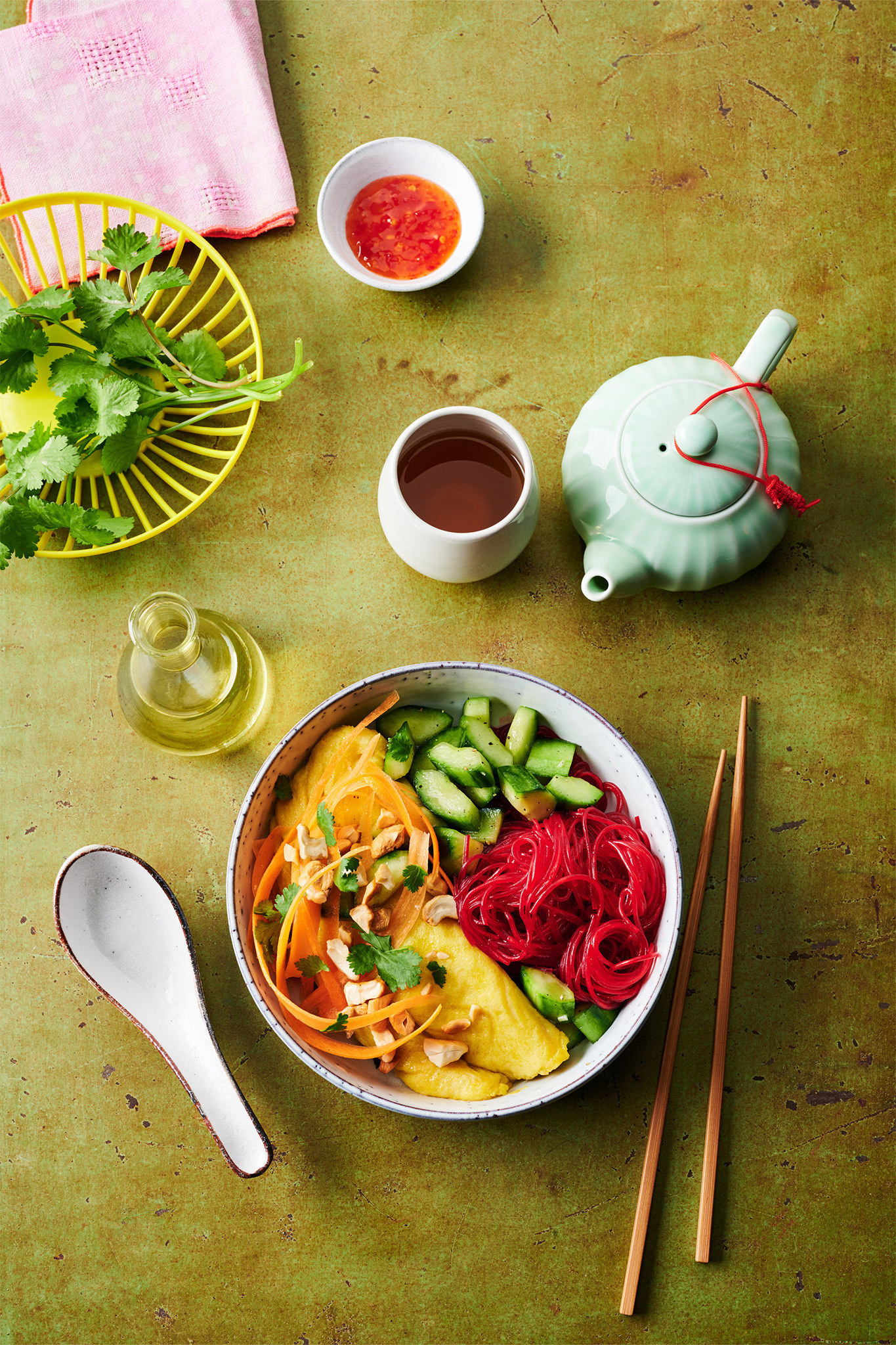 Rezeptidee Mai 2022: Rote-Bete-Glasnudel-Bowl mit Omelette