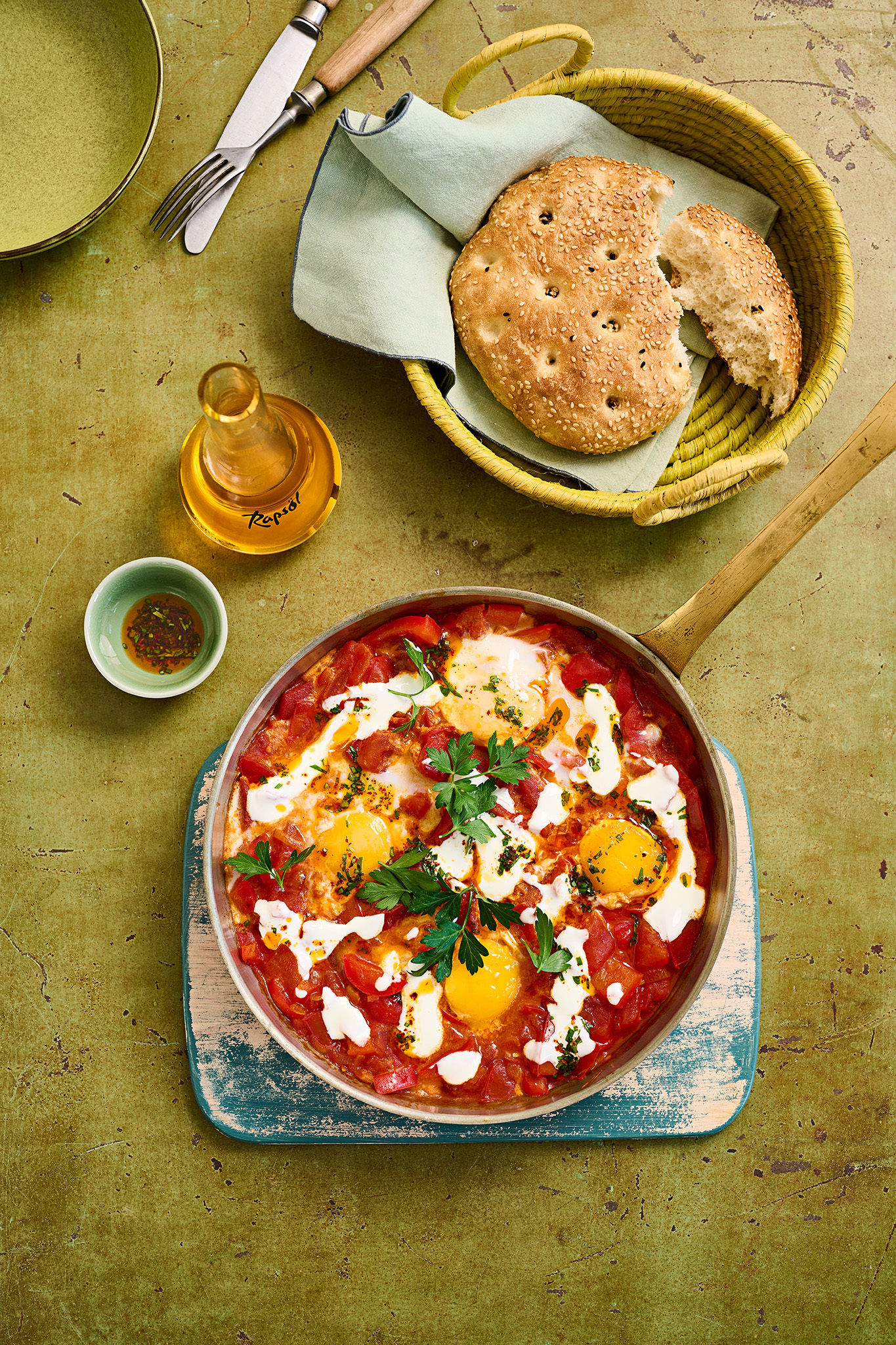 Rezeptidee Januar 2023: Shakshuka mit Petersilien-Chili-Rapsöl