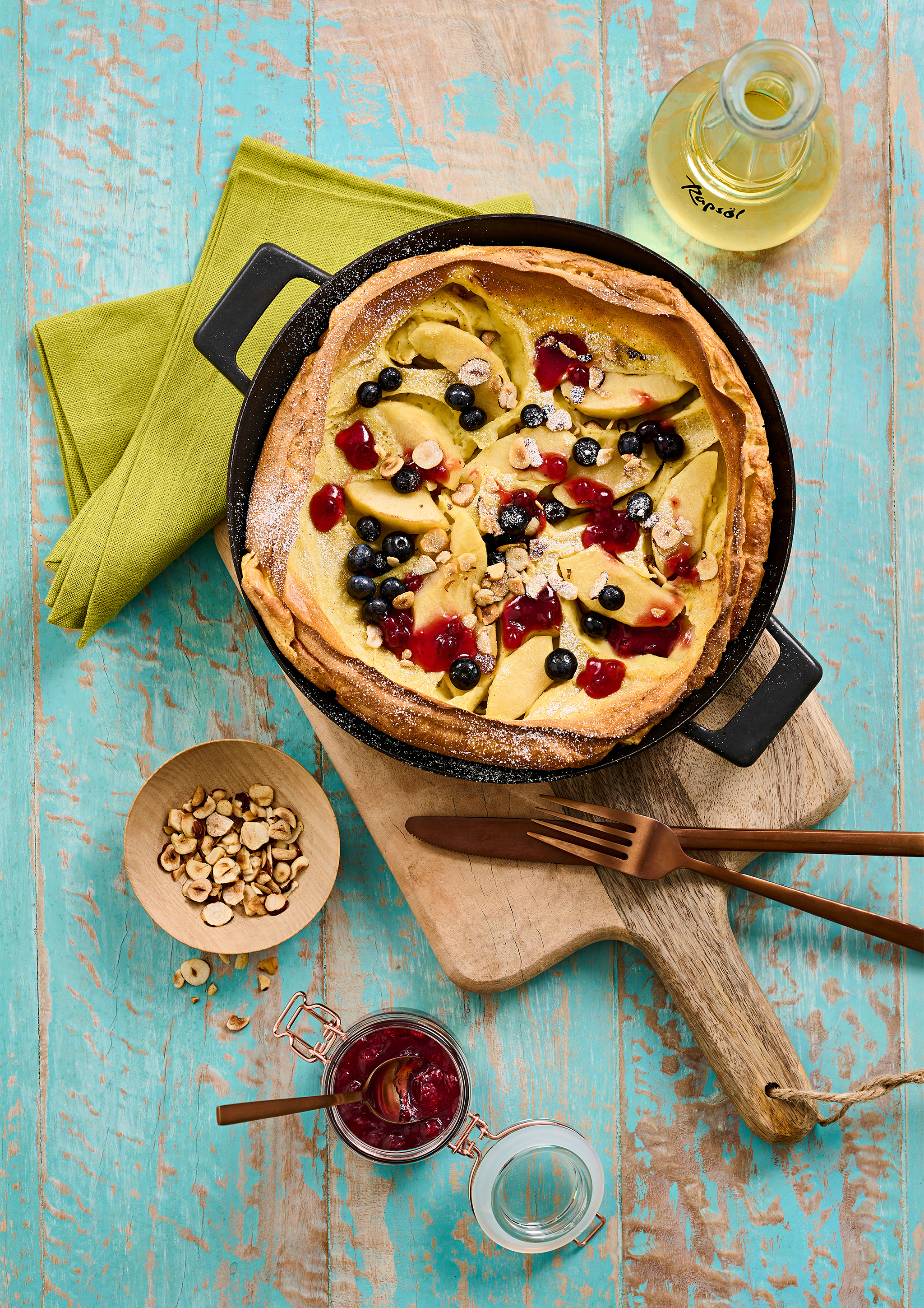 Rezeptidee April 2023: Dutch Baby – Backofenpfannkuchen mit Apfel und Preiselbeeren