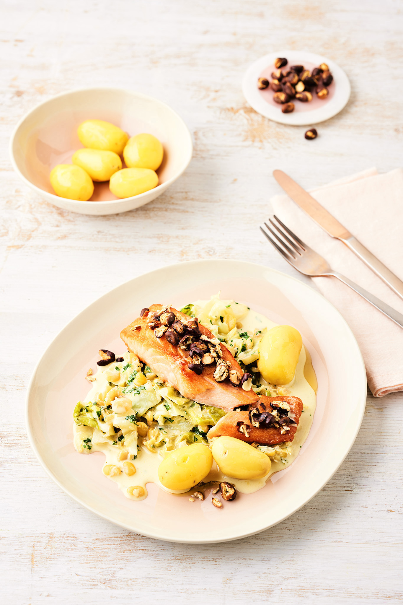 Rezeptidee Oktober 2023: Lachs auf Ackerbohnen-Rahmspitzkohl