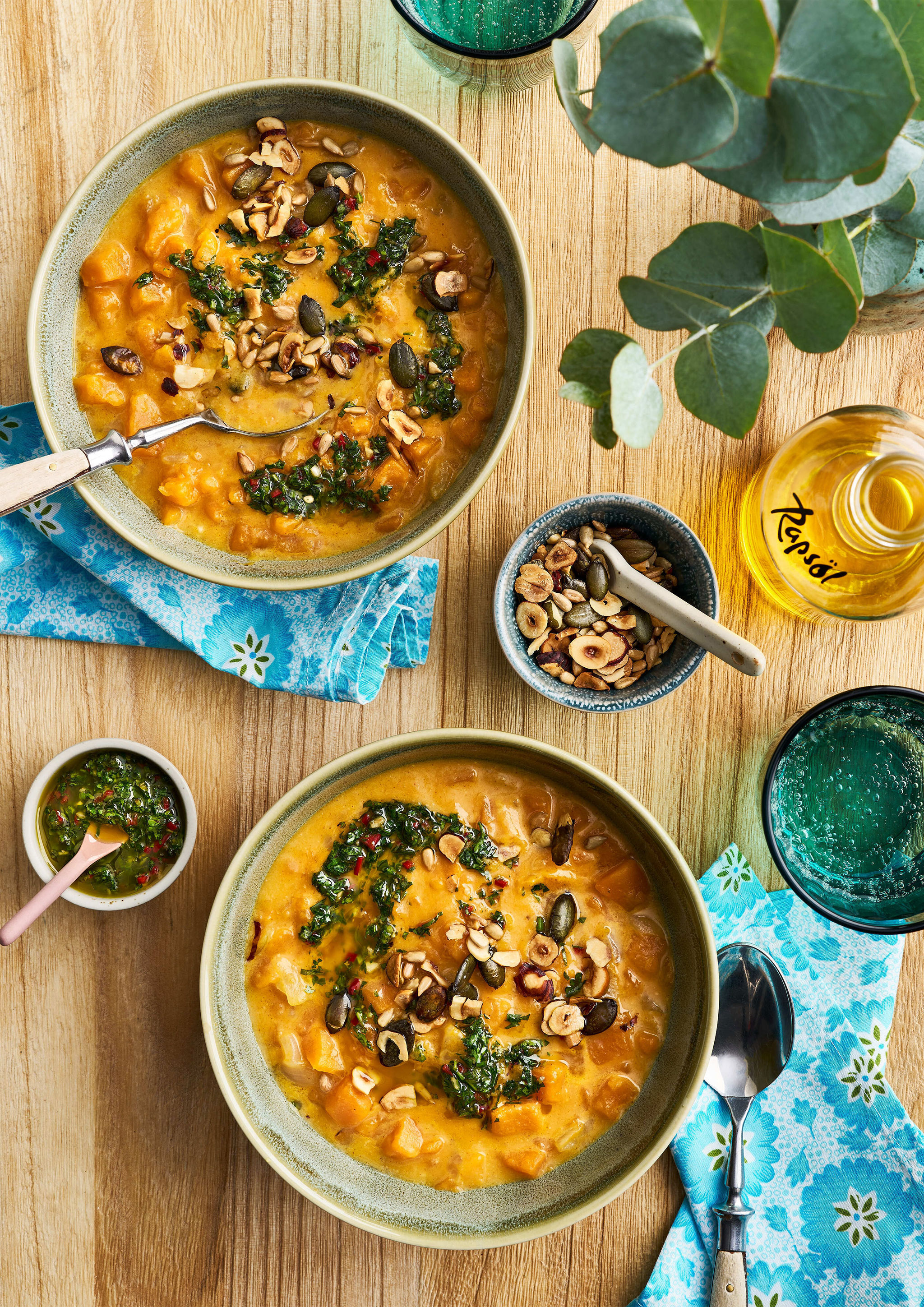 Rezeptidee Januar 2024: Süsskartoffelsuppe mit Rapsöl-Chimichurri und Nuss-Granola
