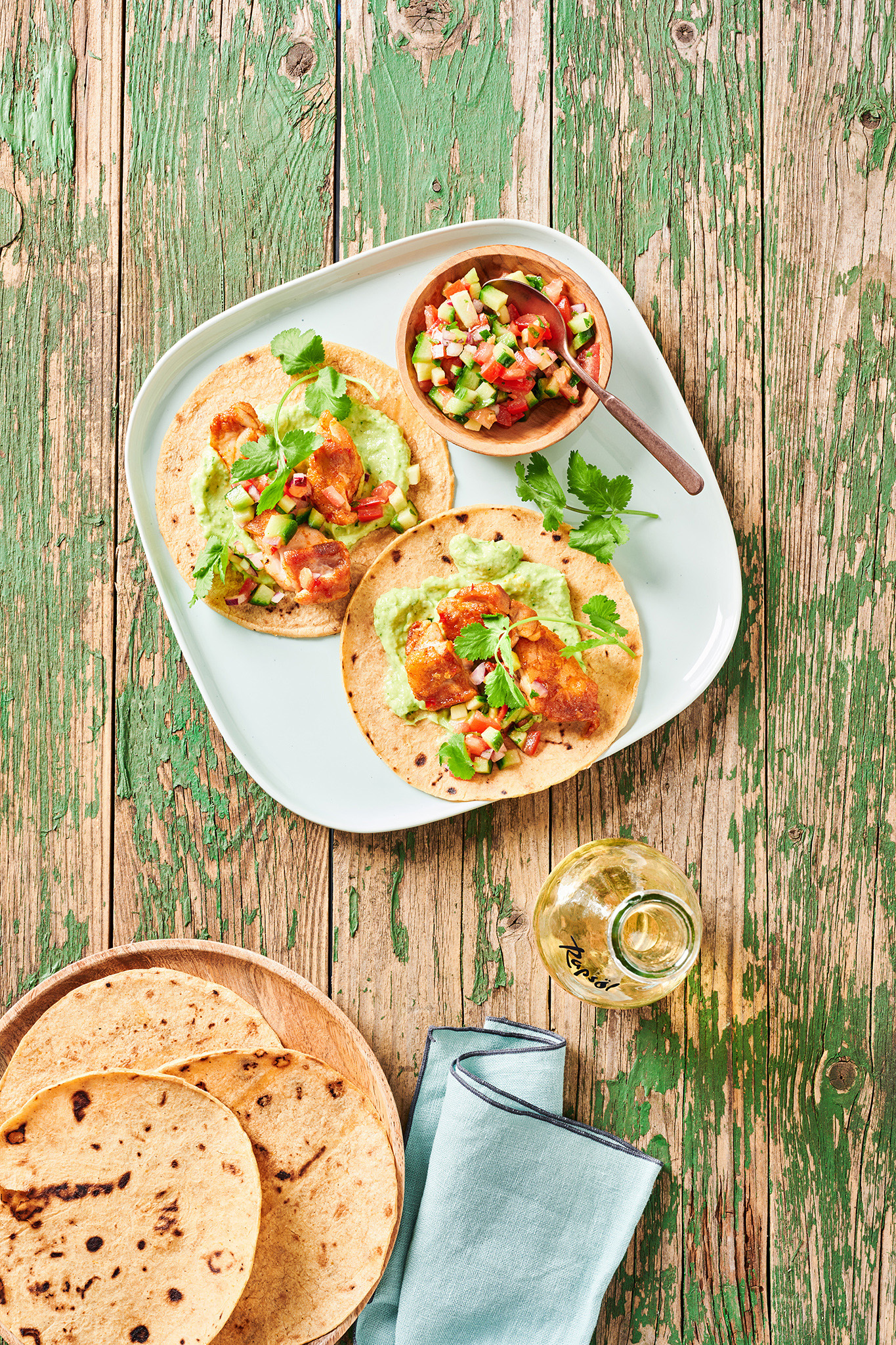 Rezeptidee Juli 2024: Chicken-Tacos mit Rapsöl-Avocadocreme und frischer Salsa