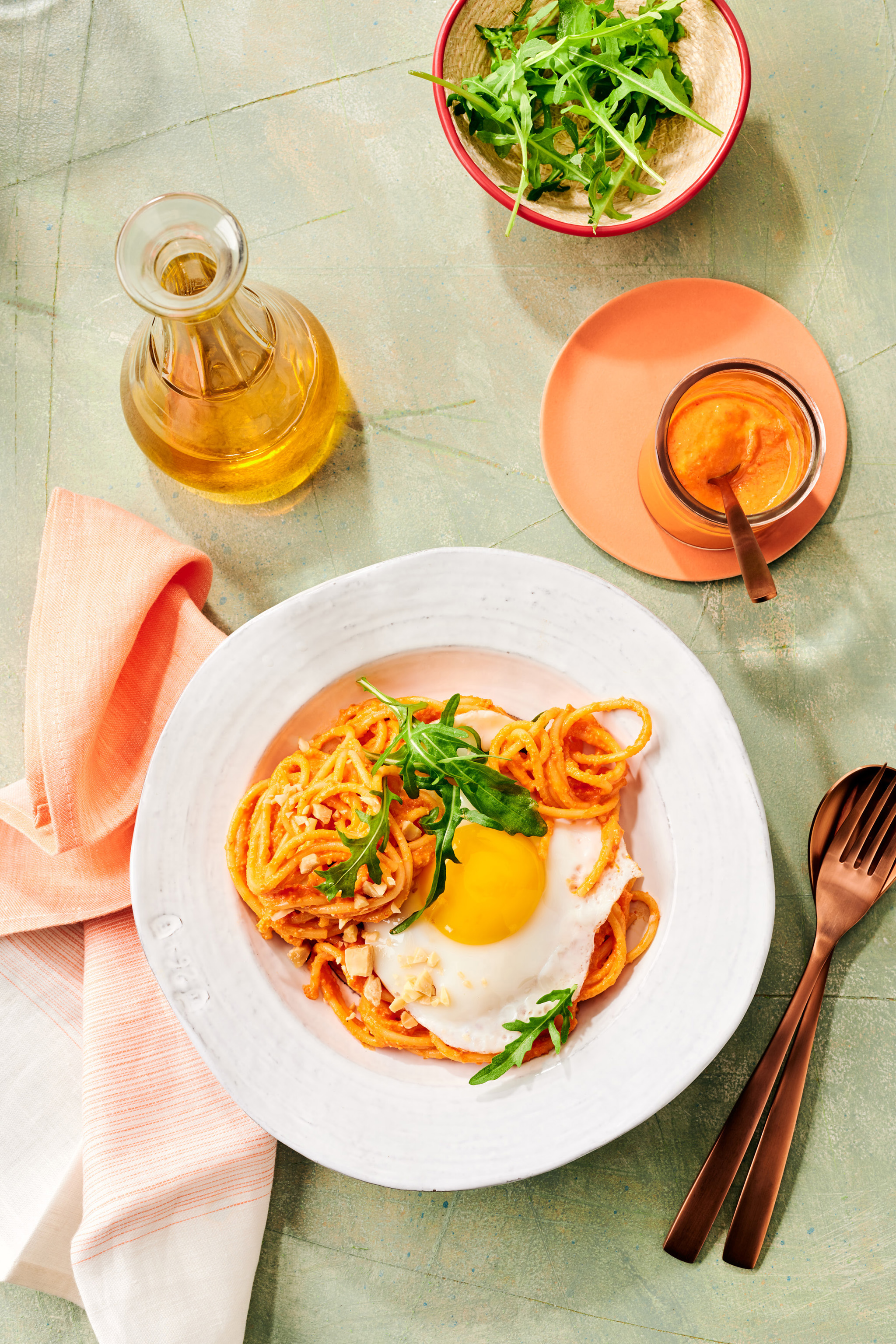Rezeptidee Oktober 2024: Spaghetti mit schnellem Paprika-Pesto