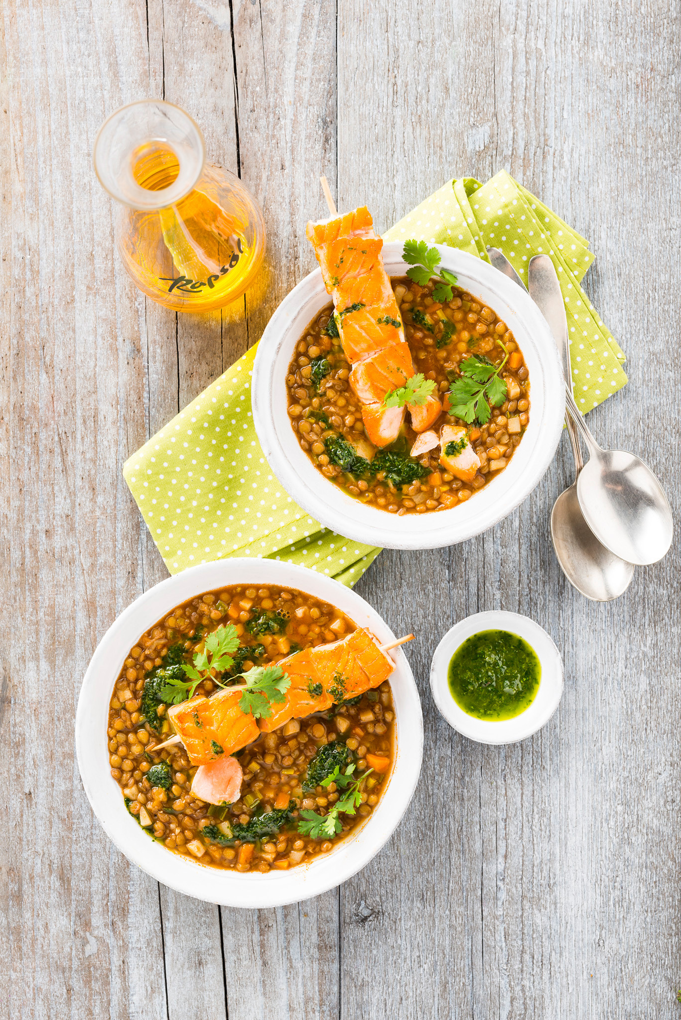 Rezeptidee Januar 2017: Linsensuppe mit Lachsspießen