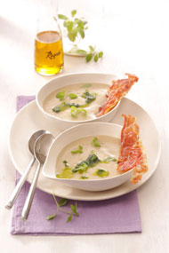 Rezeptidee Januar 2014: Maronencremesuppe mit Petersilienöl und Schinkenchips