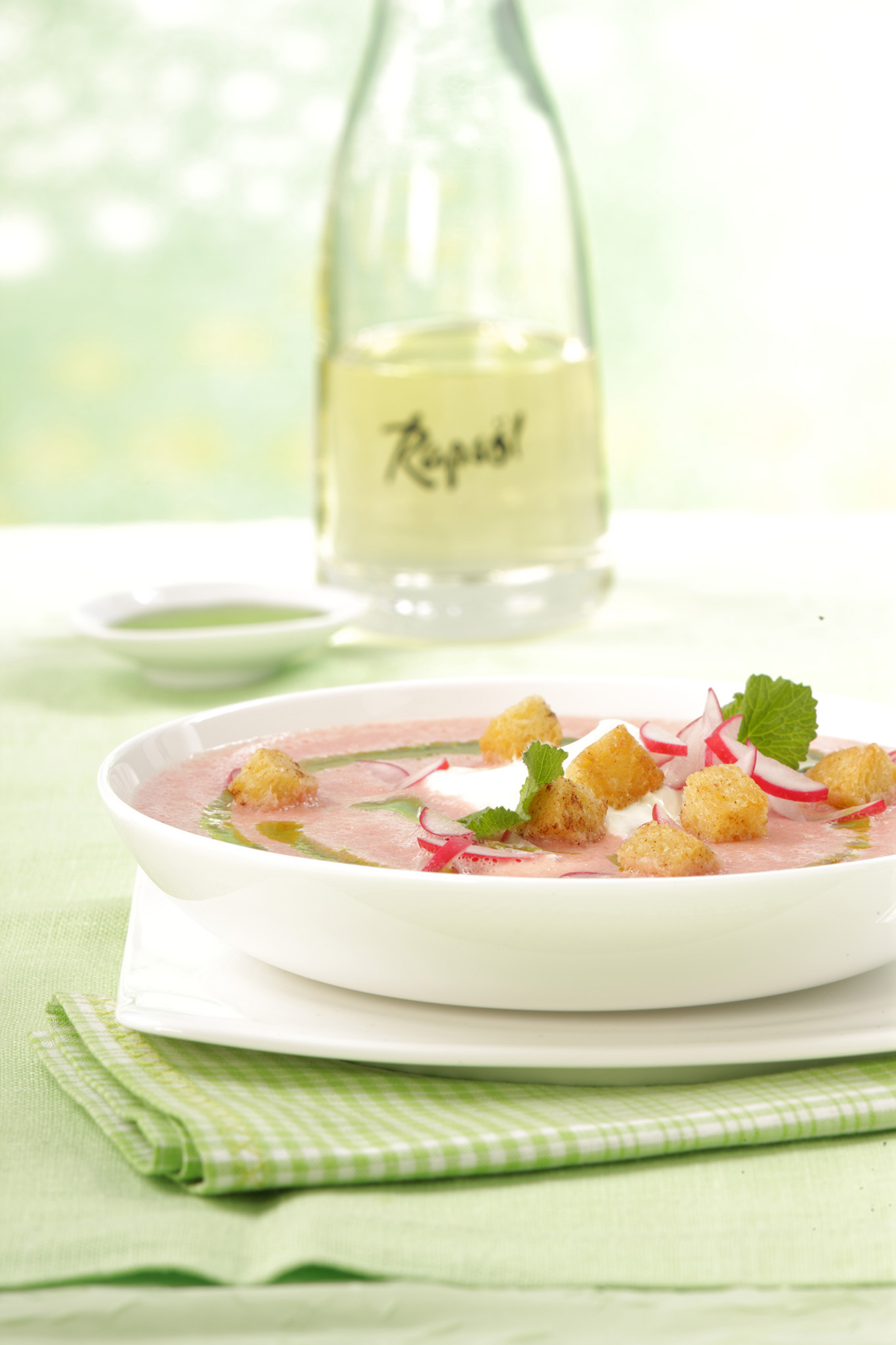 Rezeptidee März 2014: Radieschenschaumsuppe mit Petersilienöl und Zimt-Croûtons