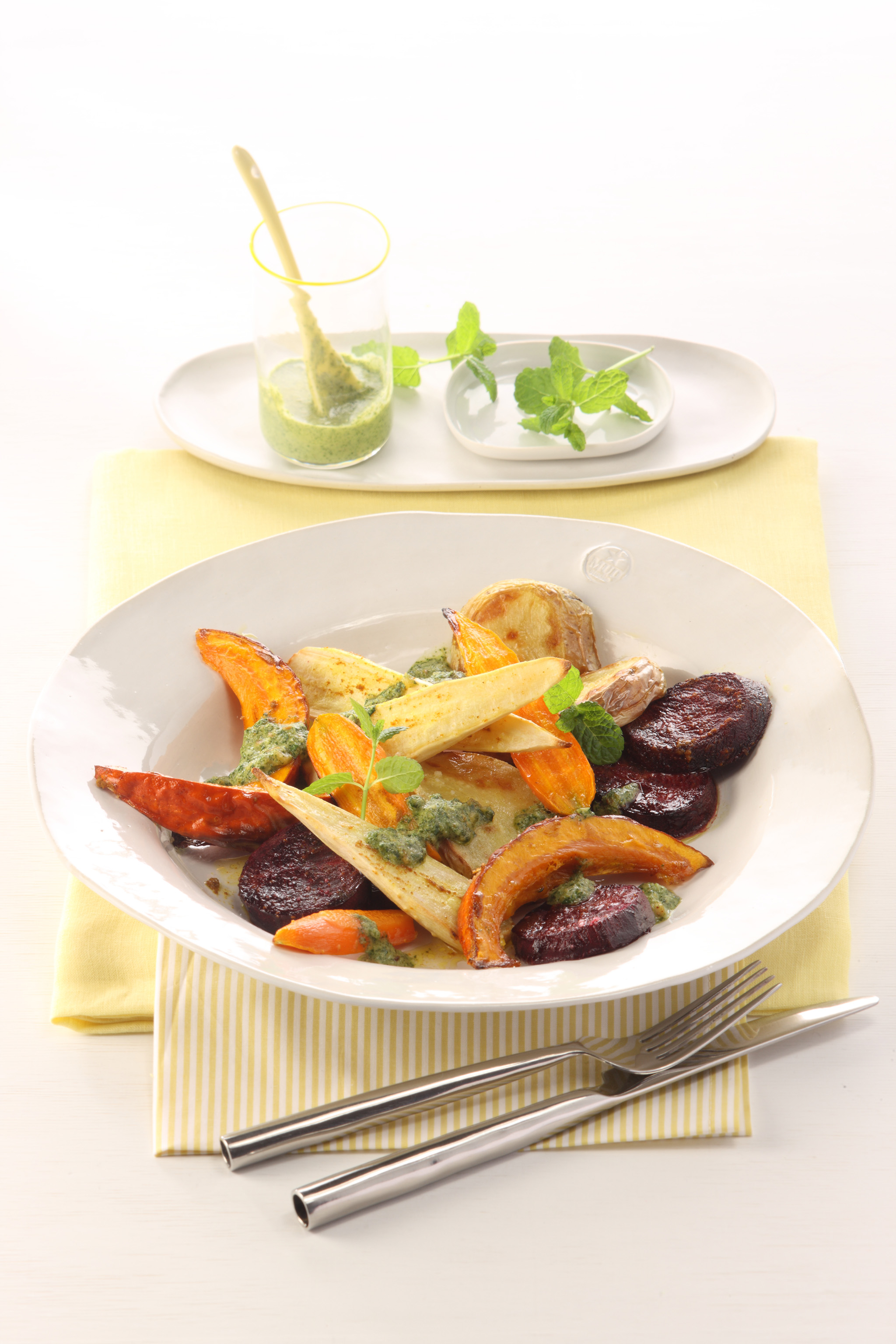 Rezeptidee Oktober 2014: Wurzelgemüse aus dem Ofen mit Minzpesto