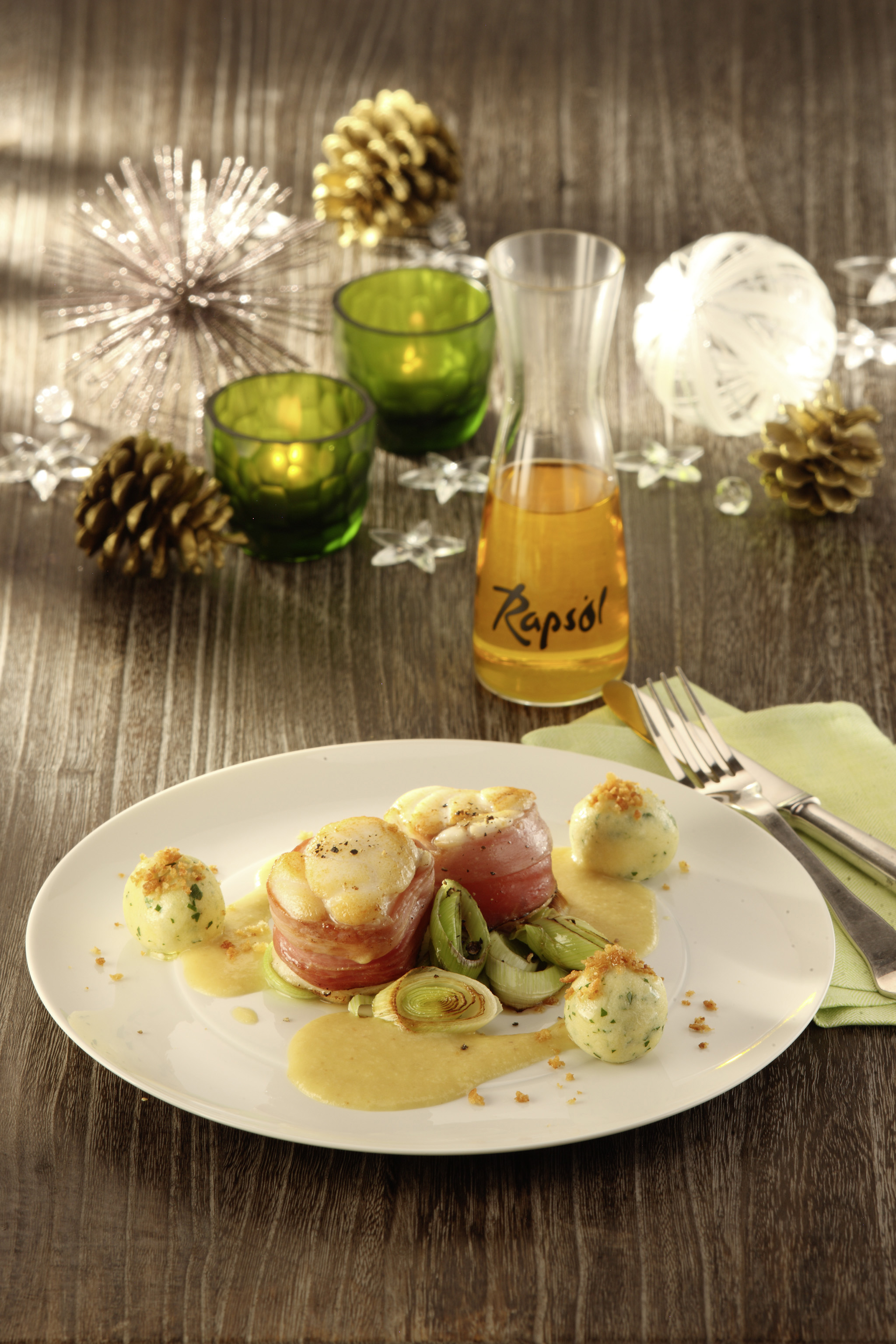 Rezeptidee Dezember: Seeteufel mit Bratapfelsauce, Lauchgemüse und Grießbällchen