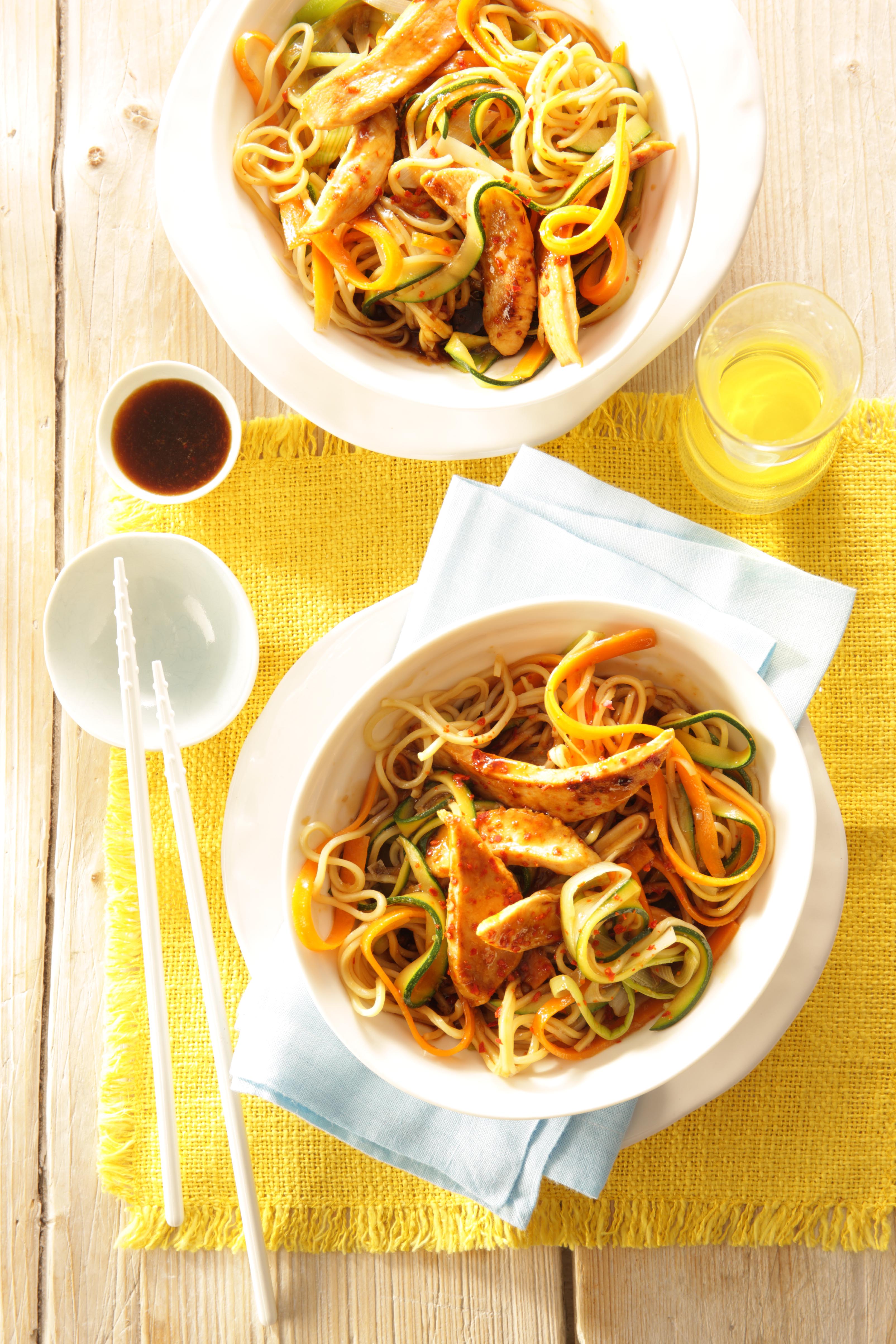 Rezeptidee März: Gebratene Mie-Nudeln mit Poulardenbrust und Gemüse