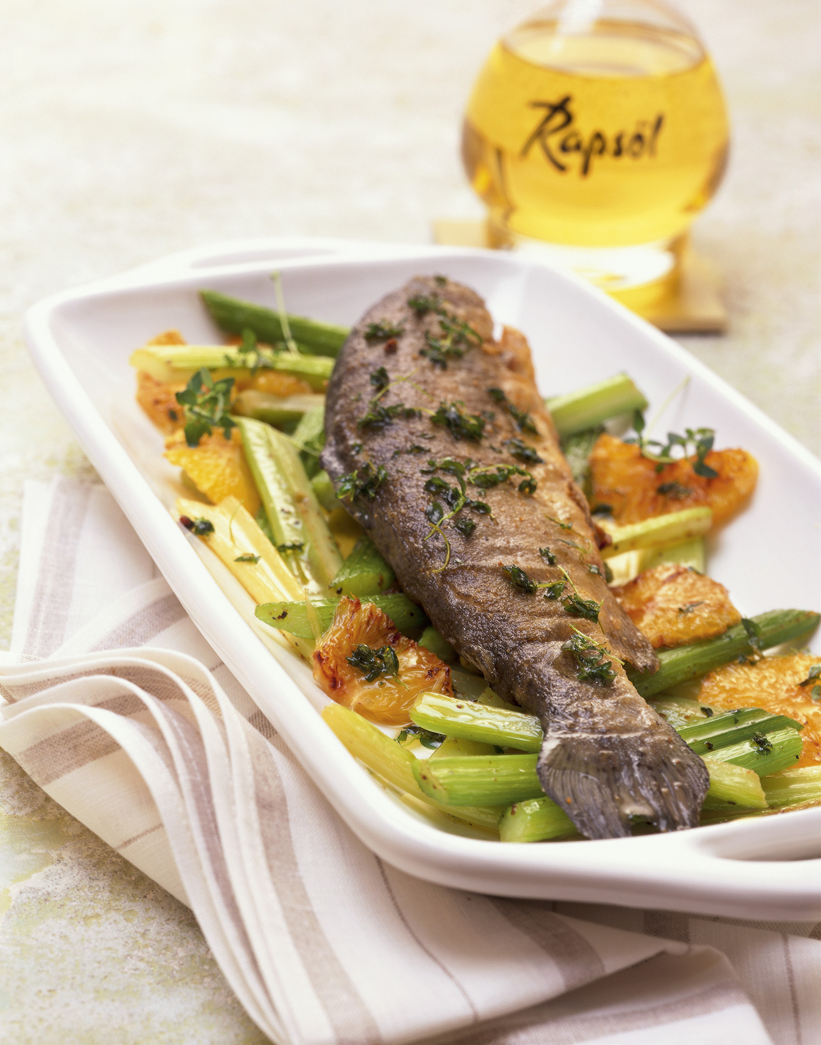 Rezeptidee Juli 2016: Thymian-Forelle auf Orangen-Sellerie-Gemüse
